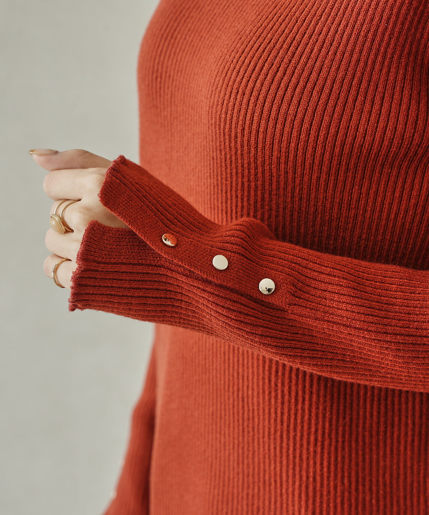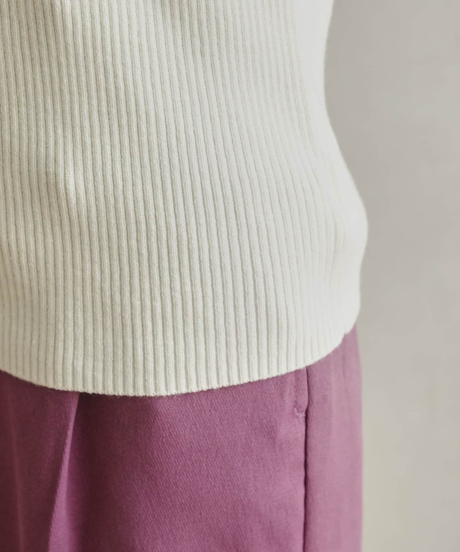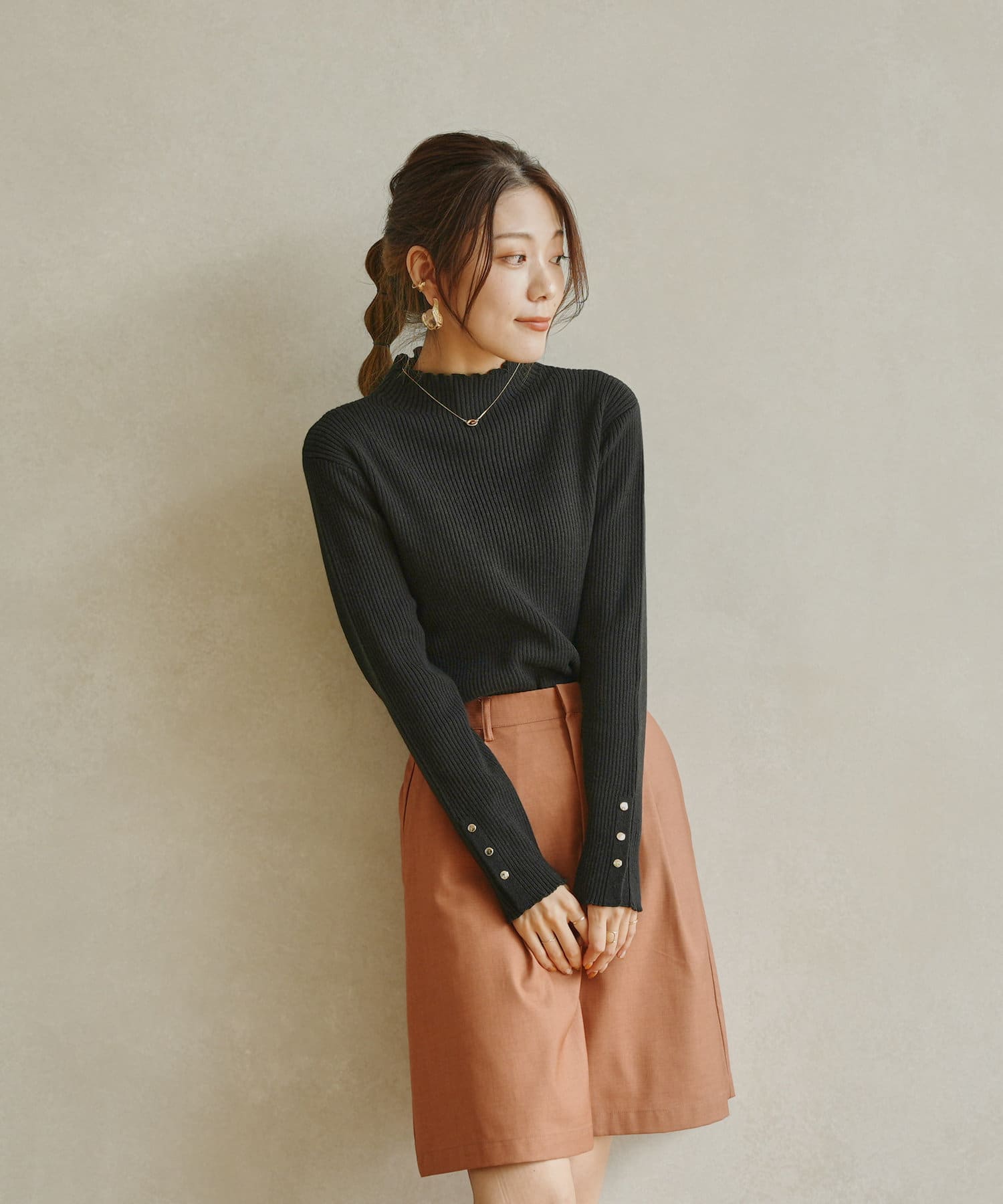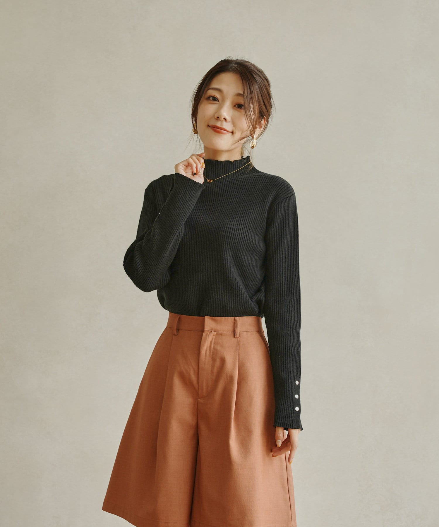 ・メロ―ネックの首元。詰まりすぎないのでタートルネックが苦手な方も使いやすいネックデザイン