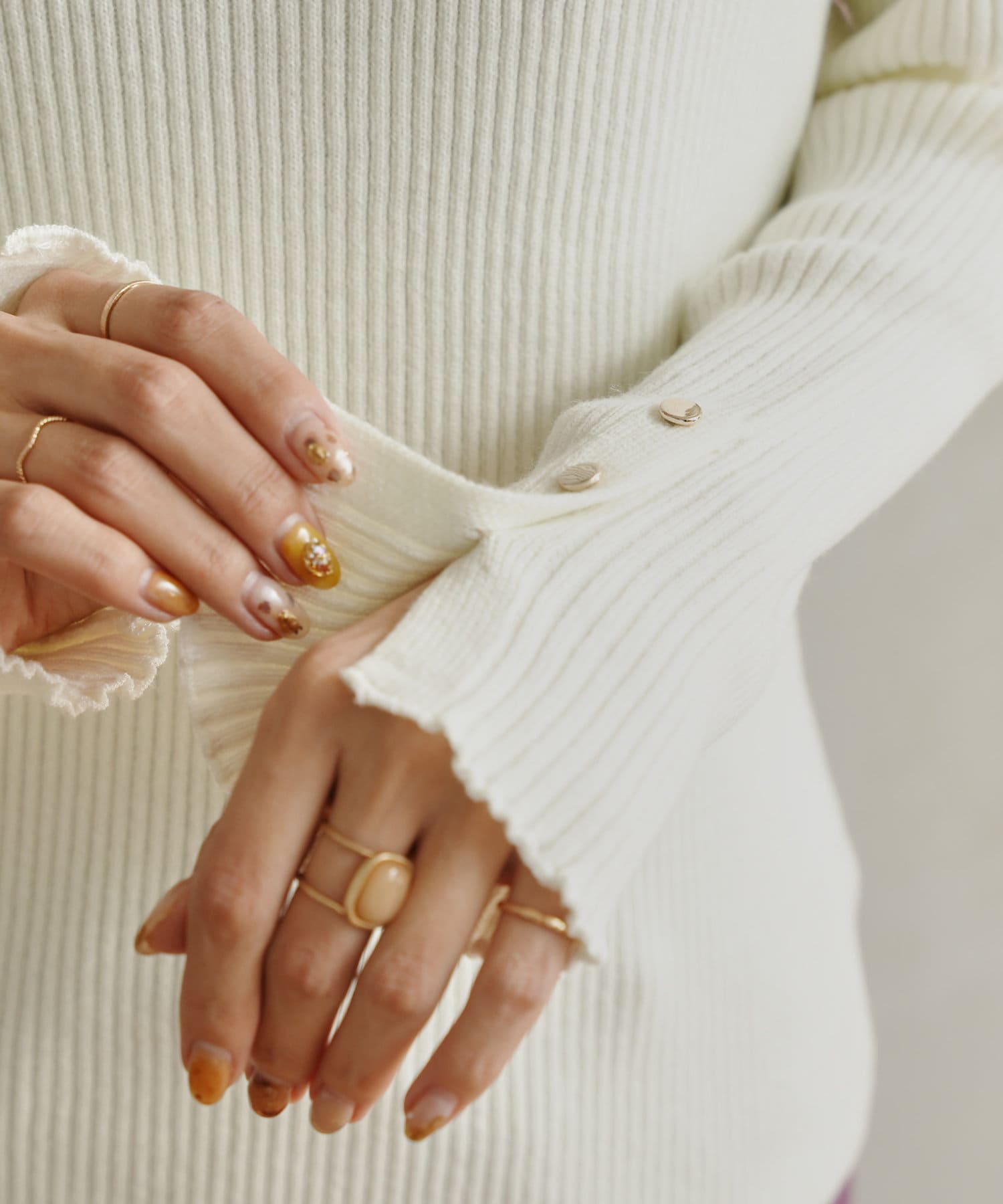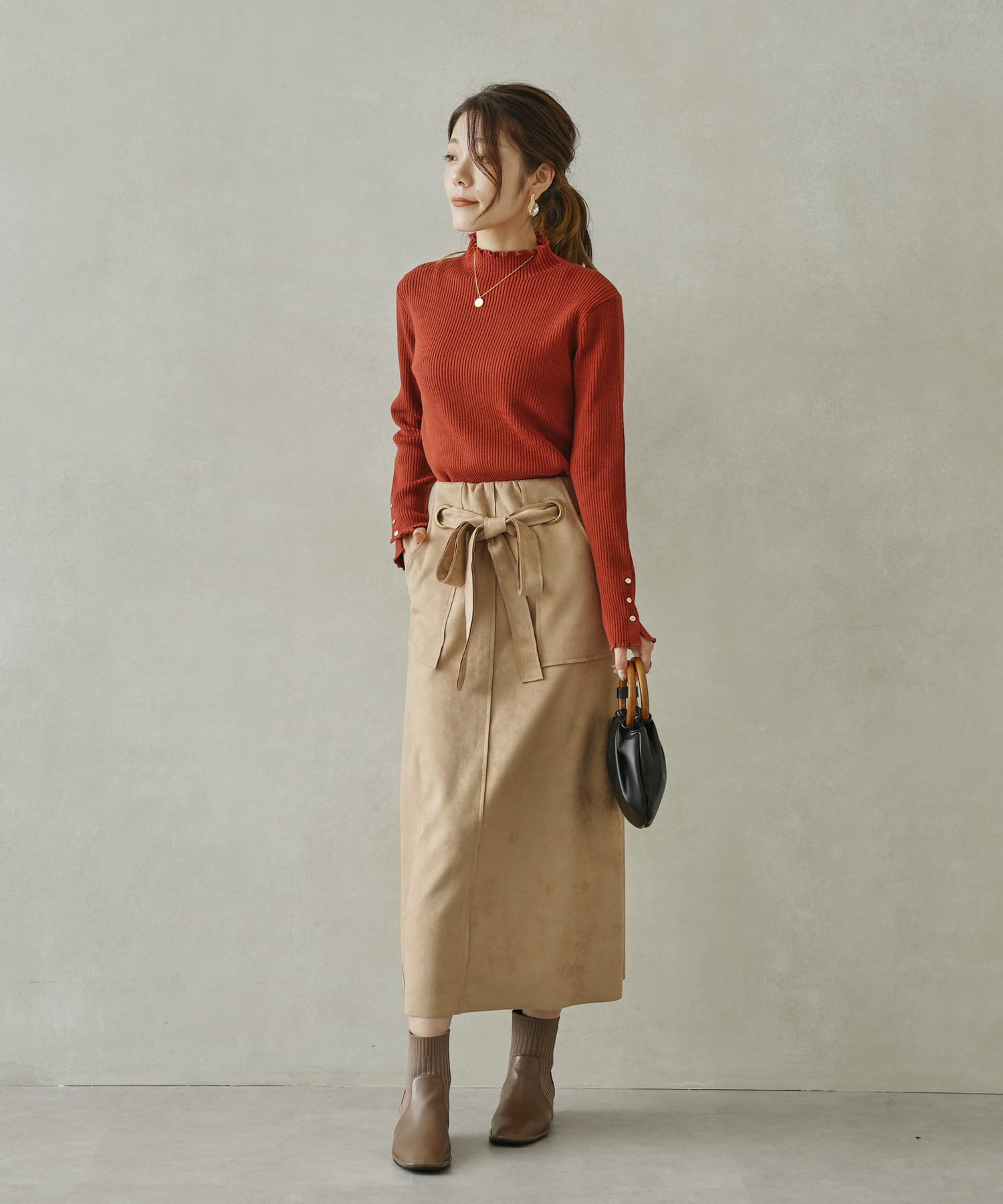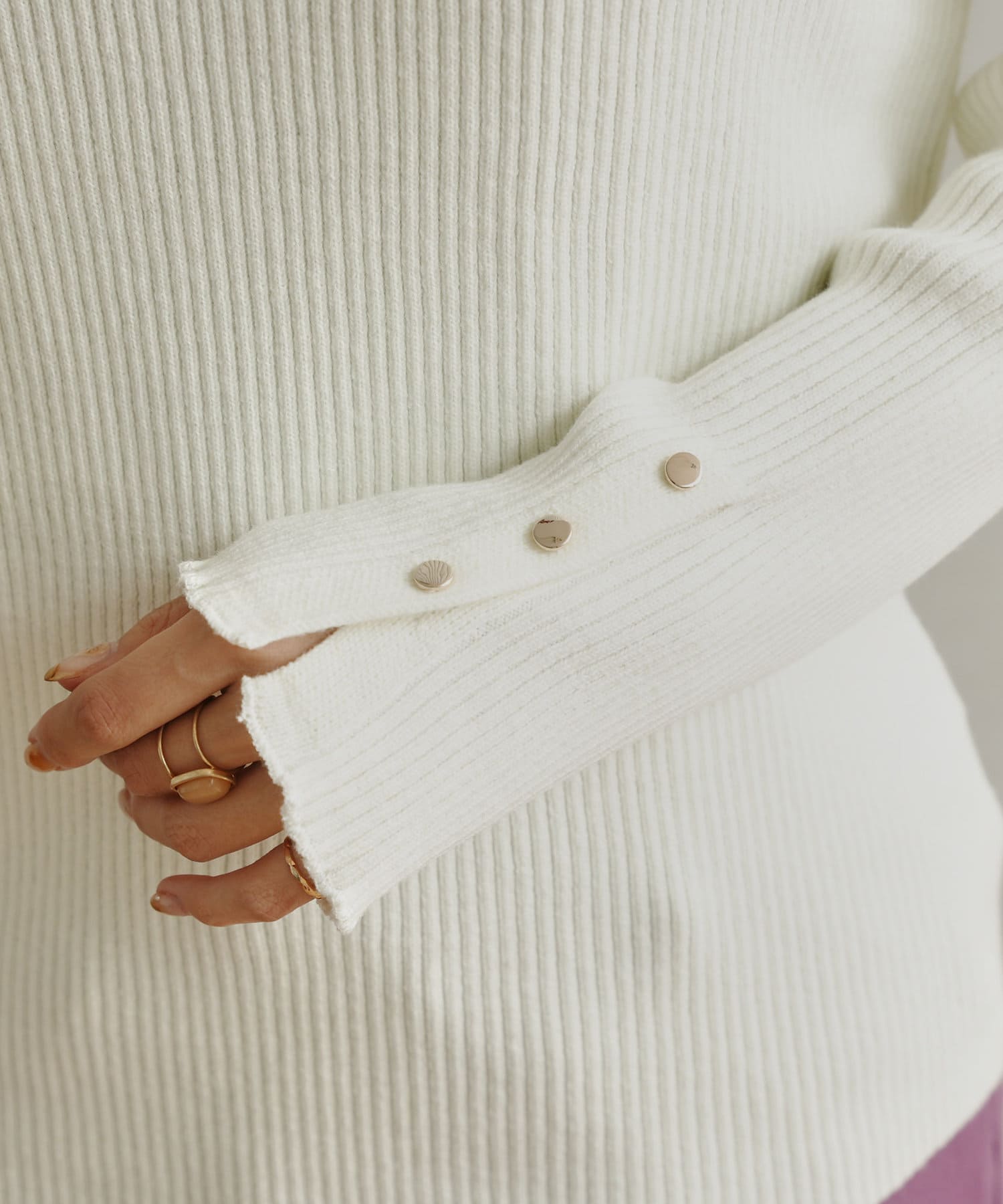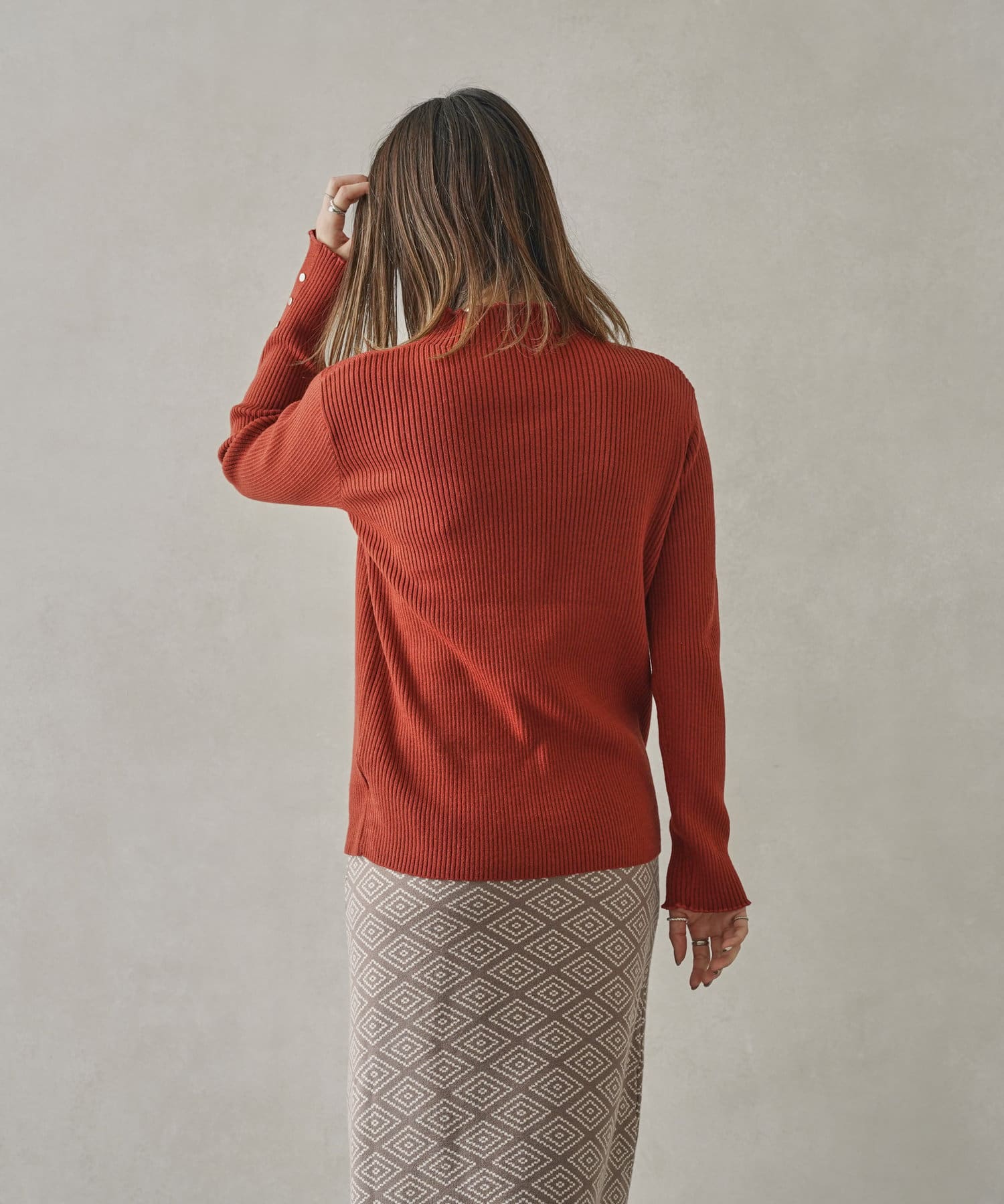・メロ―ネックの首元。詰まりすぎないのでタートルネックが苦手な方も使いやすいネックデザイン
