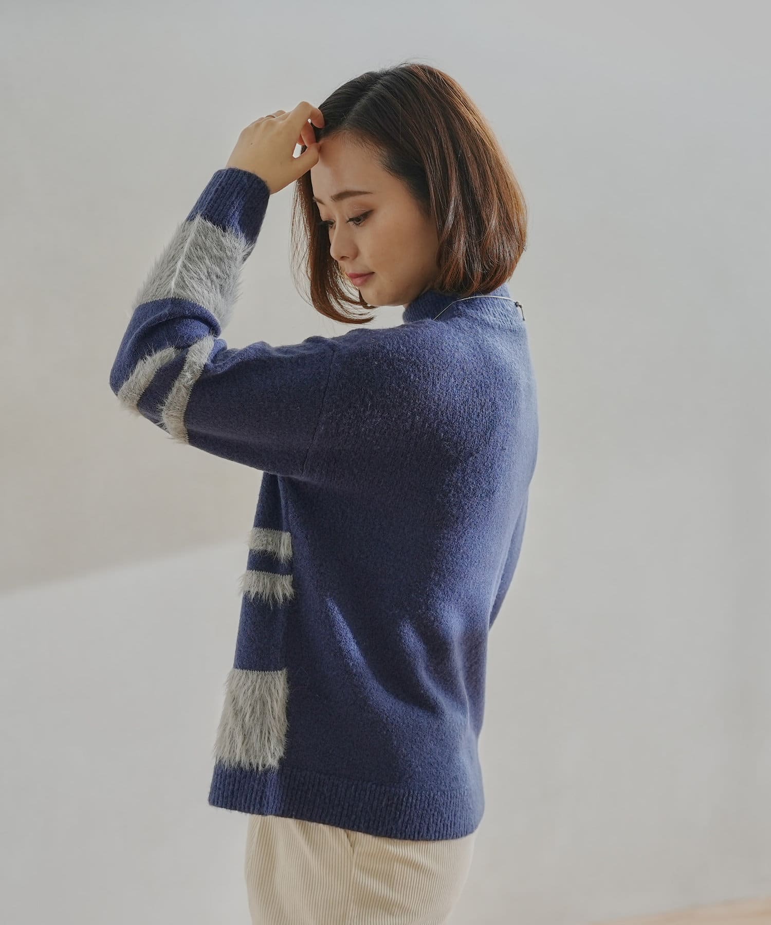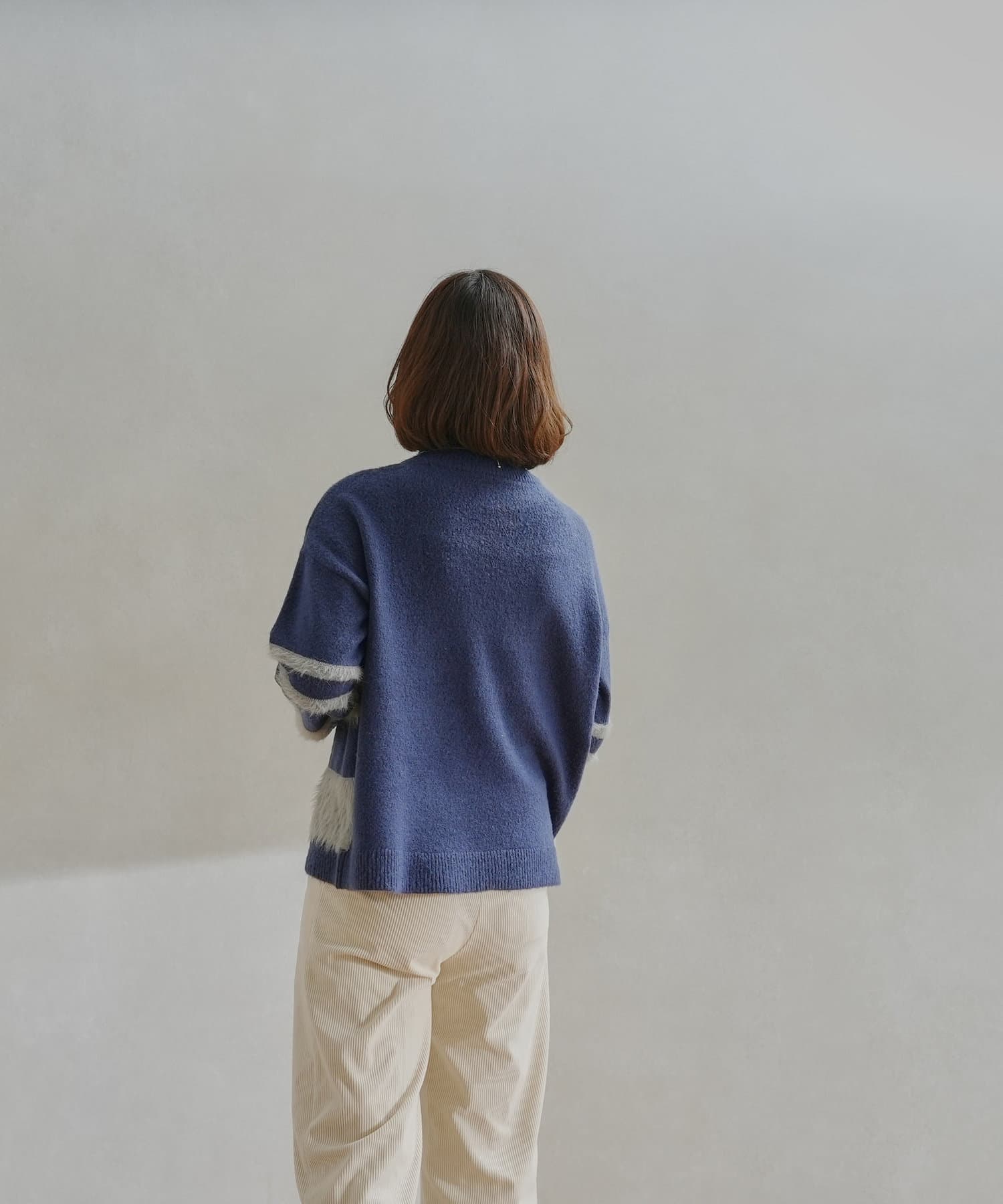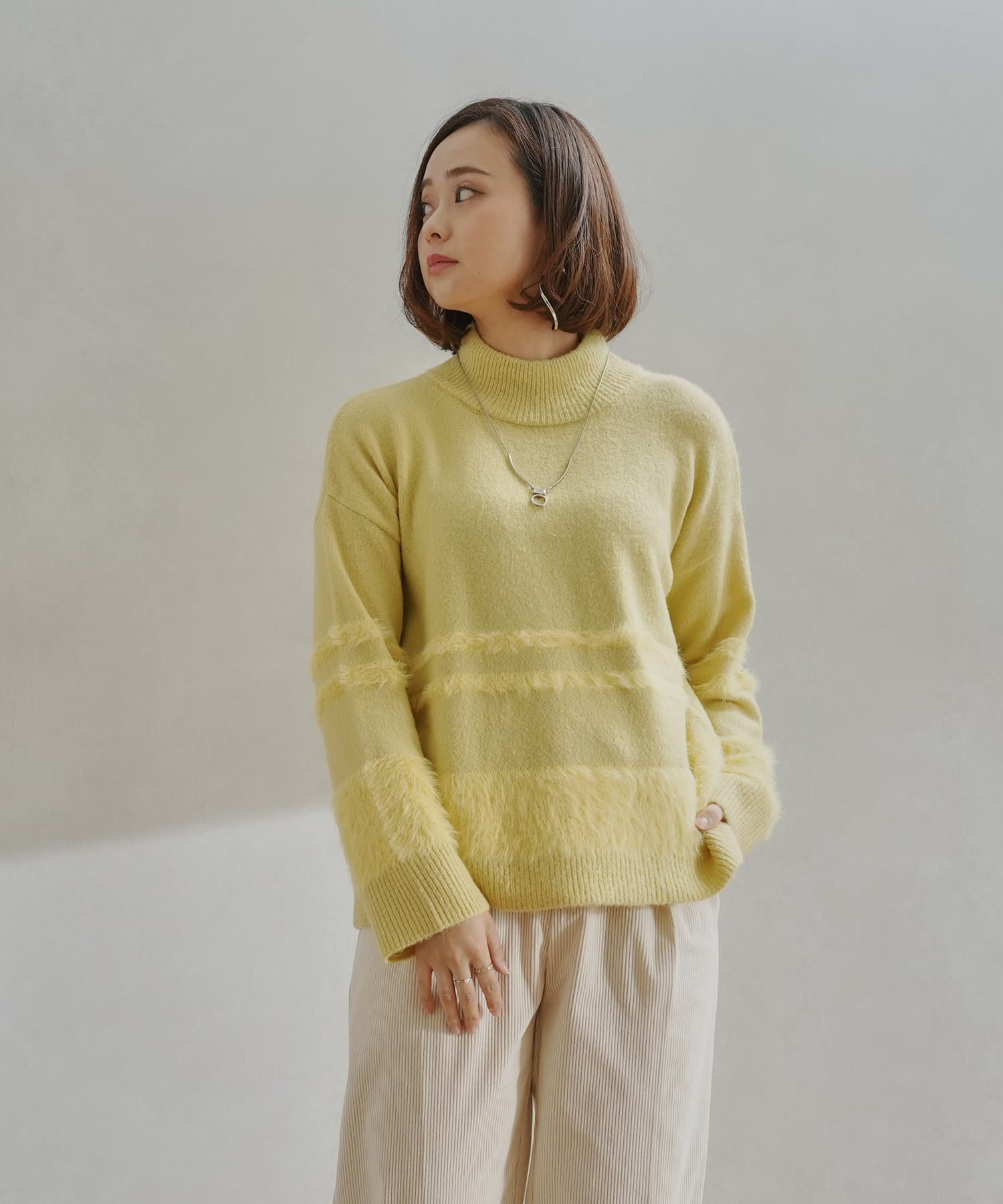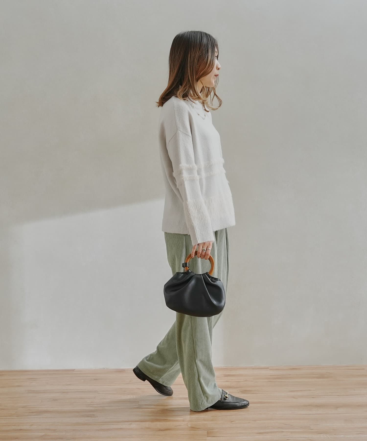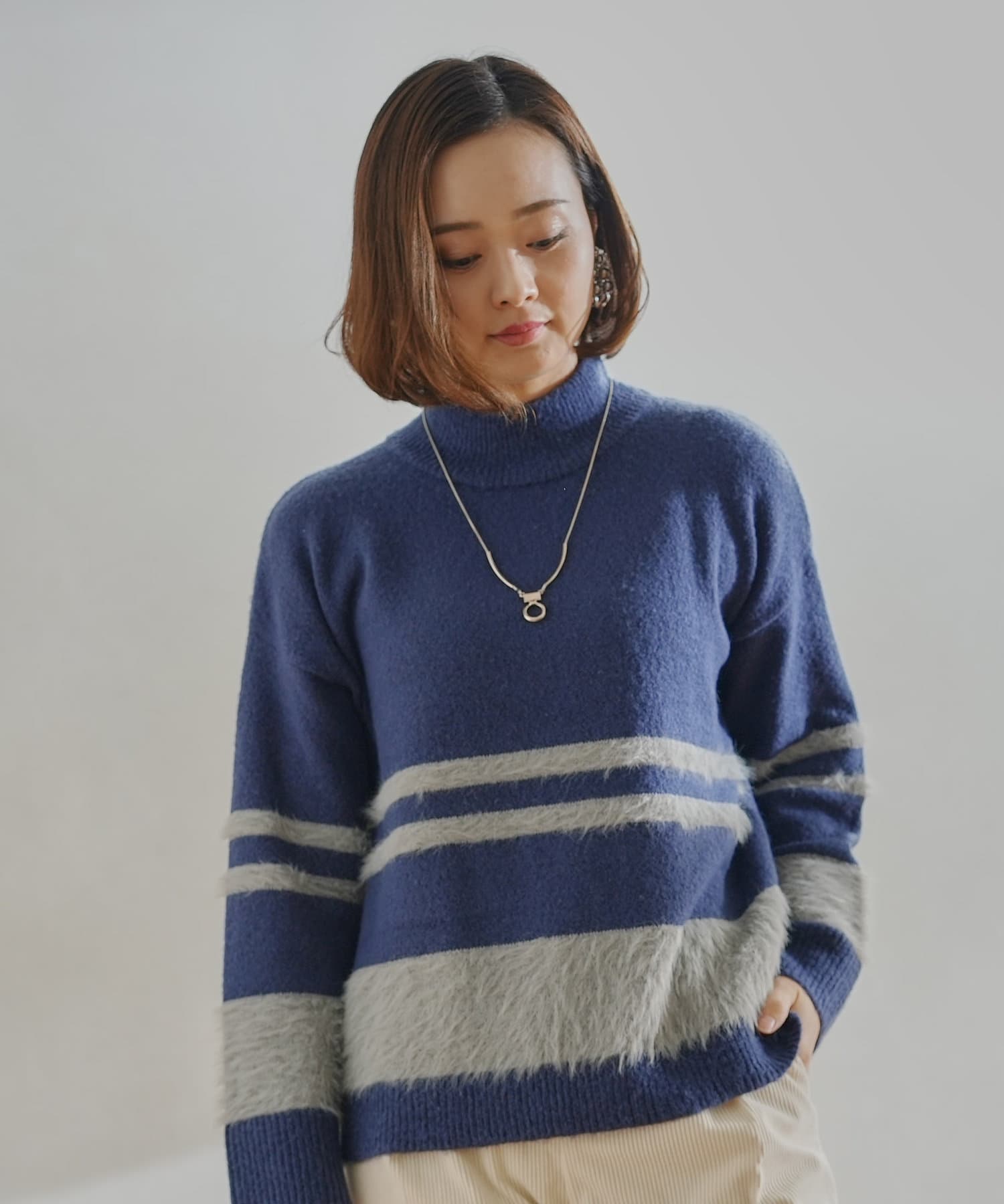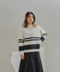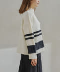 ・部分使いのラインのシャギーニットがボーダー見えしてコーディネートのアクセントを