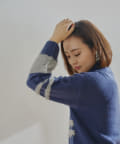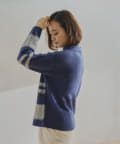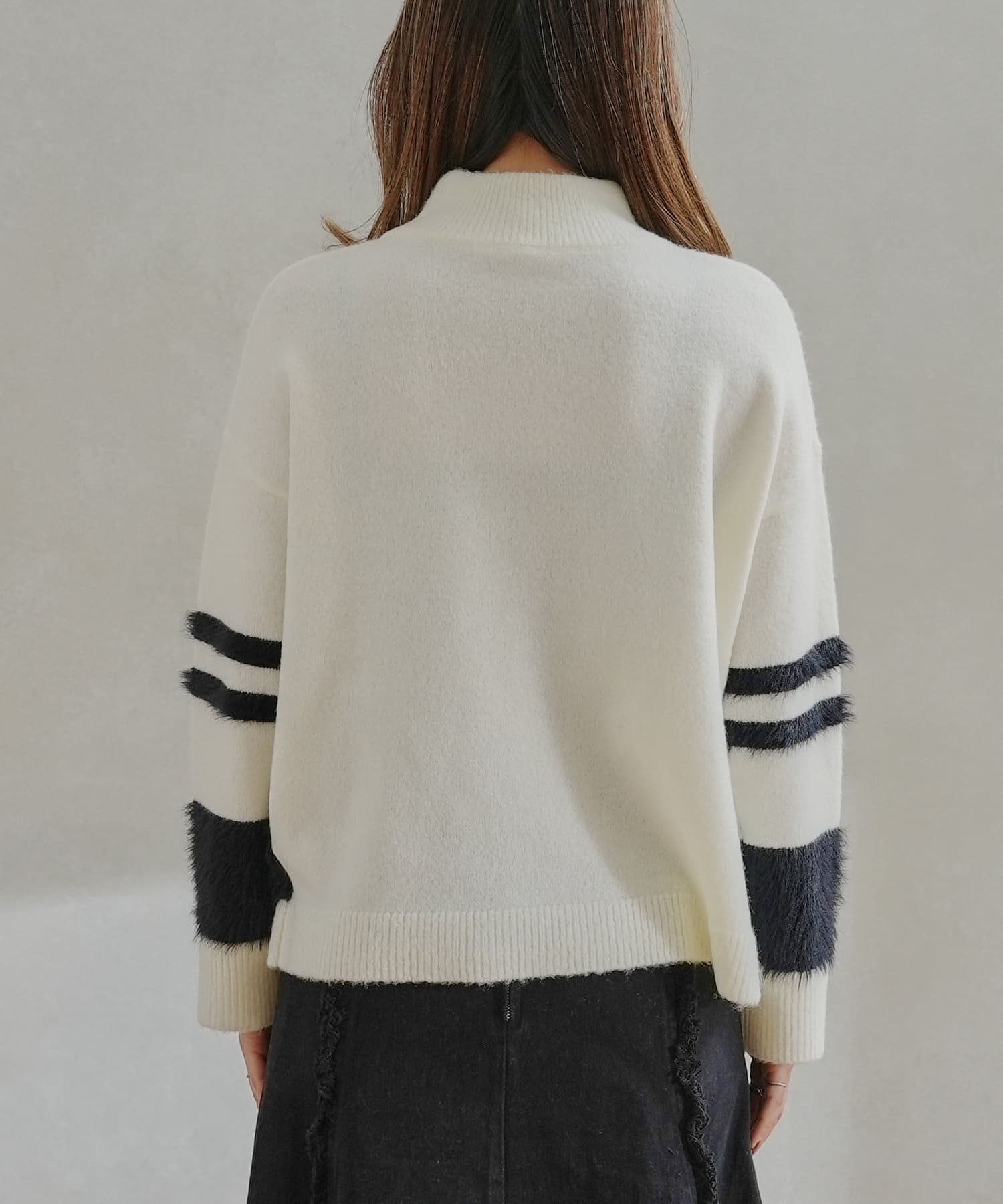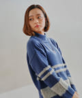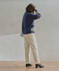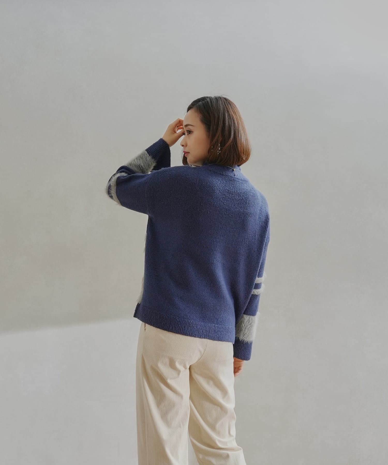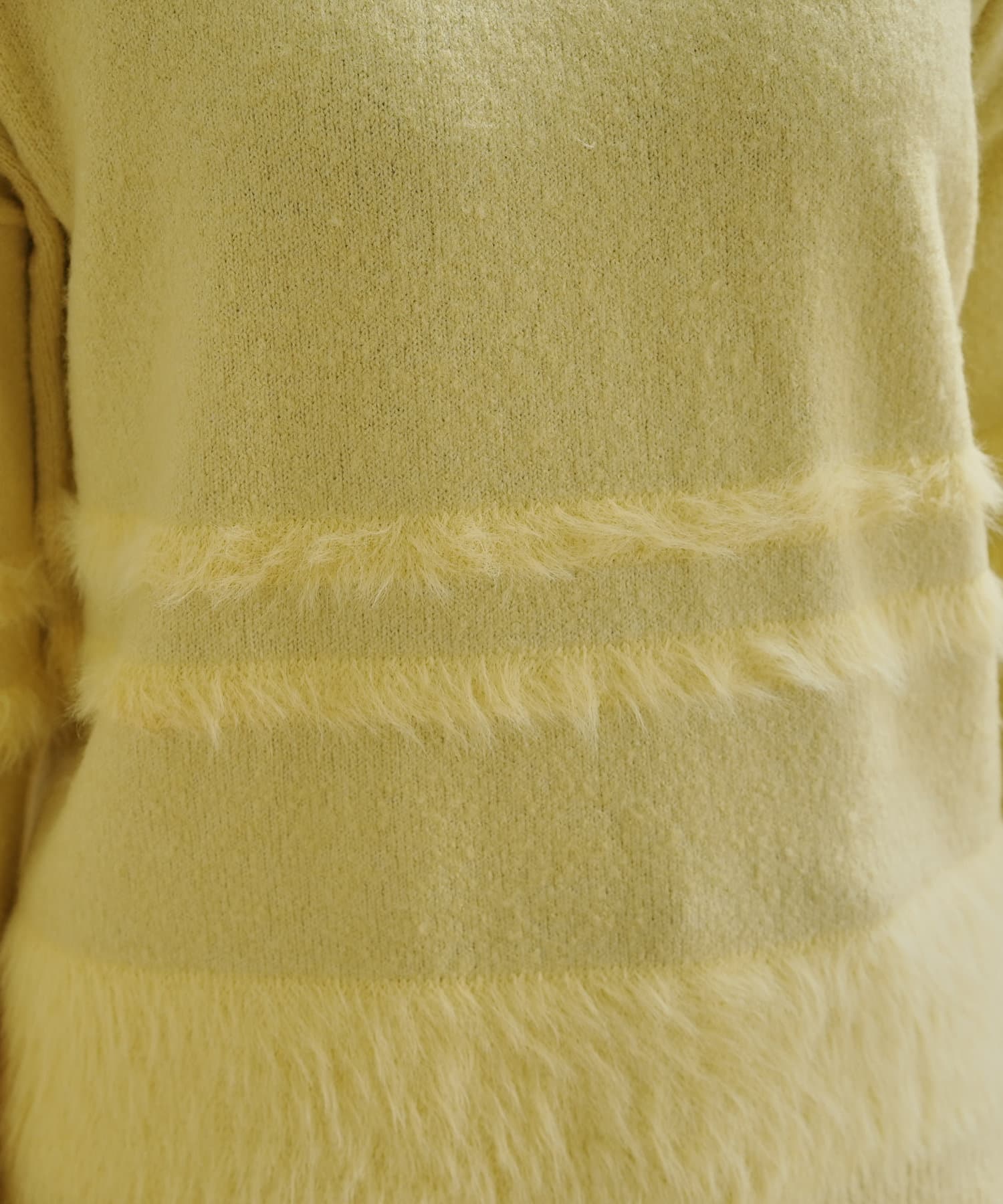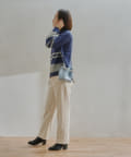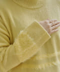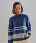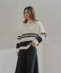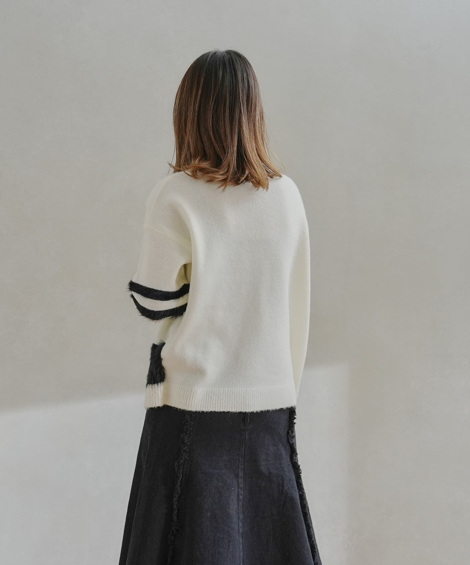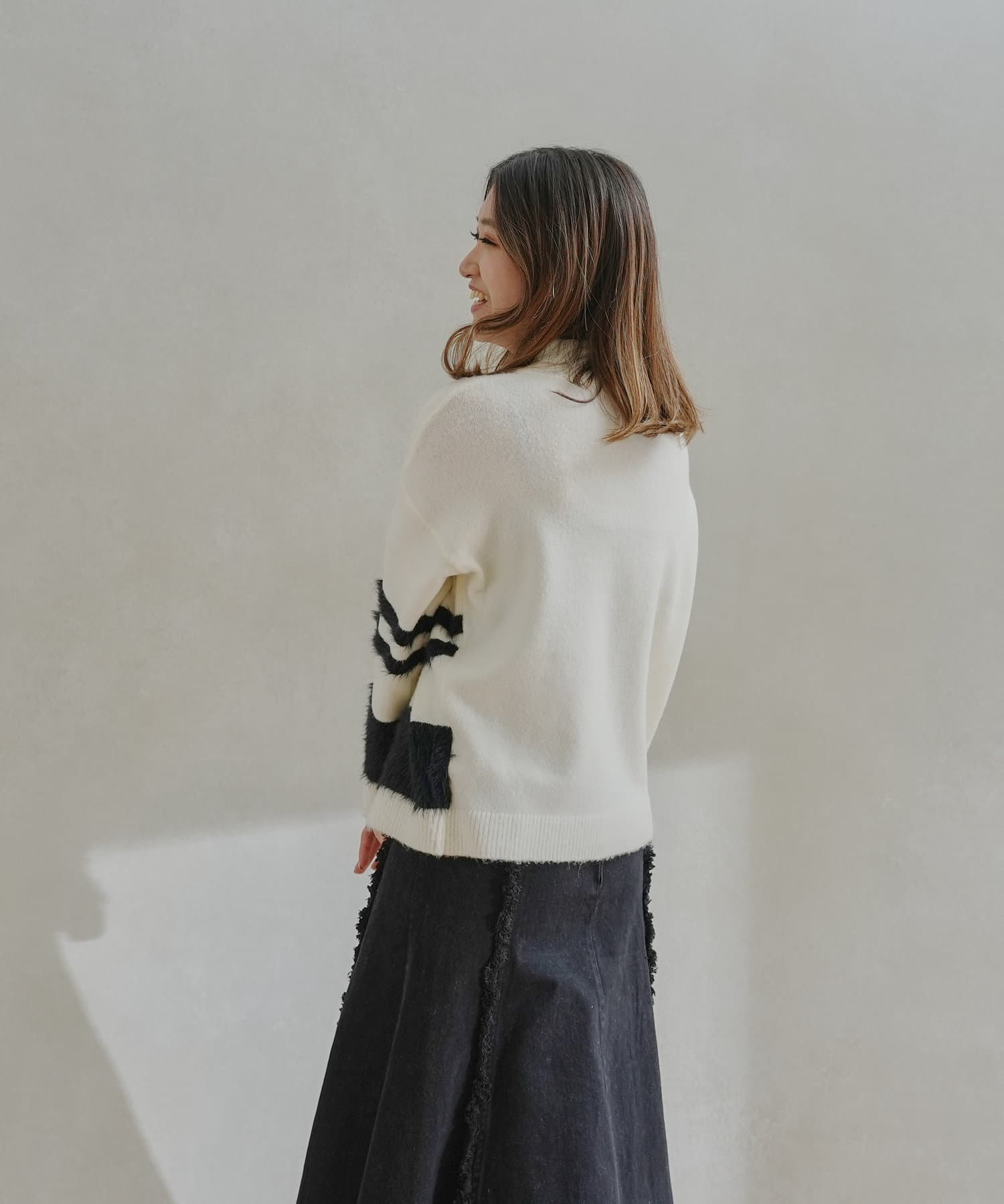 ・部分使いのラインのシャギーニットがボーダー見えしてコーディネートのアクセントを