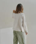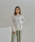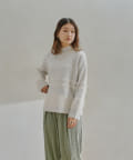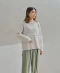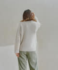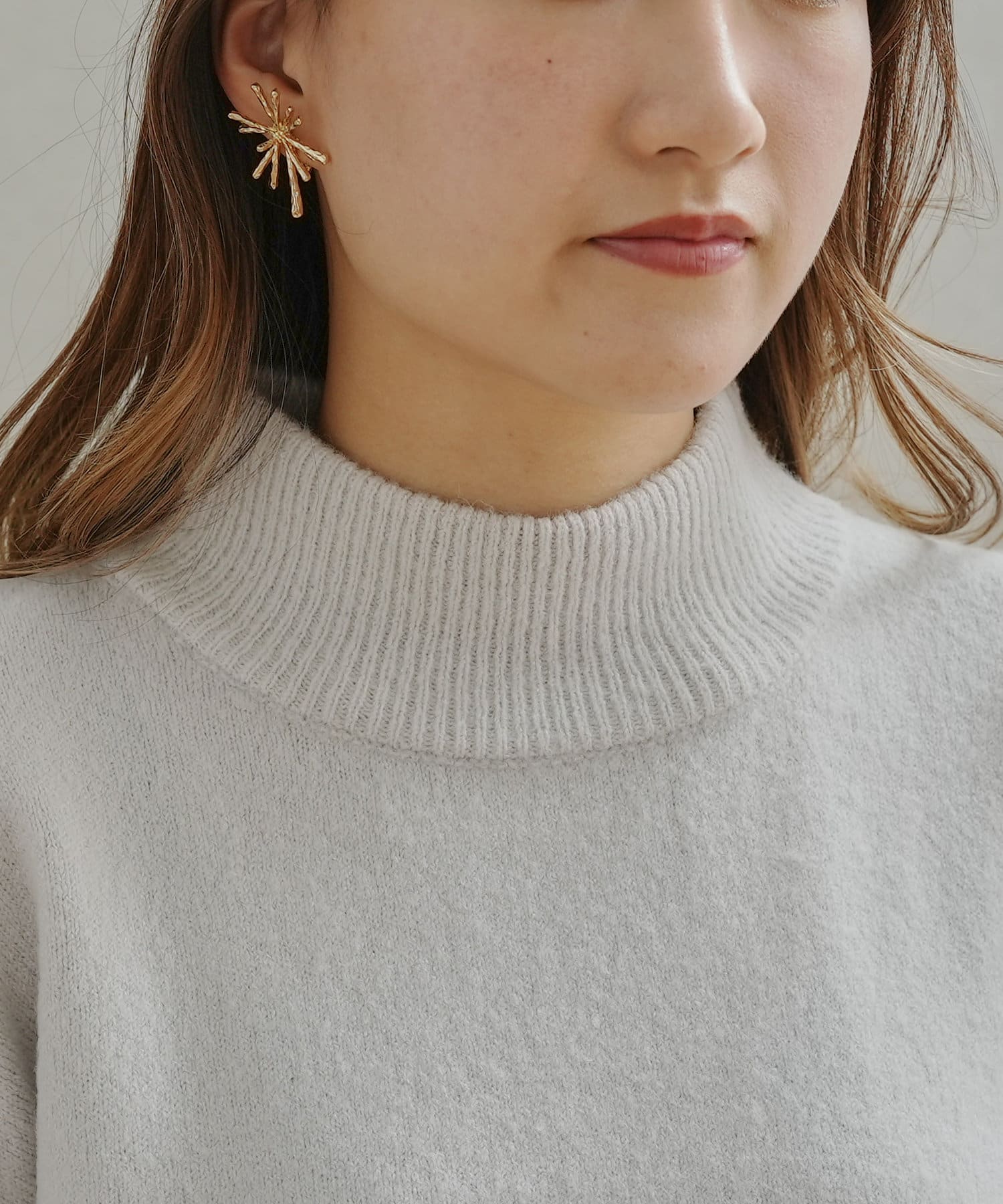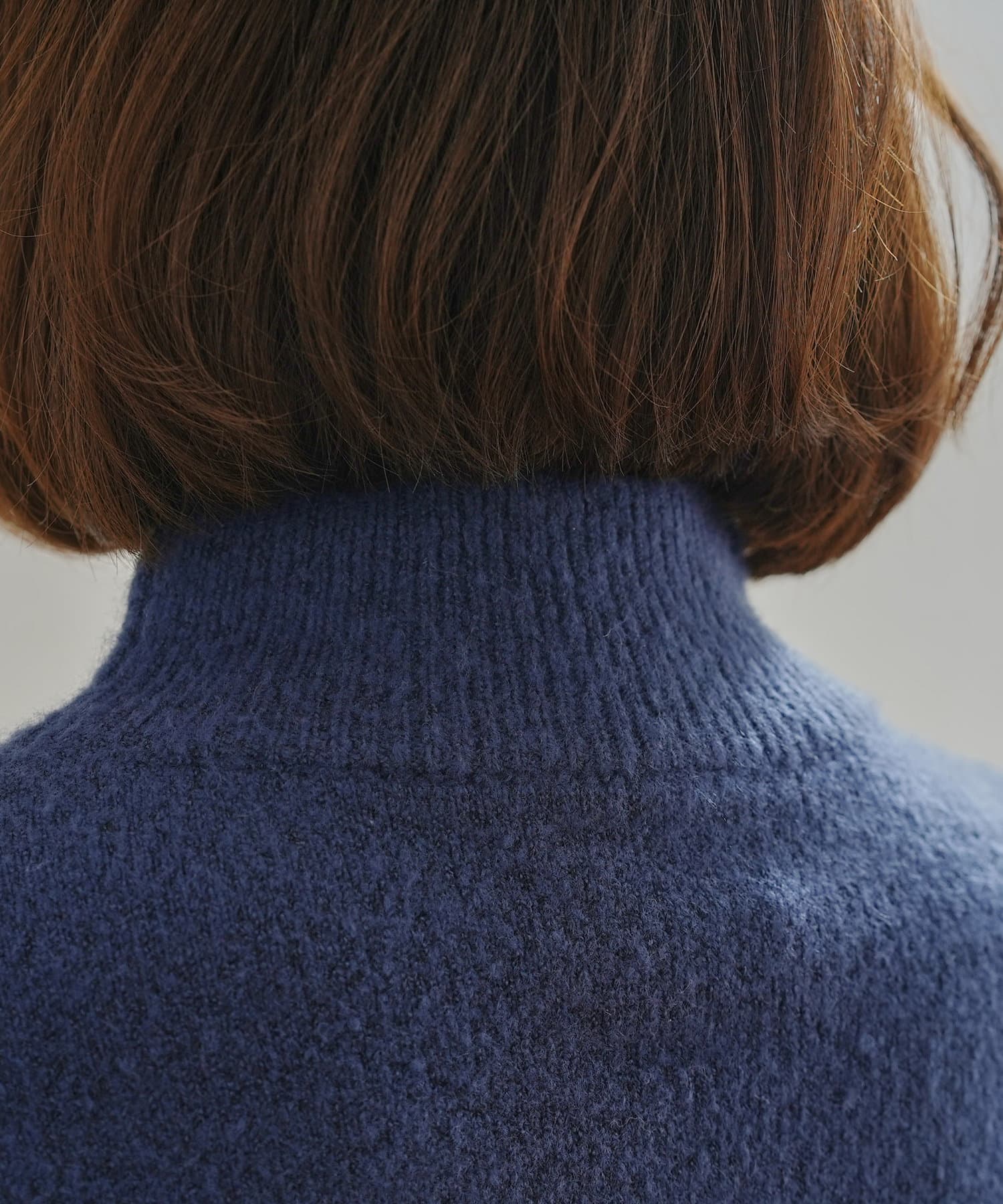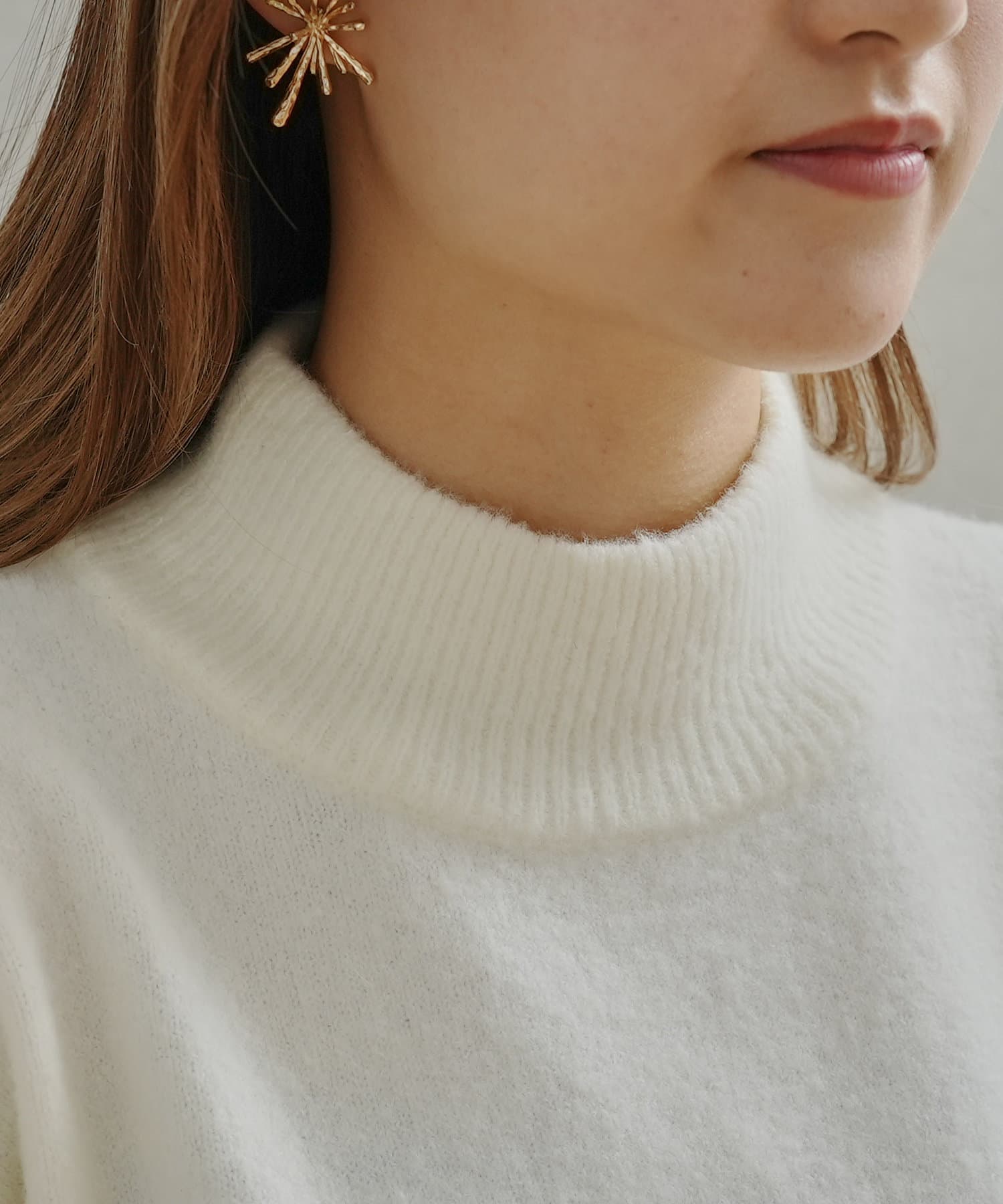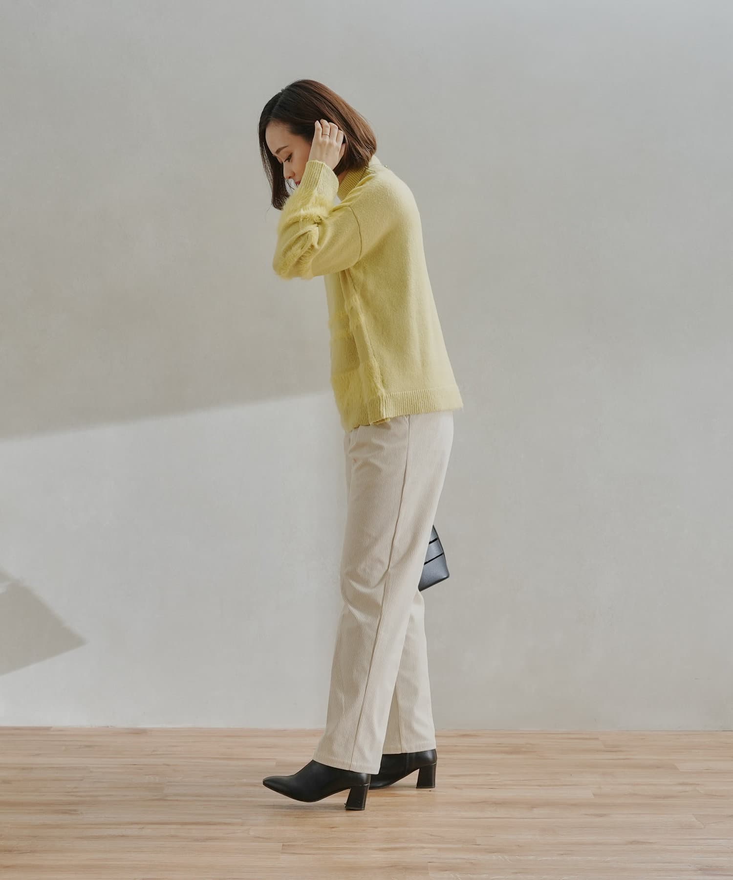 着膨れ感の出ない部分使いのシャギーニットが程よいオトナフェミニンさを演出