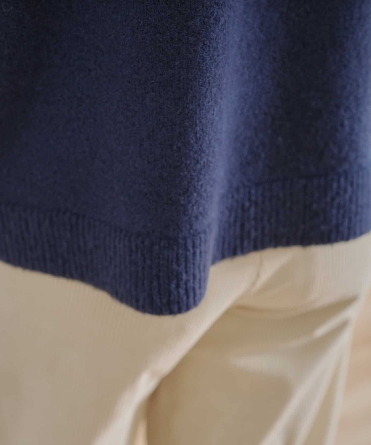 アクリルとポリエステルのニット。チクチクせず、敏感肌の方も安心して着用して頂けます。