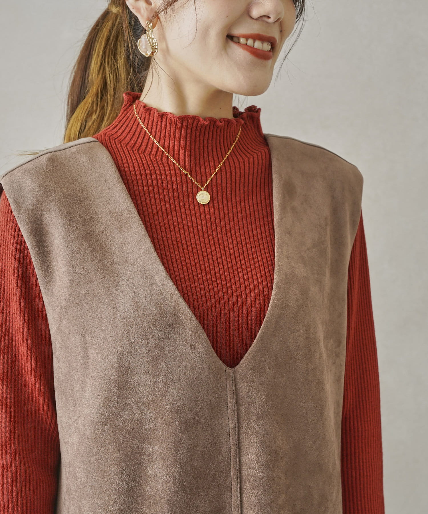 ・首元がVカットになっているので、お顔周りがスッキリ見えきれいな印象に。