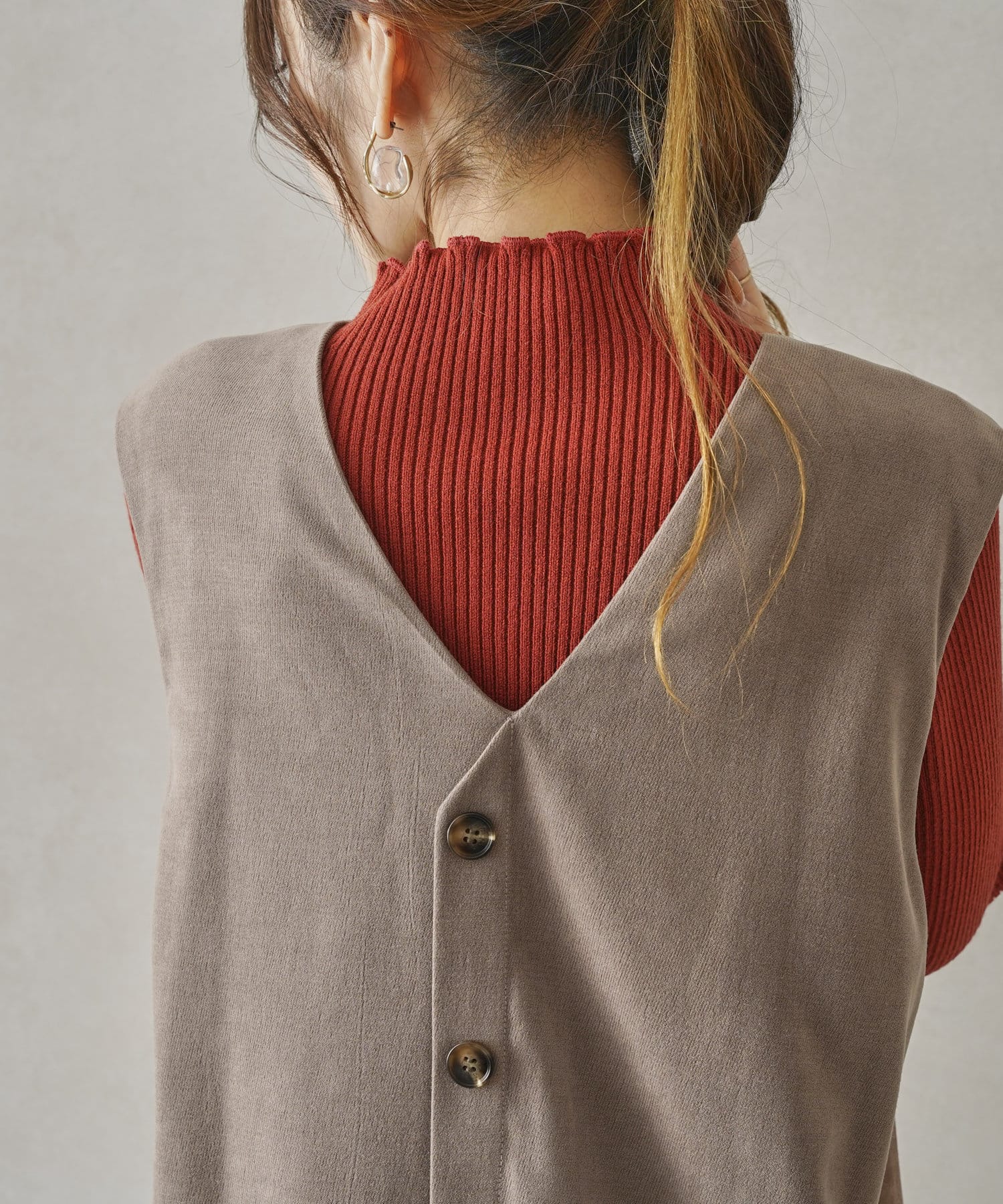 ・前見頃がポケット、後ろがボタンのデザインで表情が変わるオシャレアイテム。