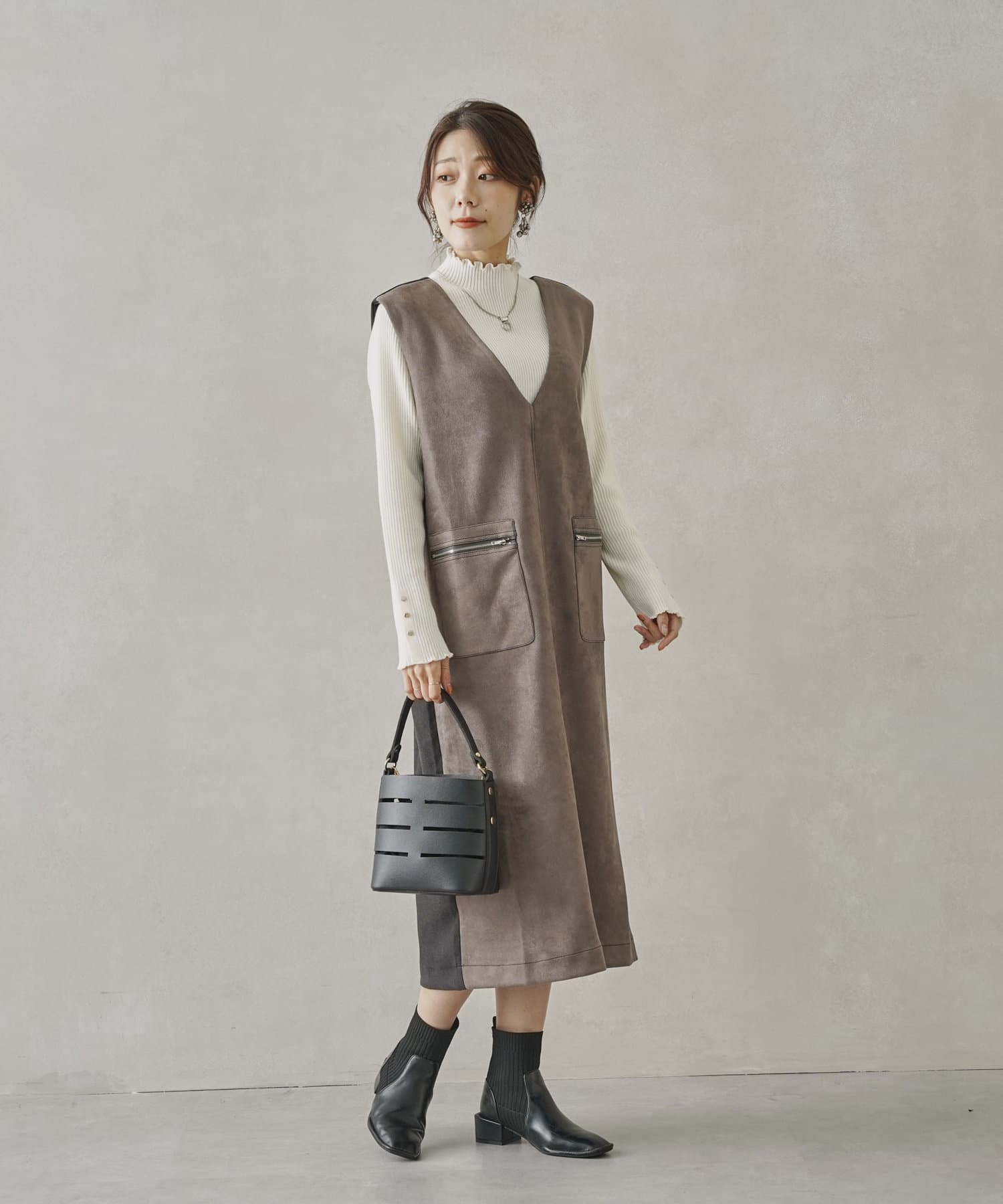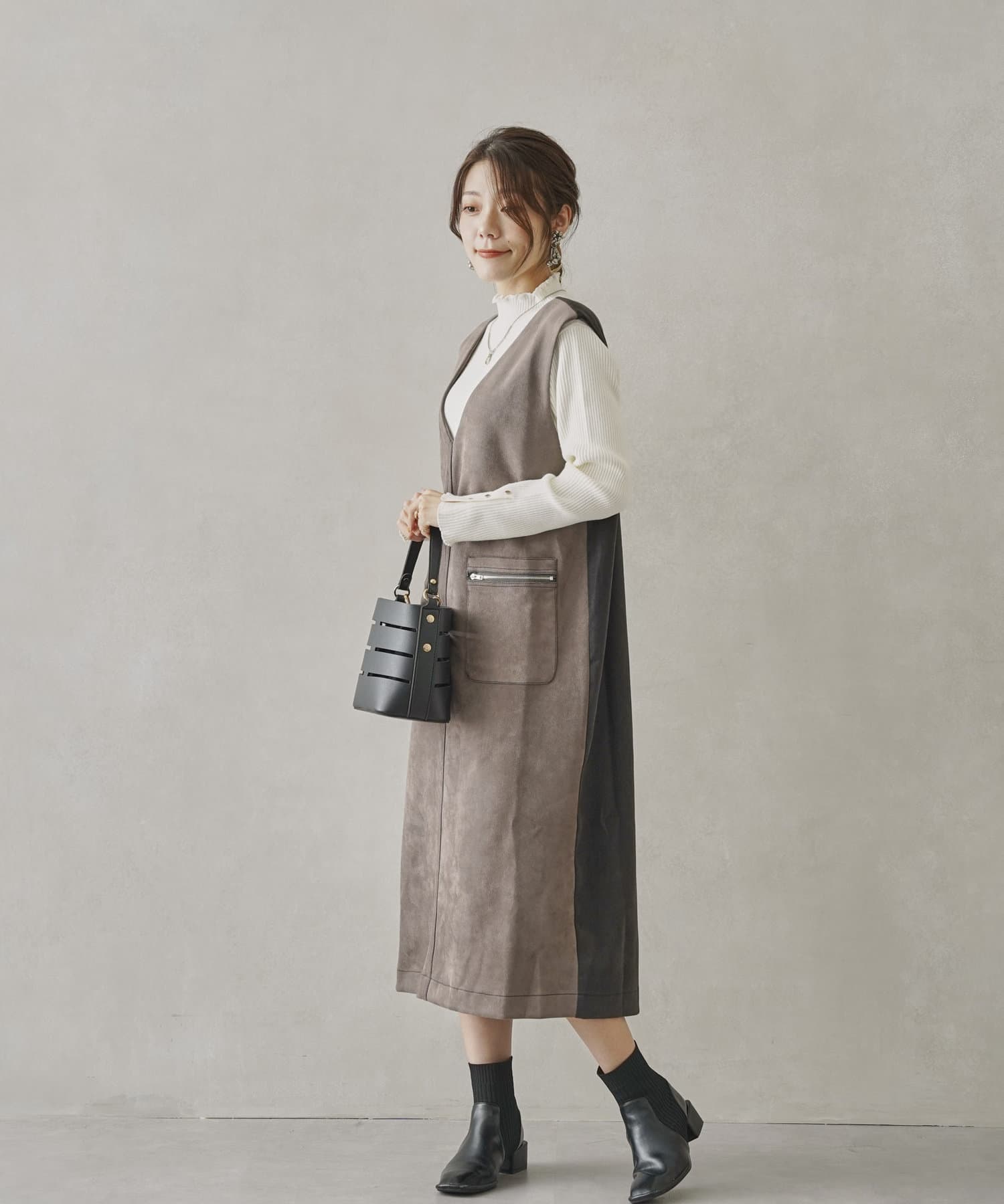 前後でデザインが変わる!!オトナが着たいきれいめジャンスカ