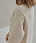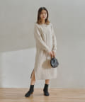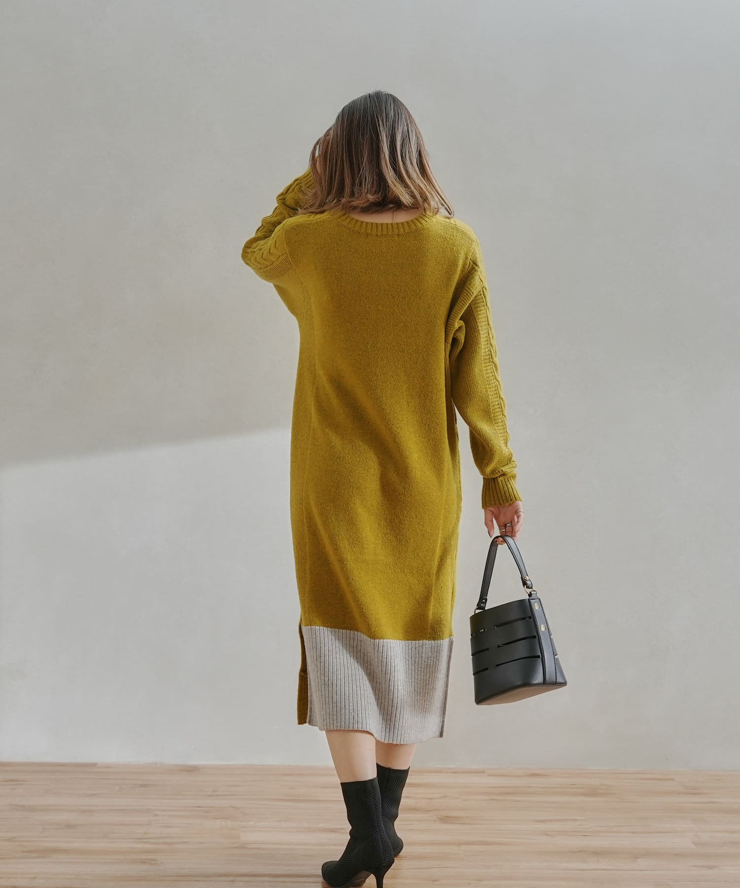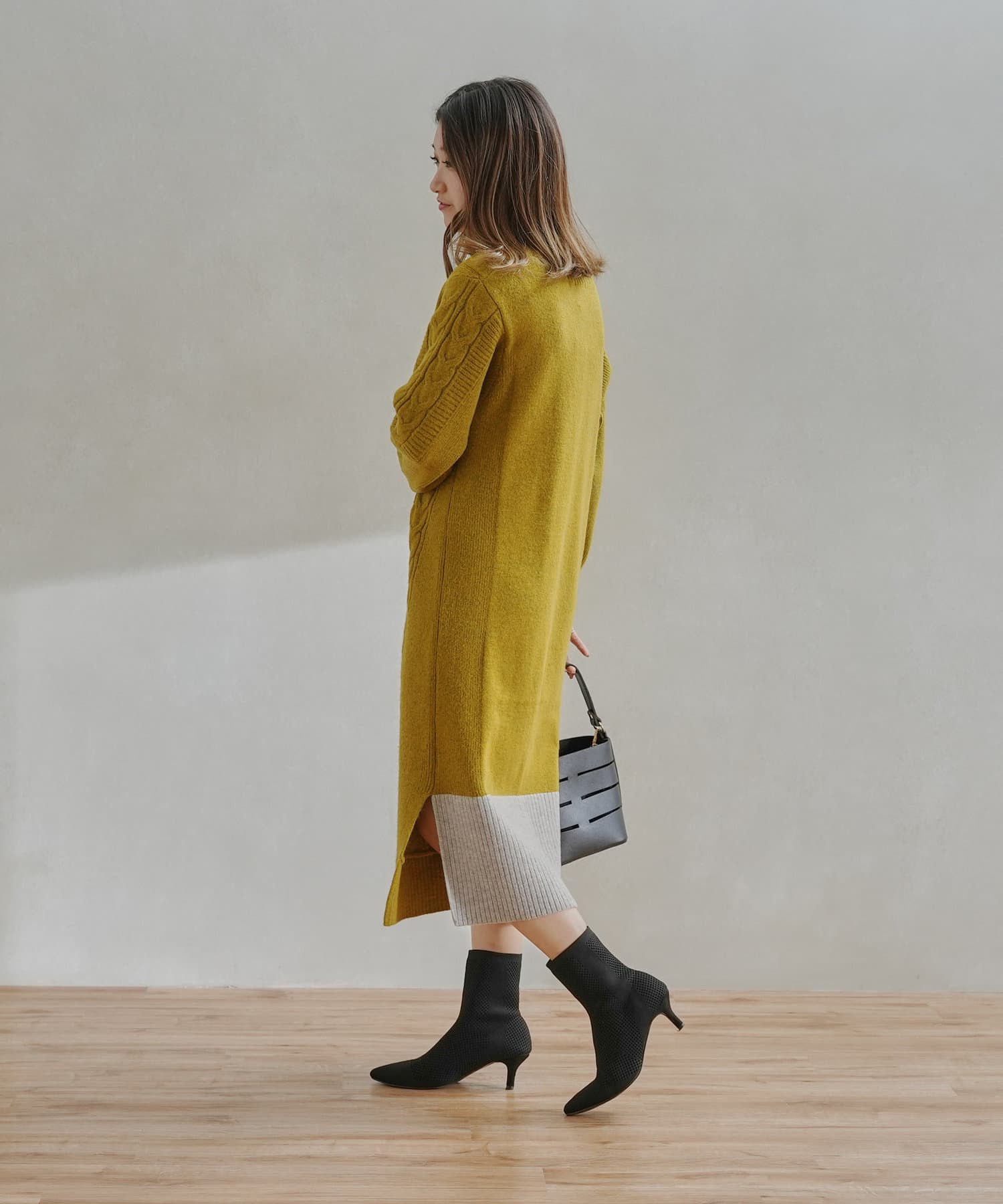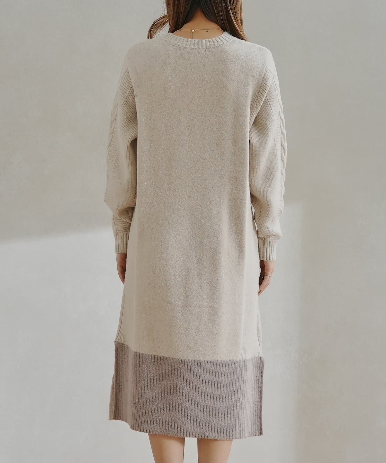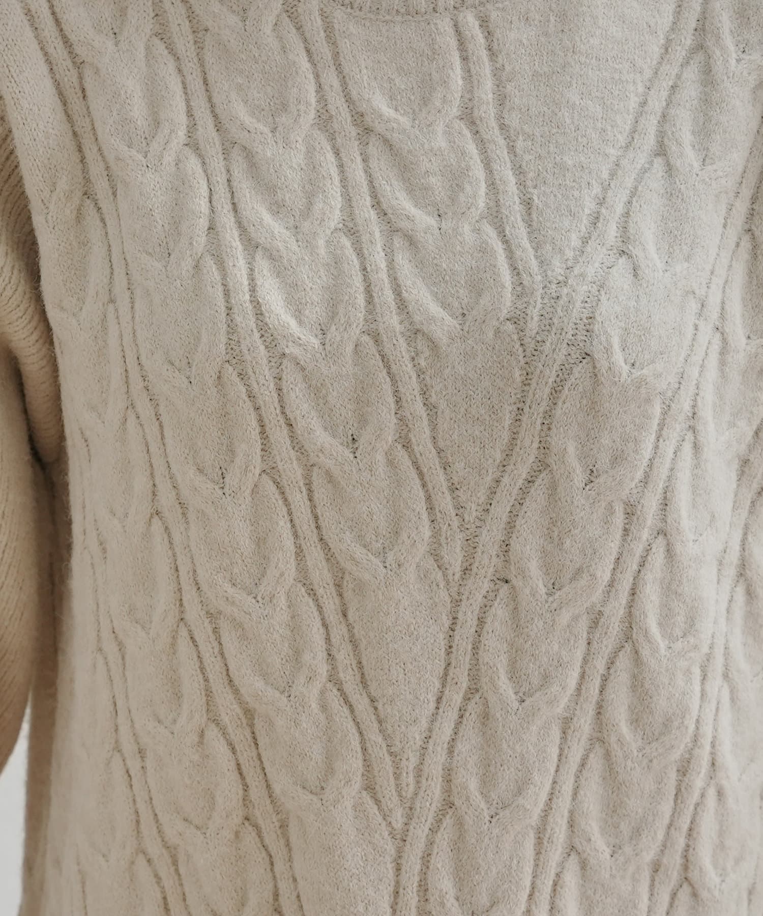 ・斜めに入ったケーブルの編み柄が珍しいニットワンピース