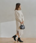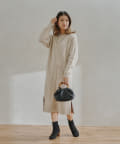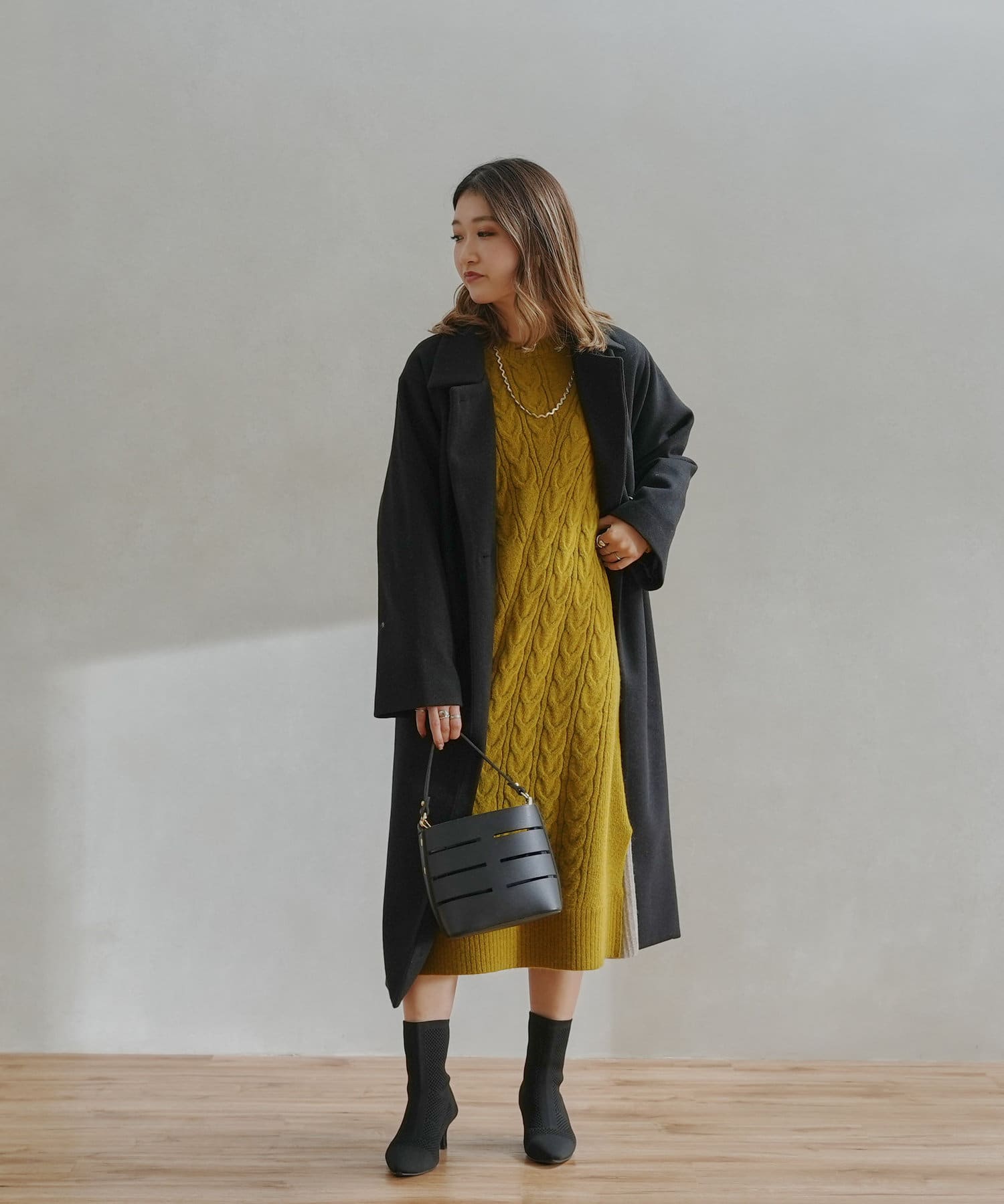 ・着丈長めのニットワンピースなので、一枚でコーディネートが完成する時短アイテム