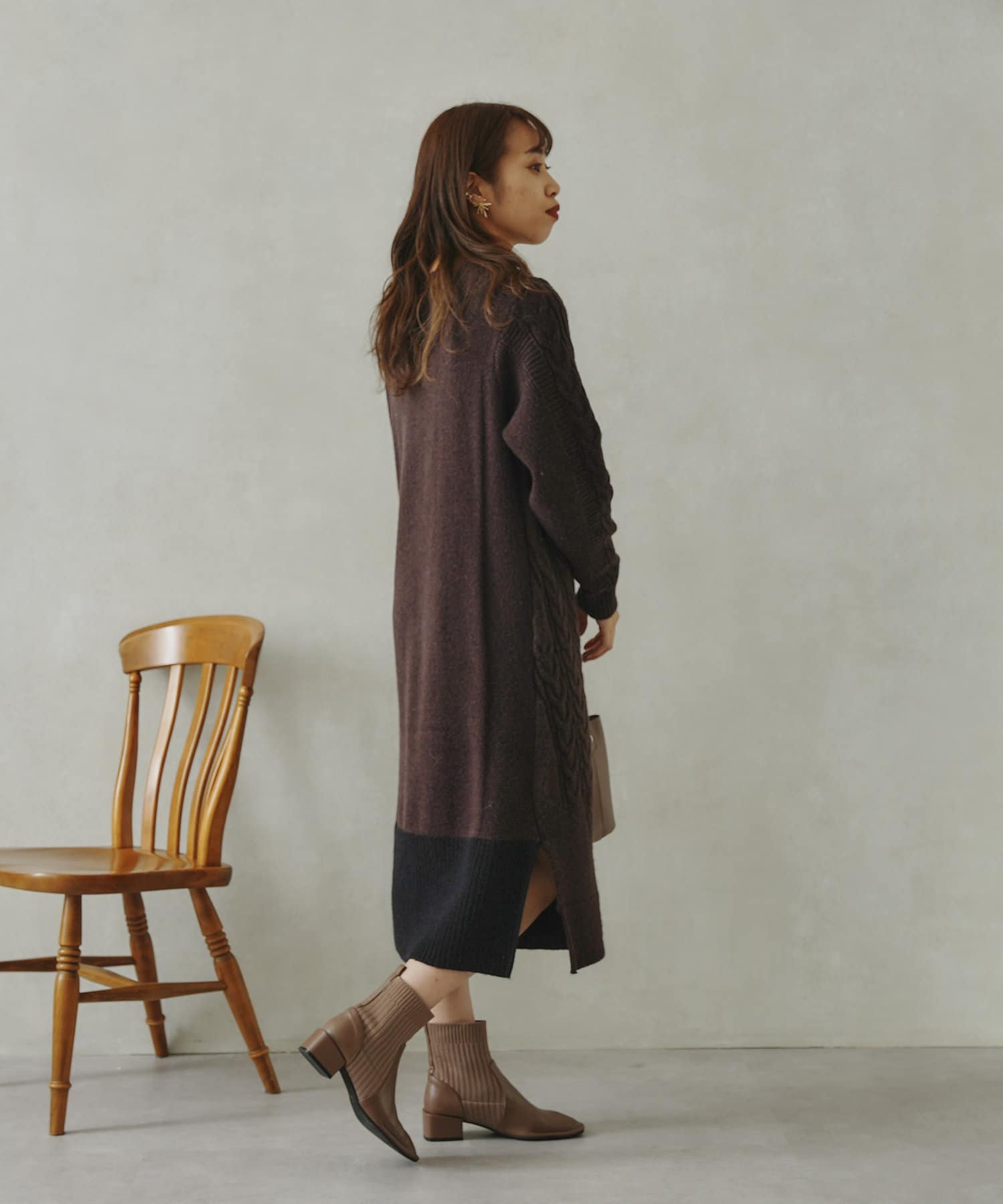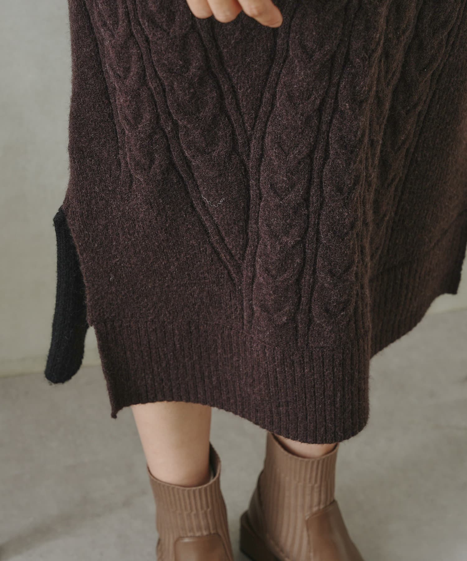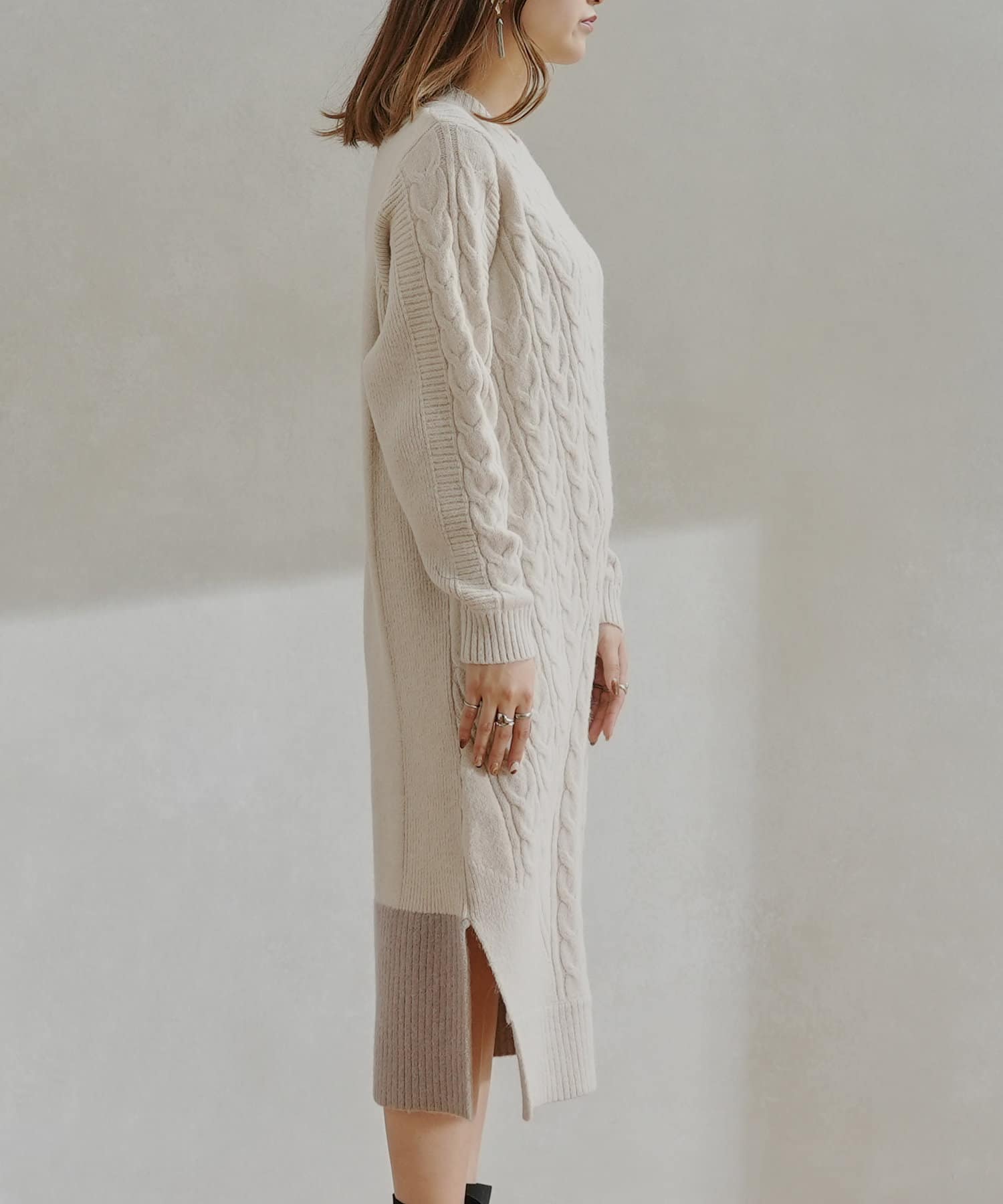 Chez toi(シェトワ) バイアスケーブルニットワンピース