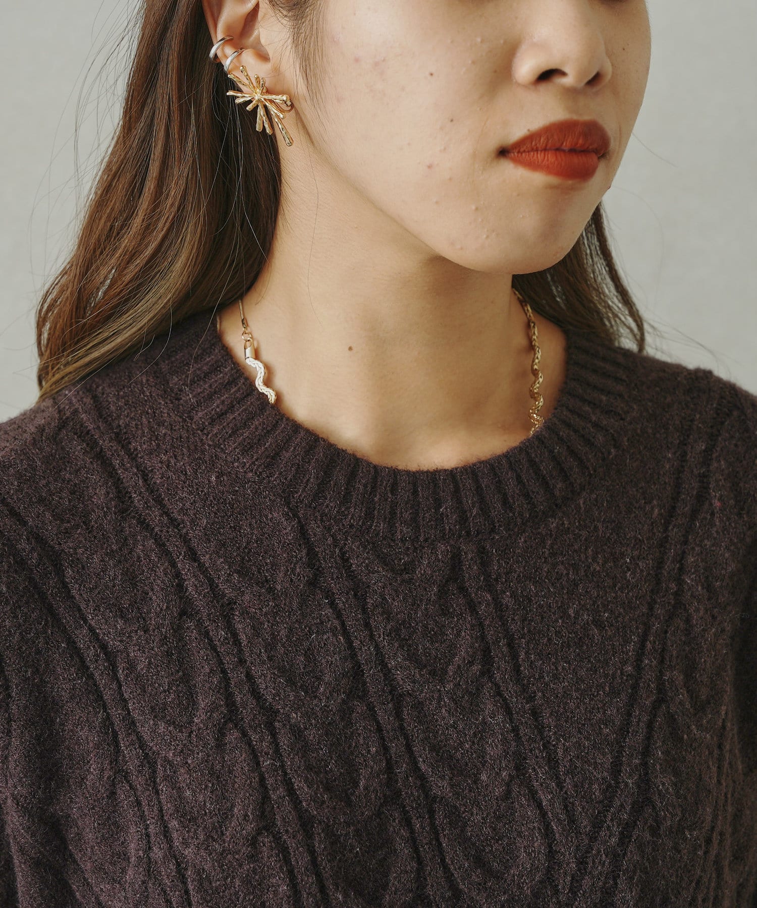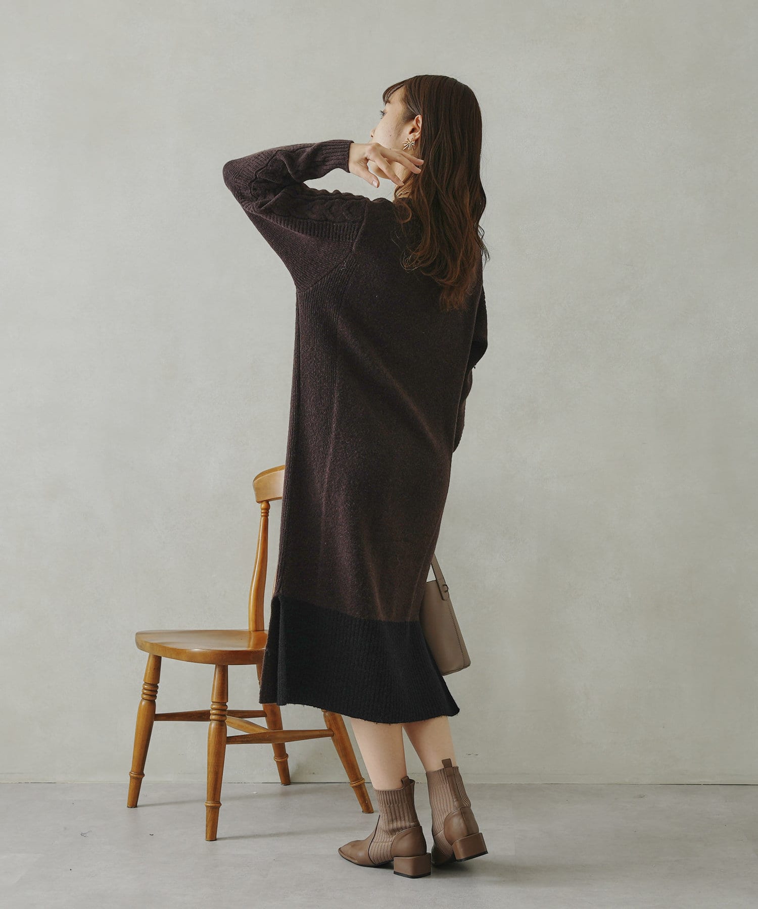 • Chez toi(シェトワ) バイアスケーブルニットワンピース