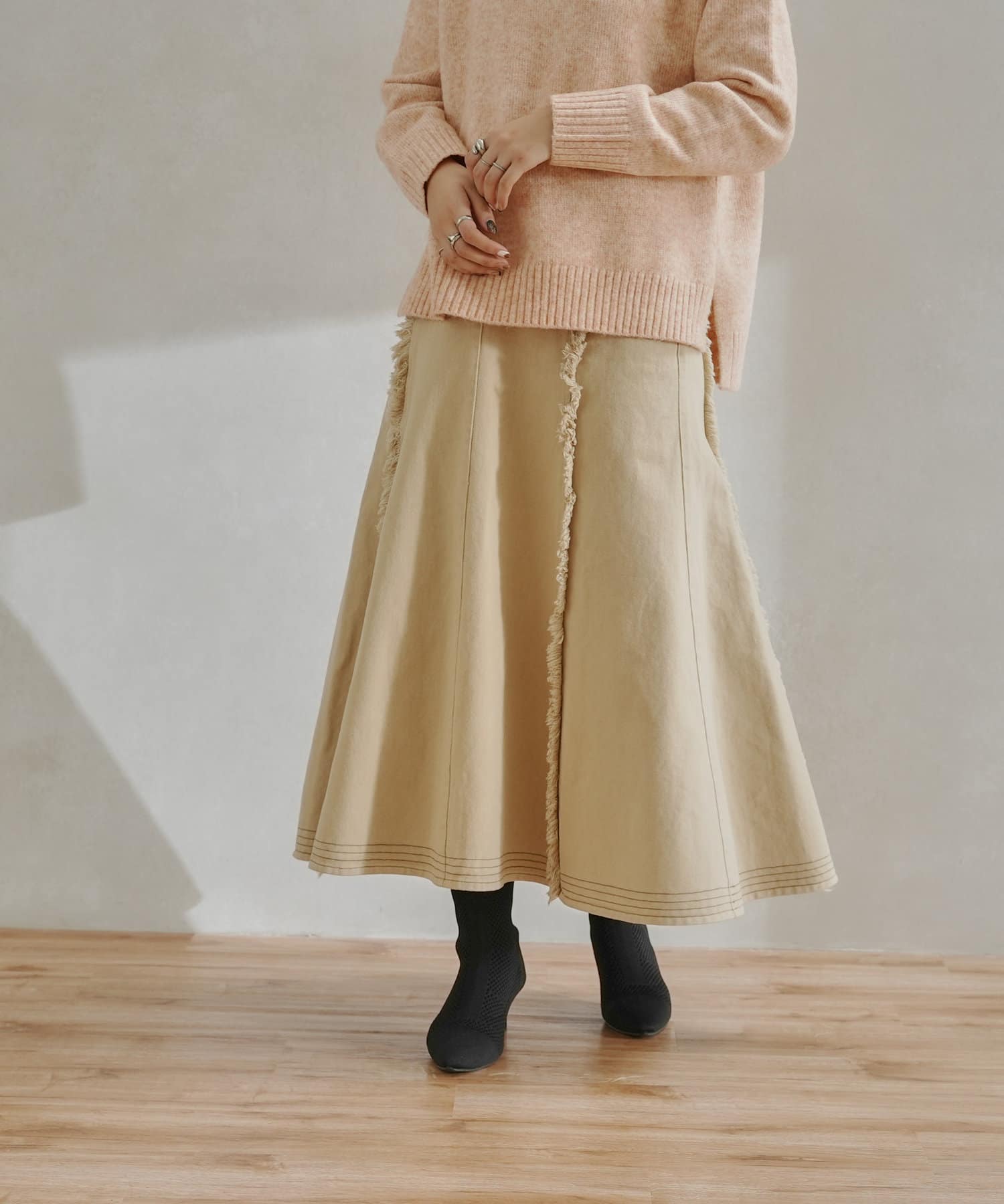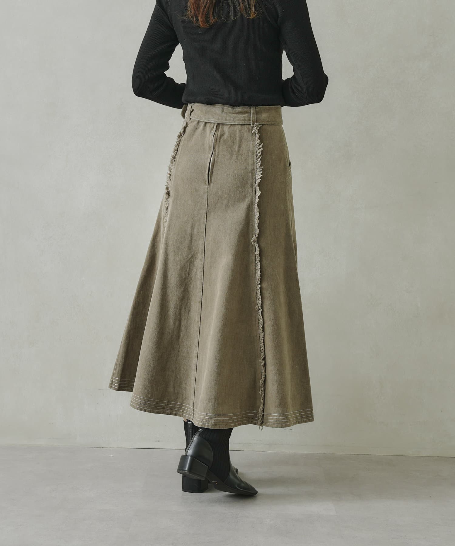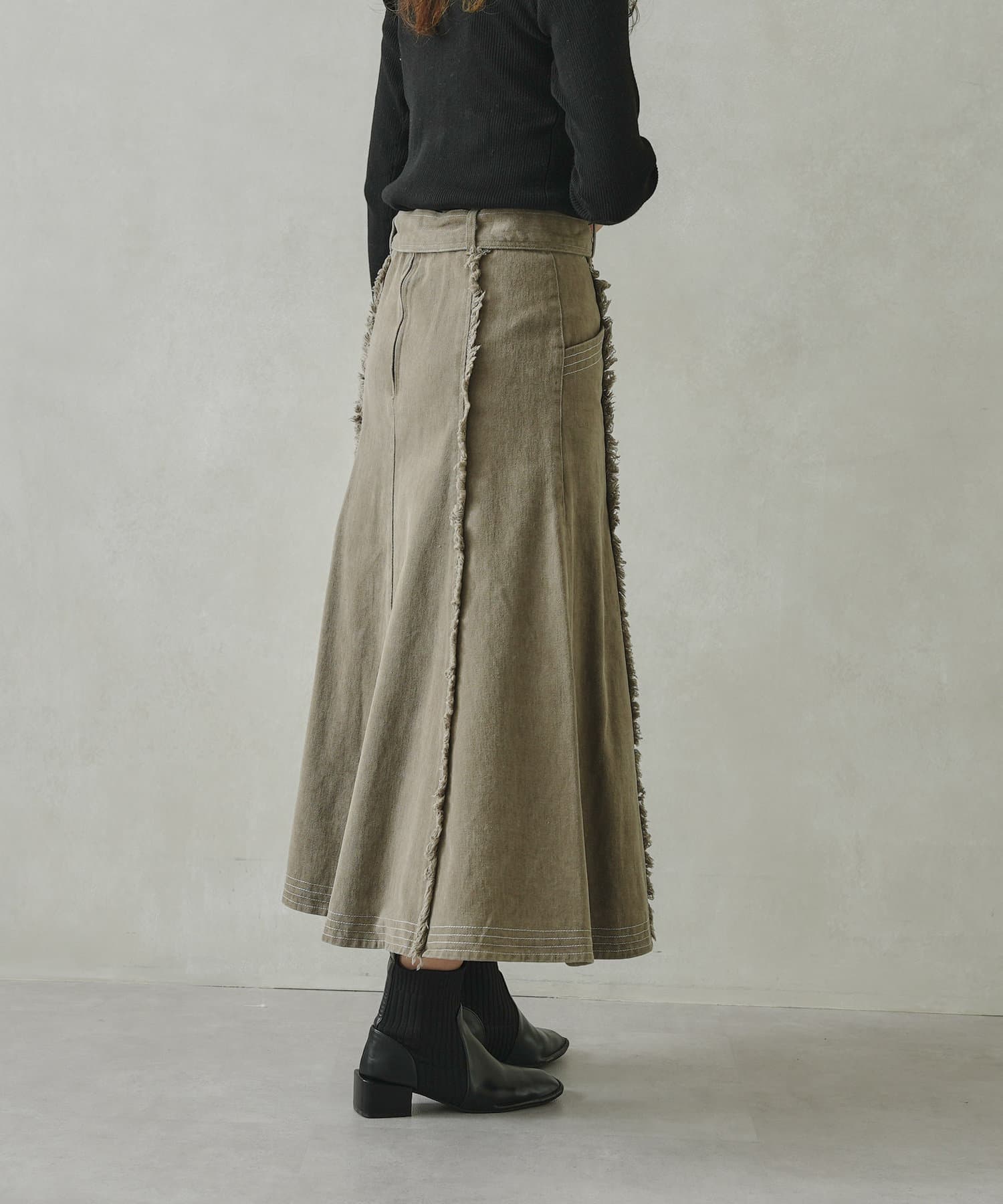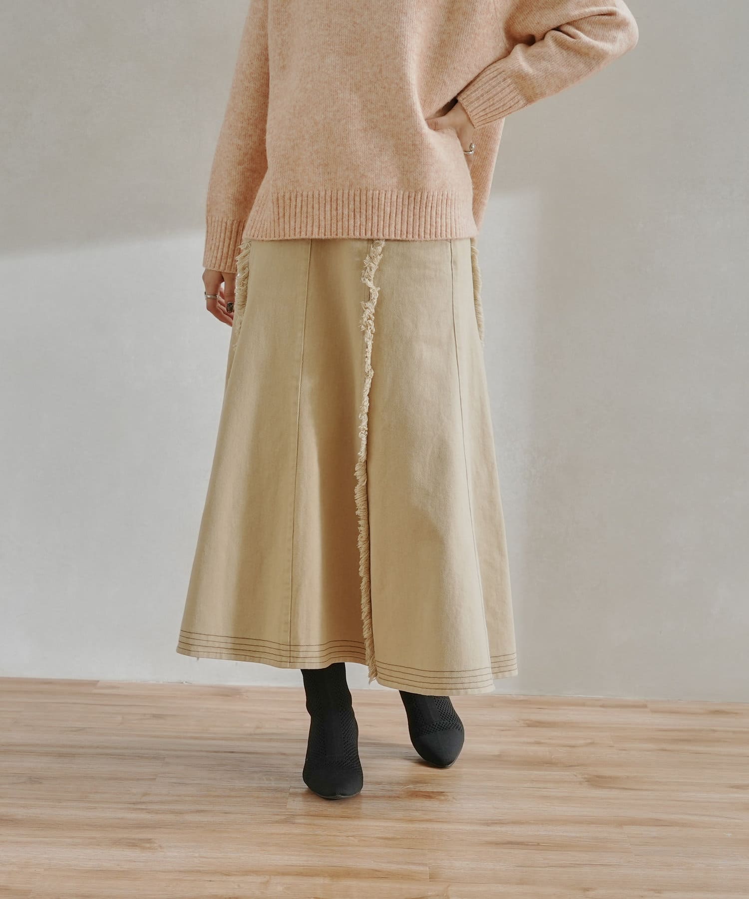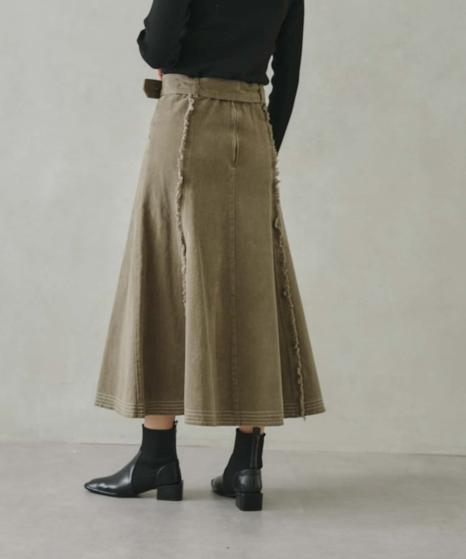 ステッチ×フリンジのが履くだけでオトナカジュアルコーデが完成するフレアスカート