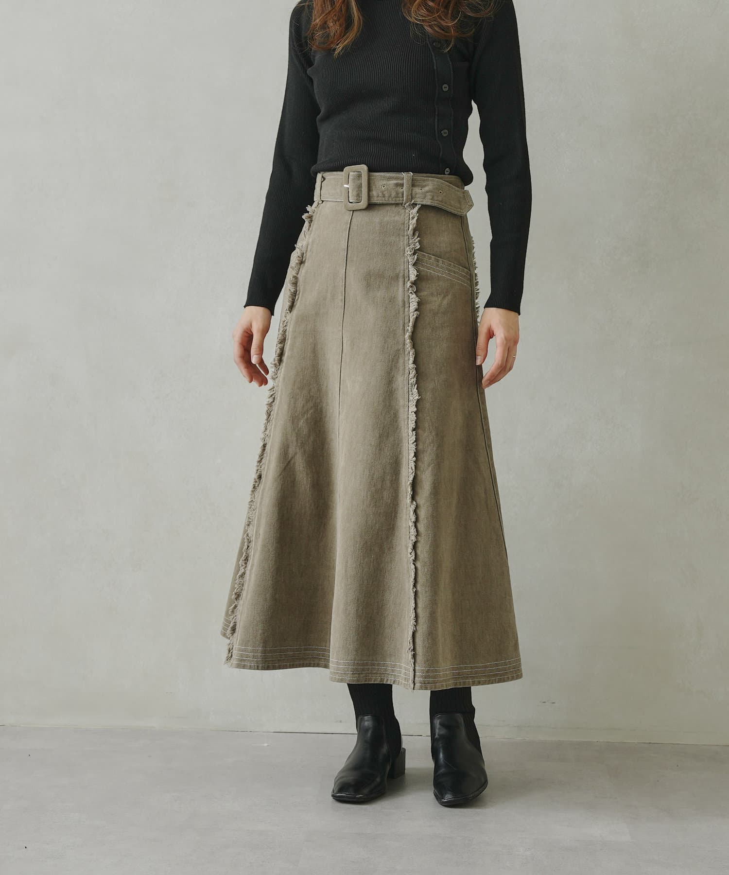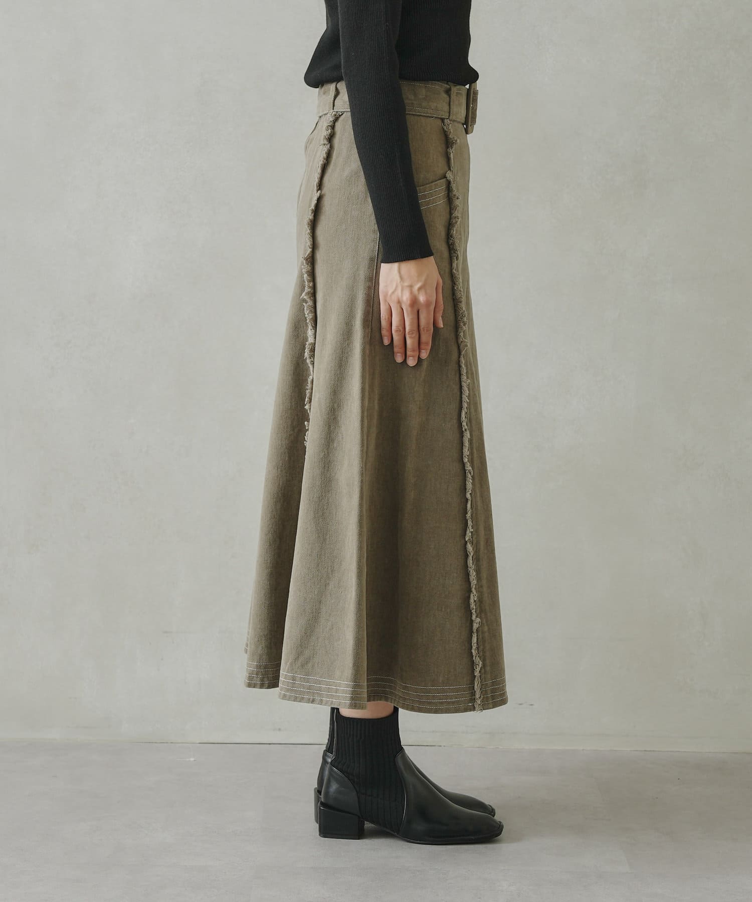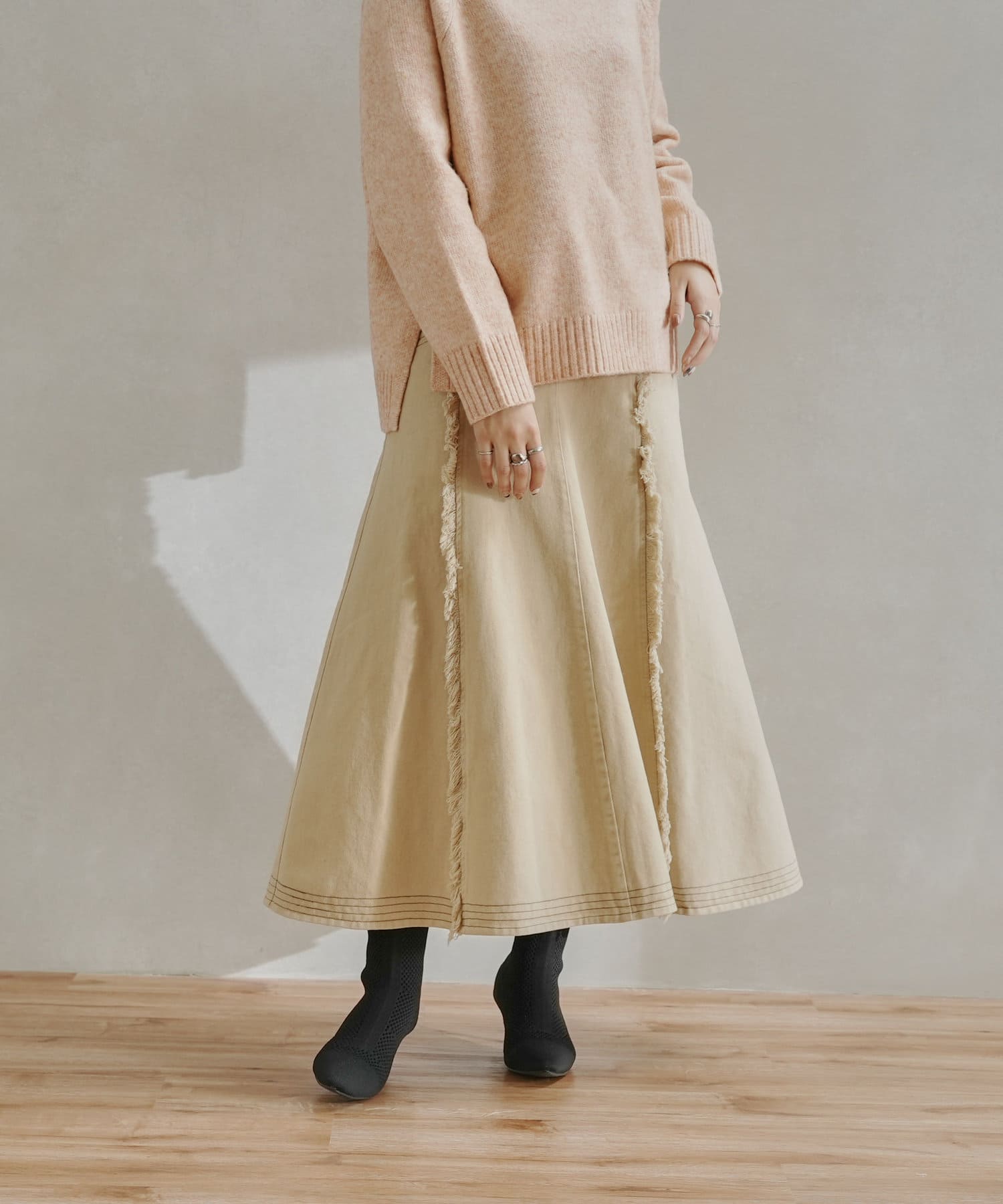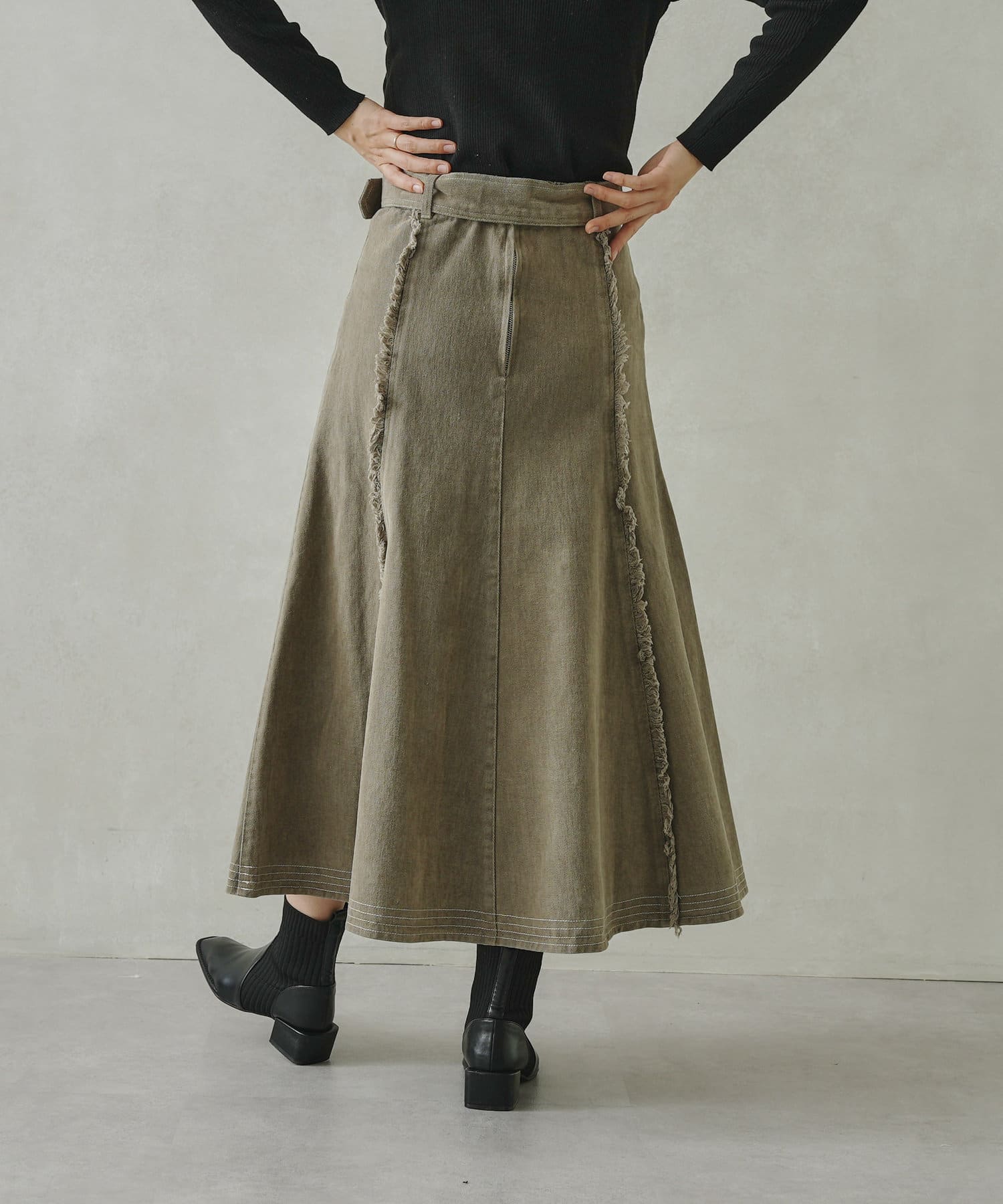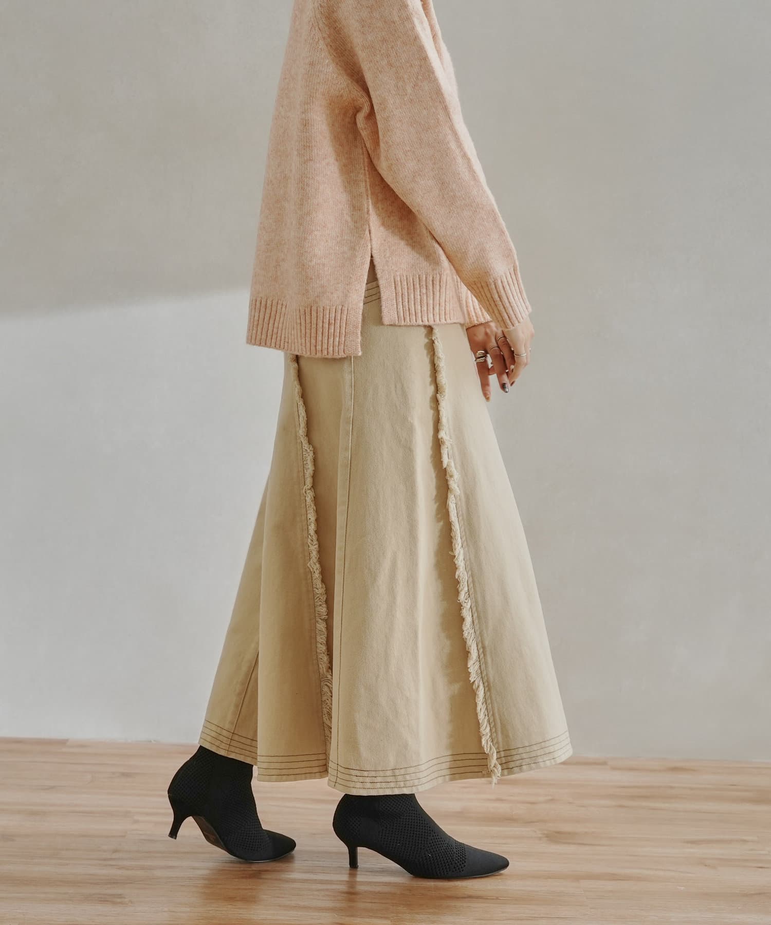 ステッチ×フリンジのが履くだけでオトナカジュアルコーデが完成するフレアスカート