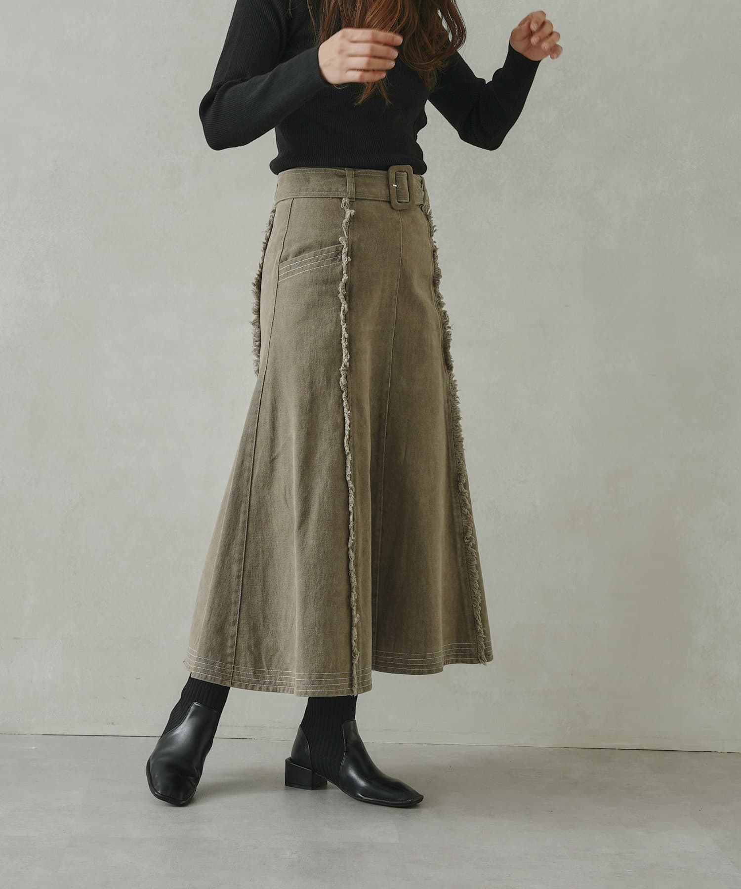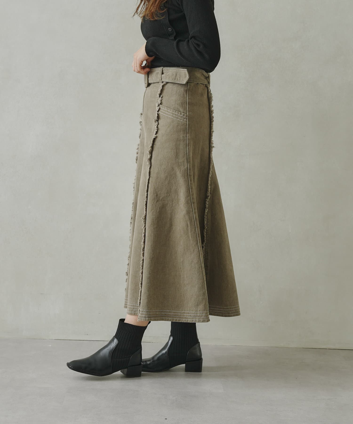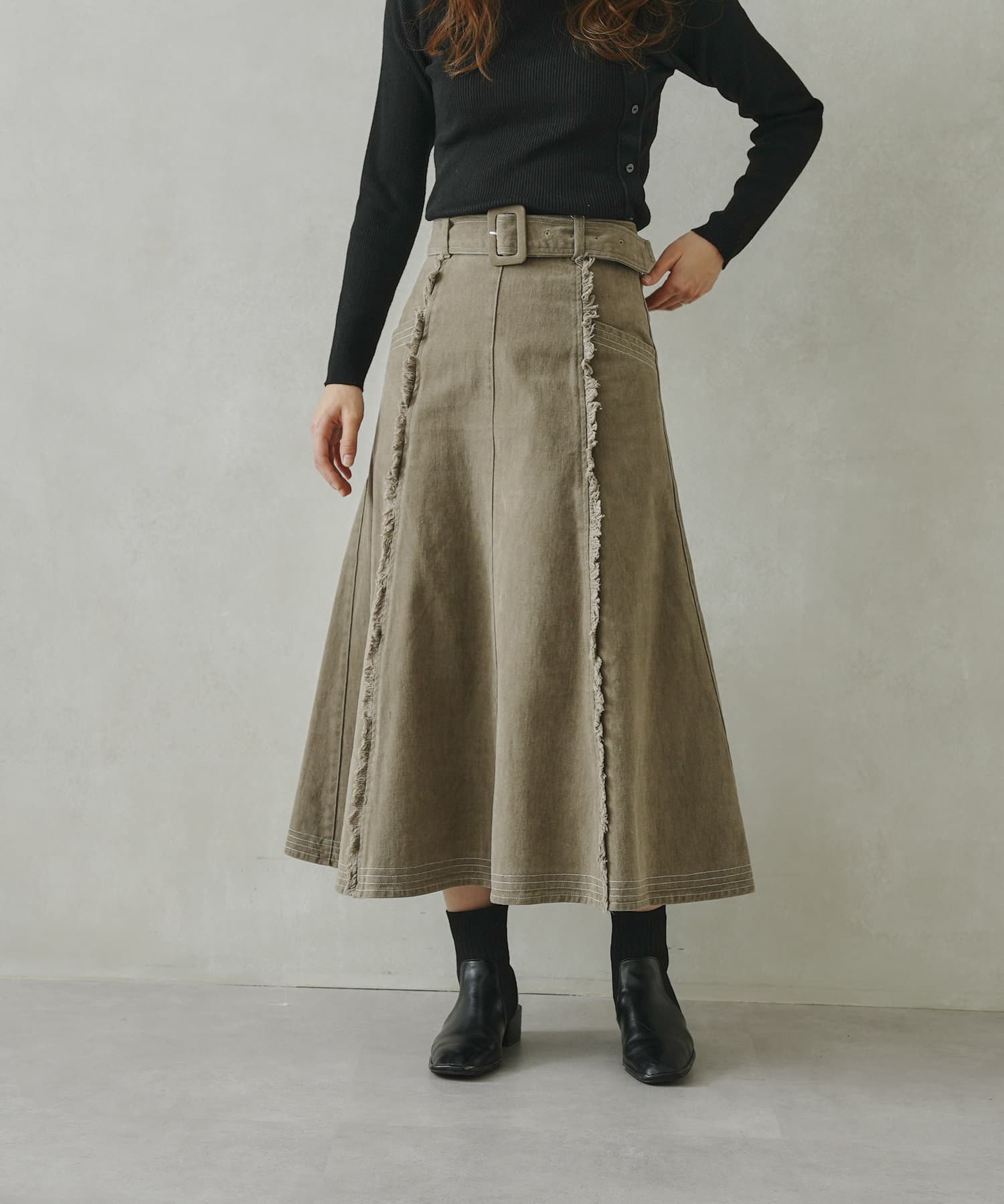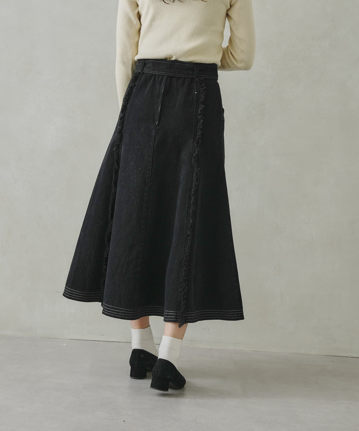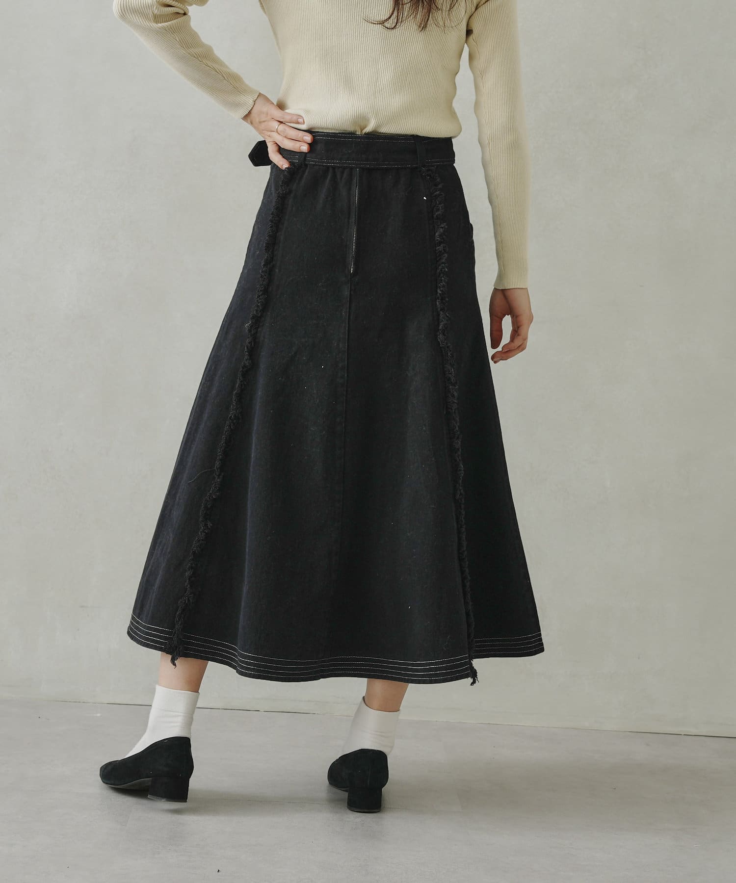 ステッチ×フリンジのが履くだけでオトナカジュアルコーデが完成するフレアスカート