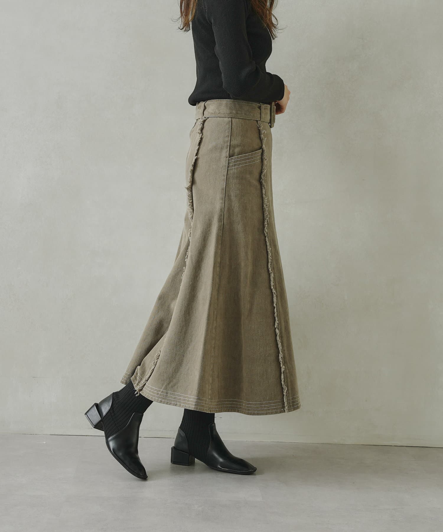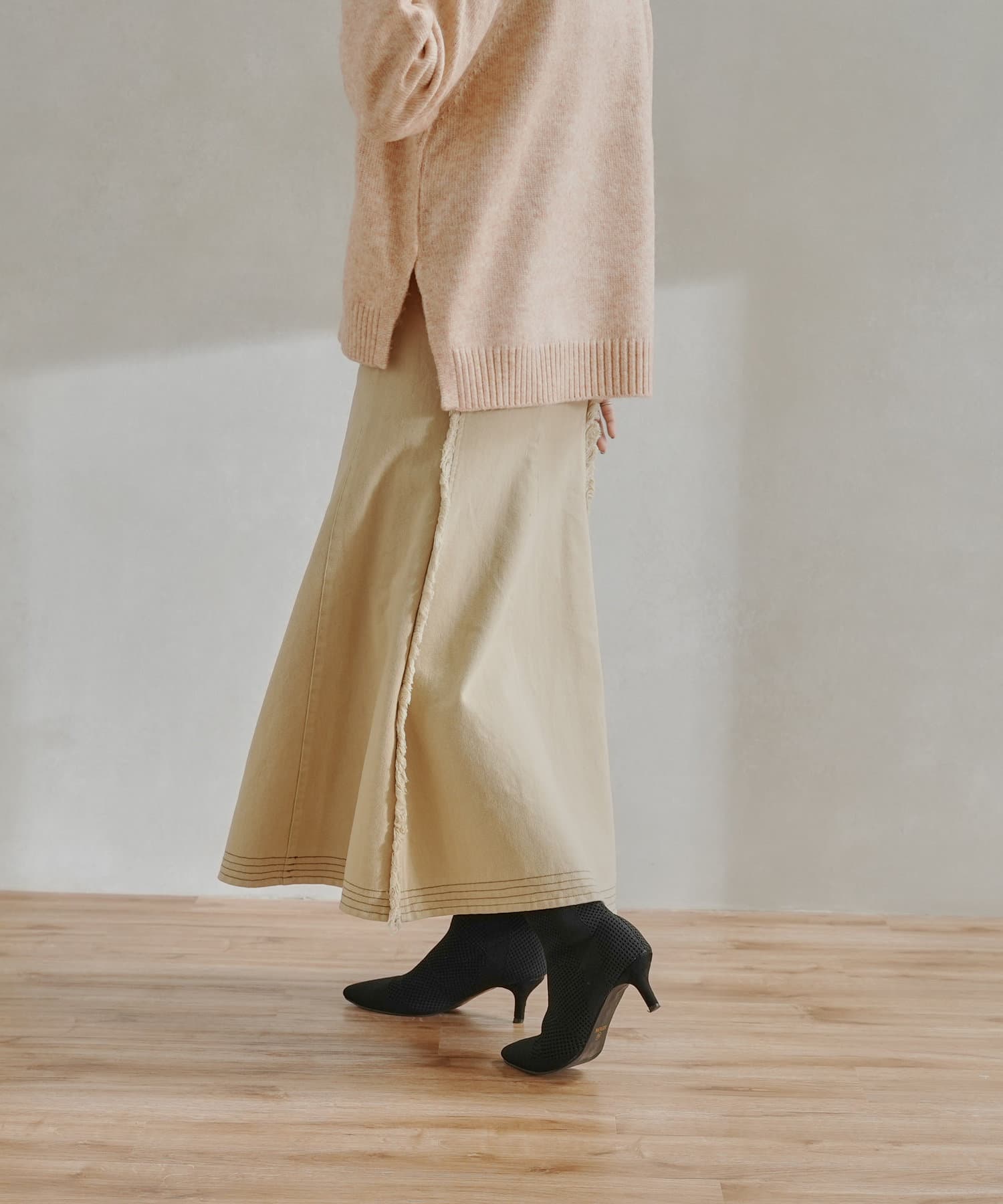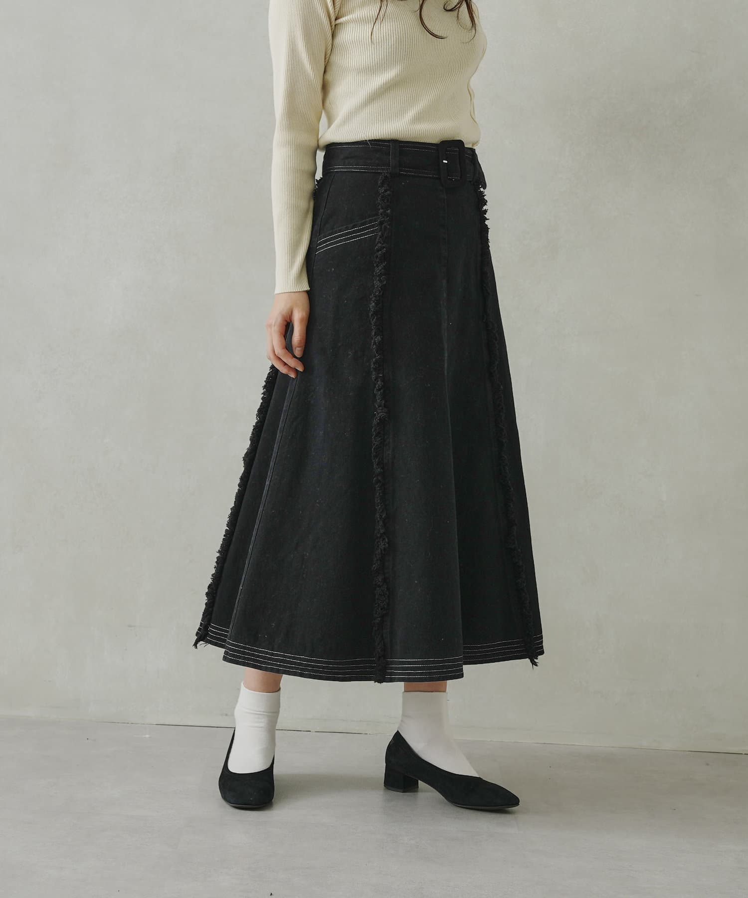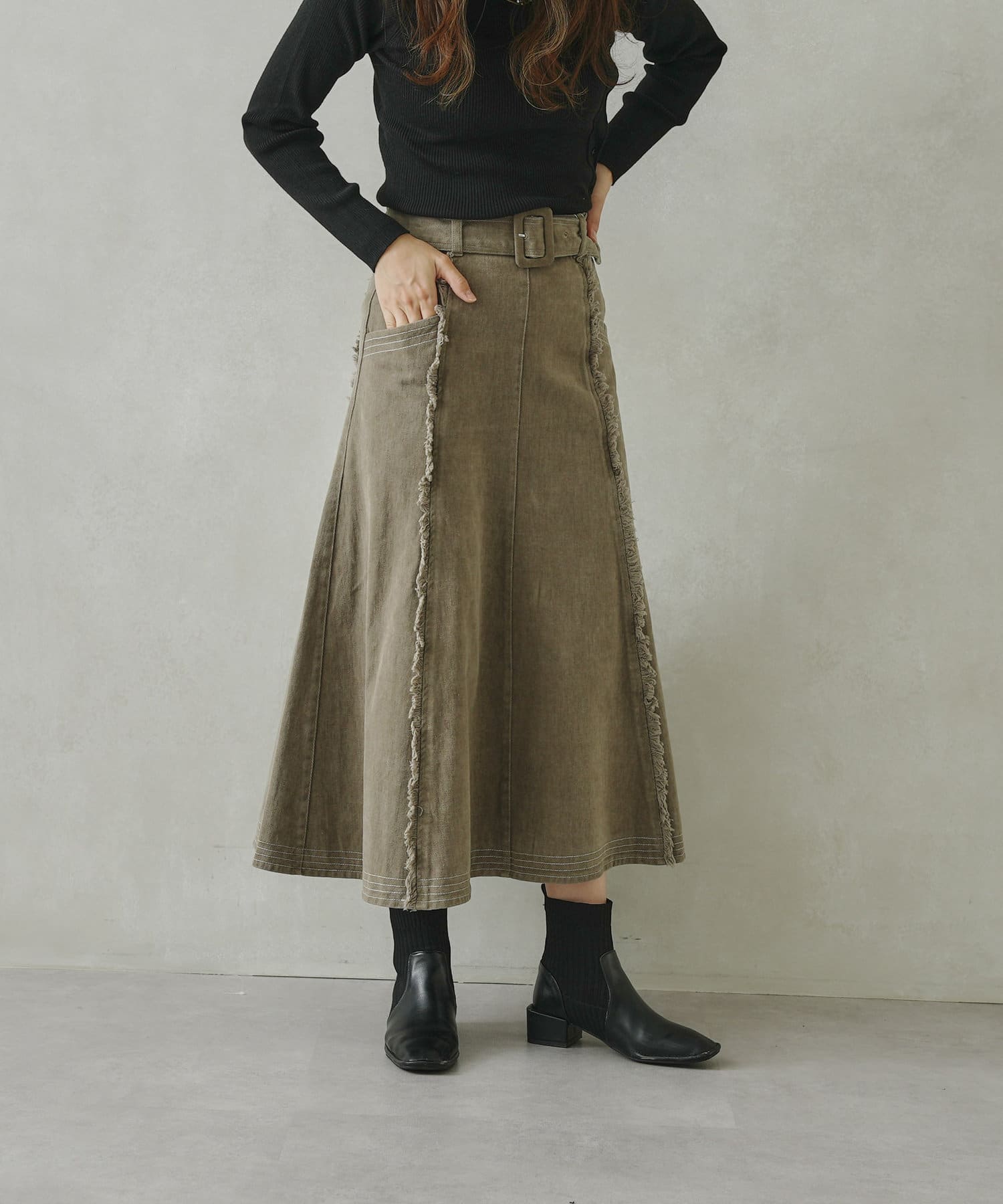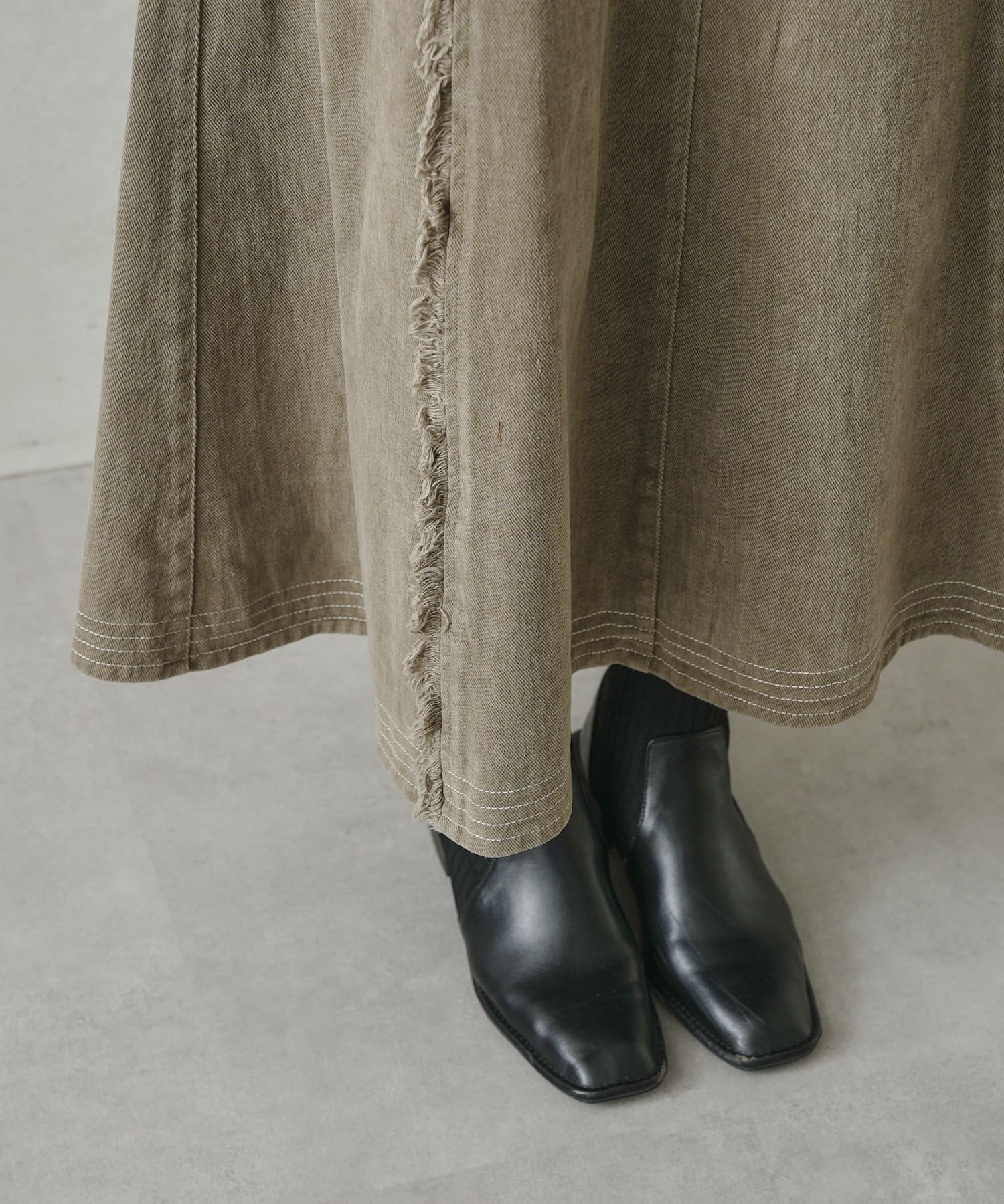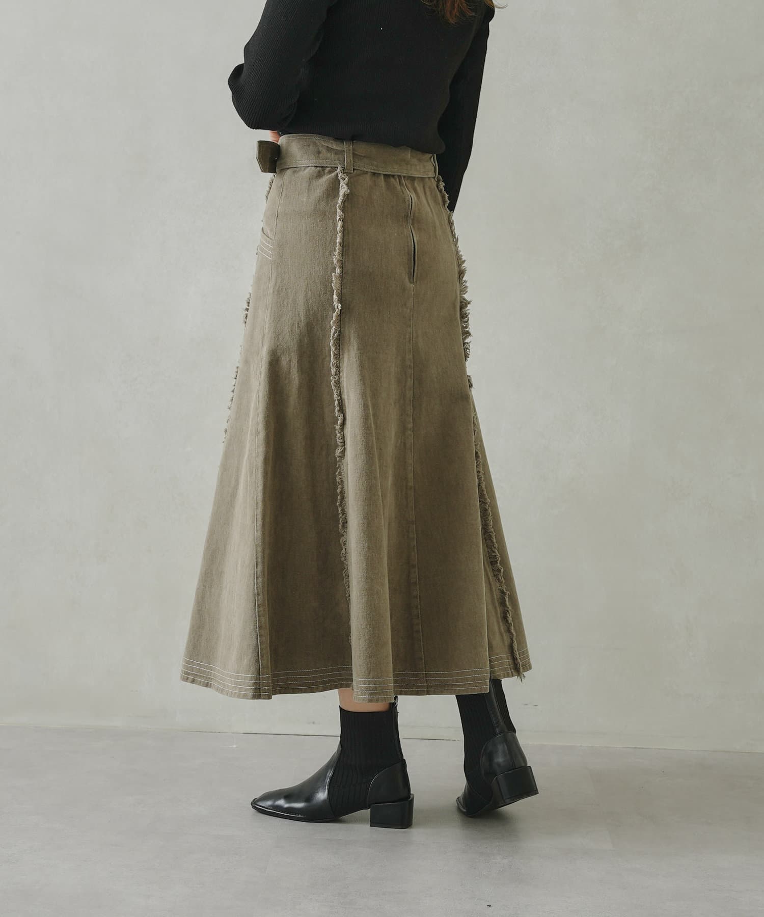 ステッチ×フリンジのが履くだけでオトナカジュアルコーデが完成するフレアスカート