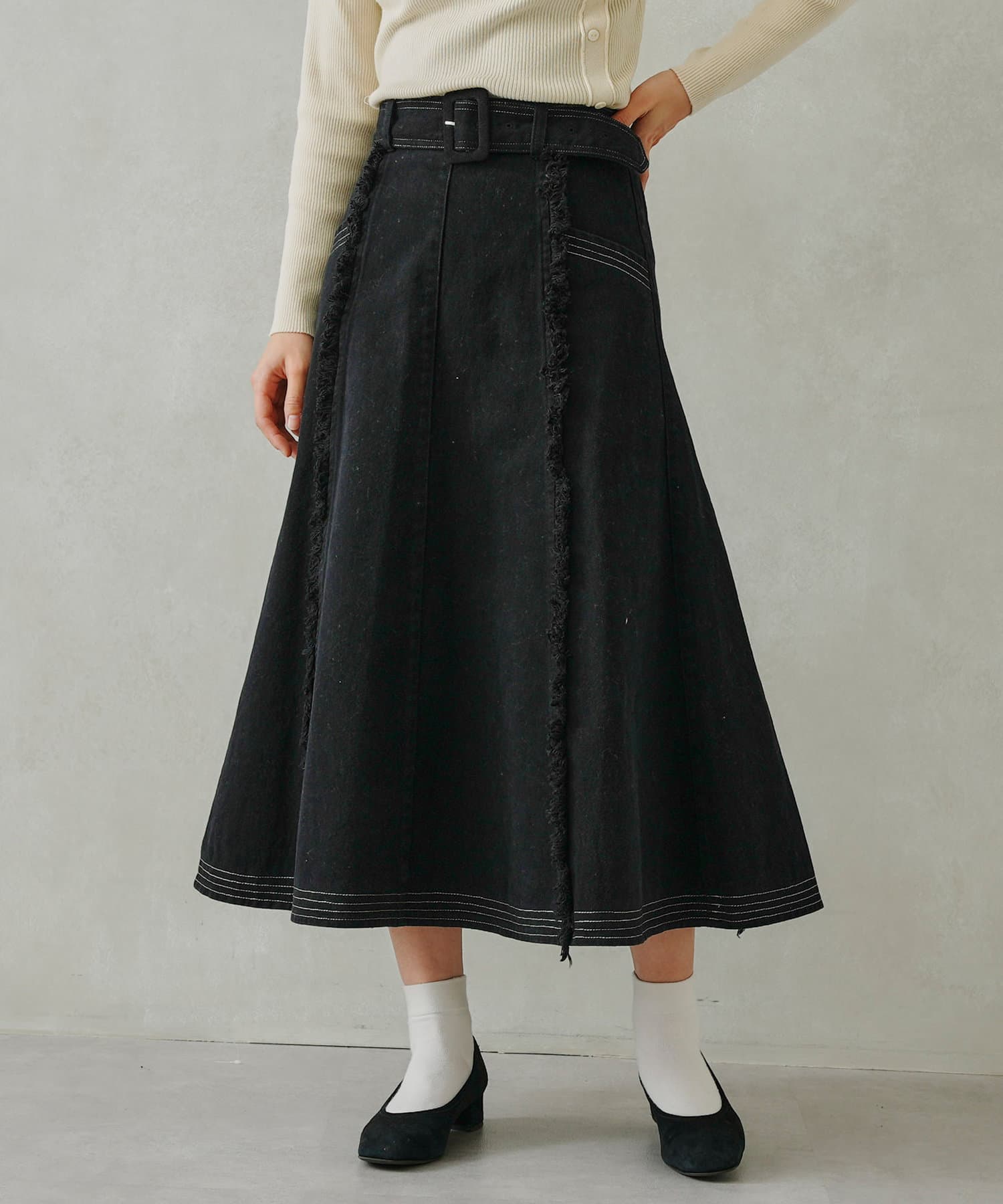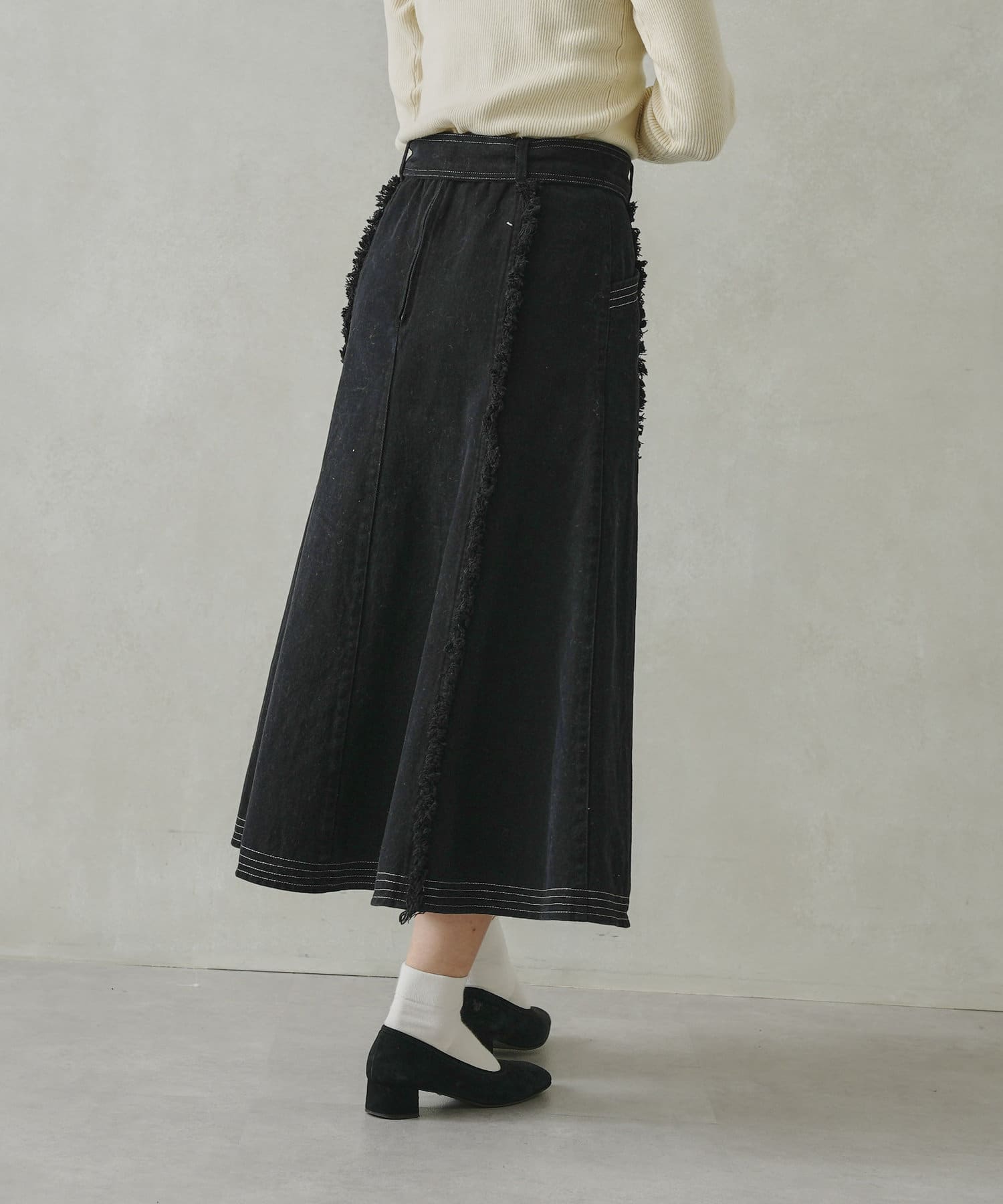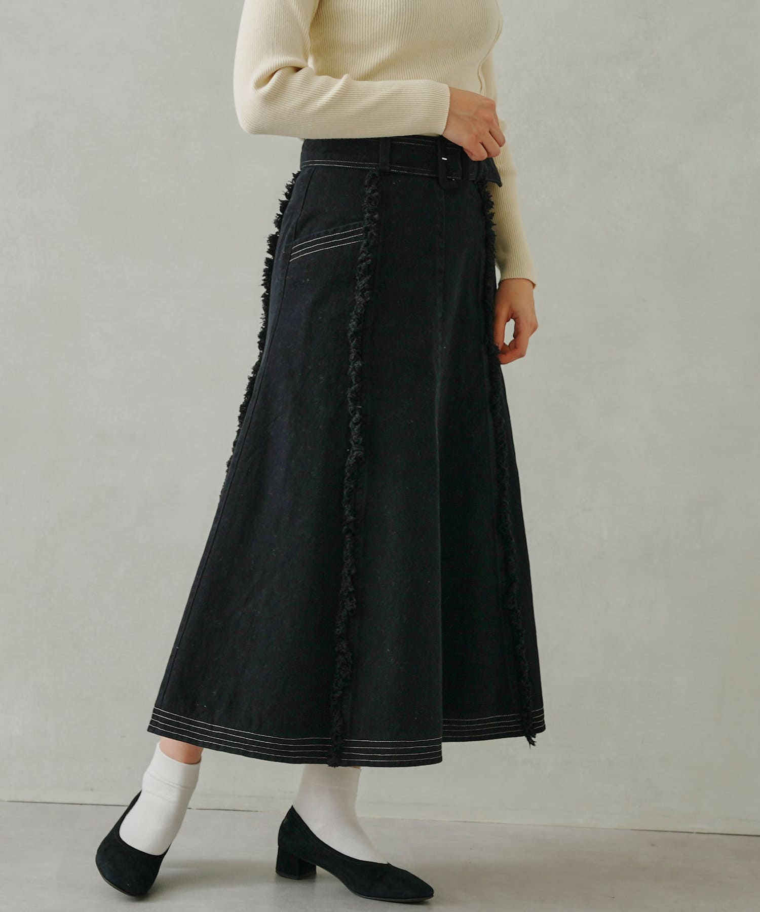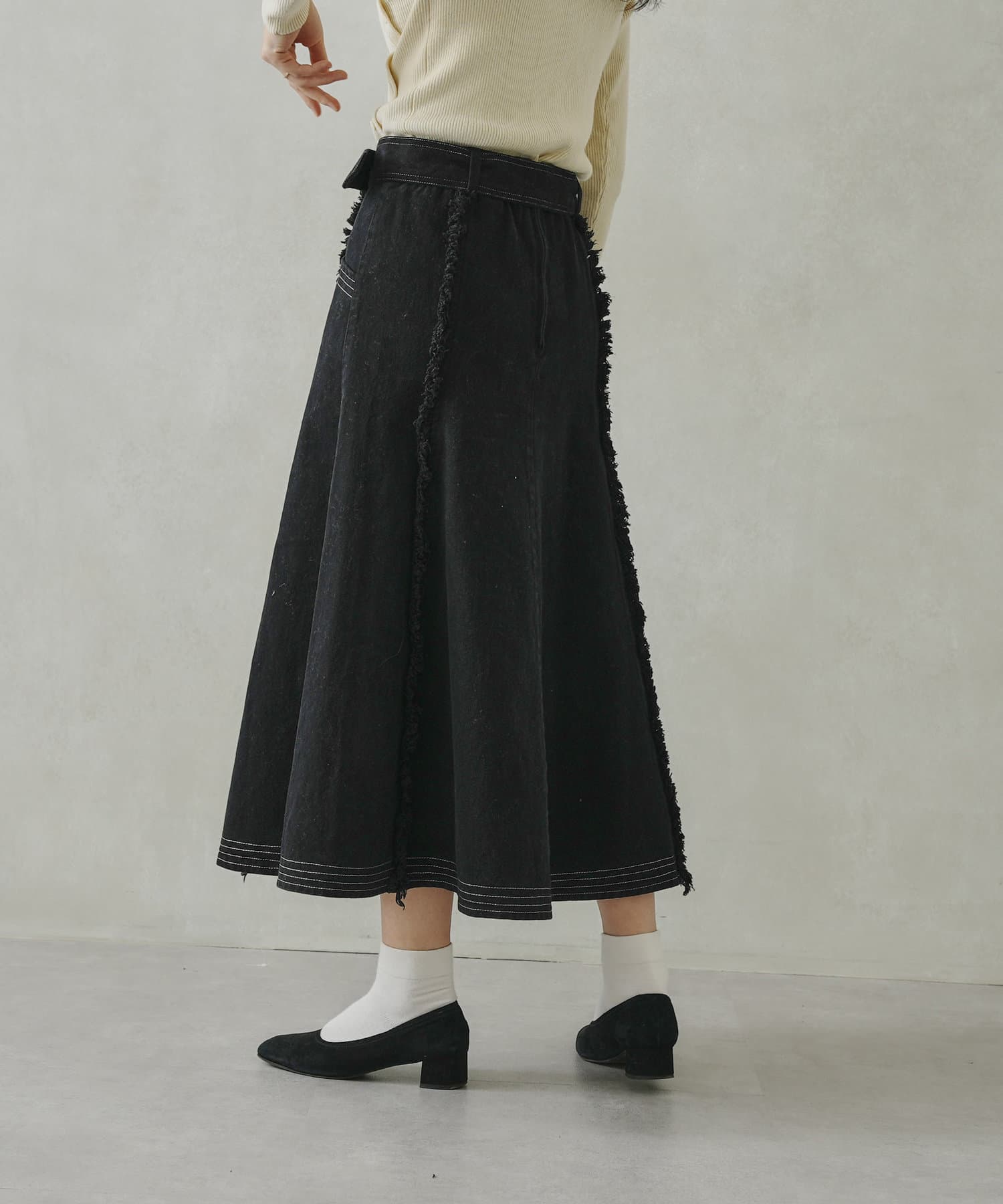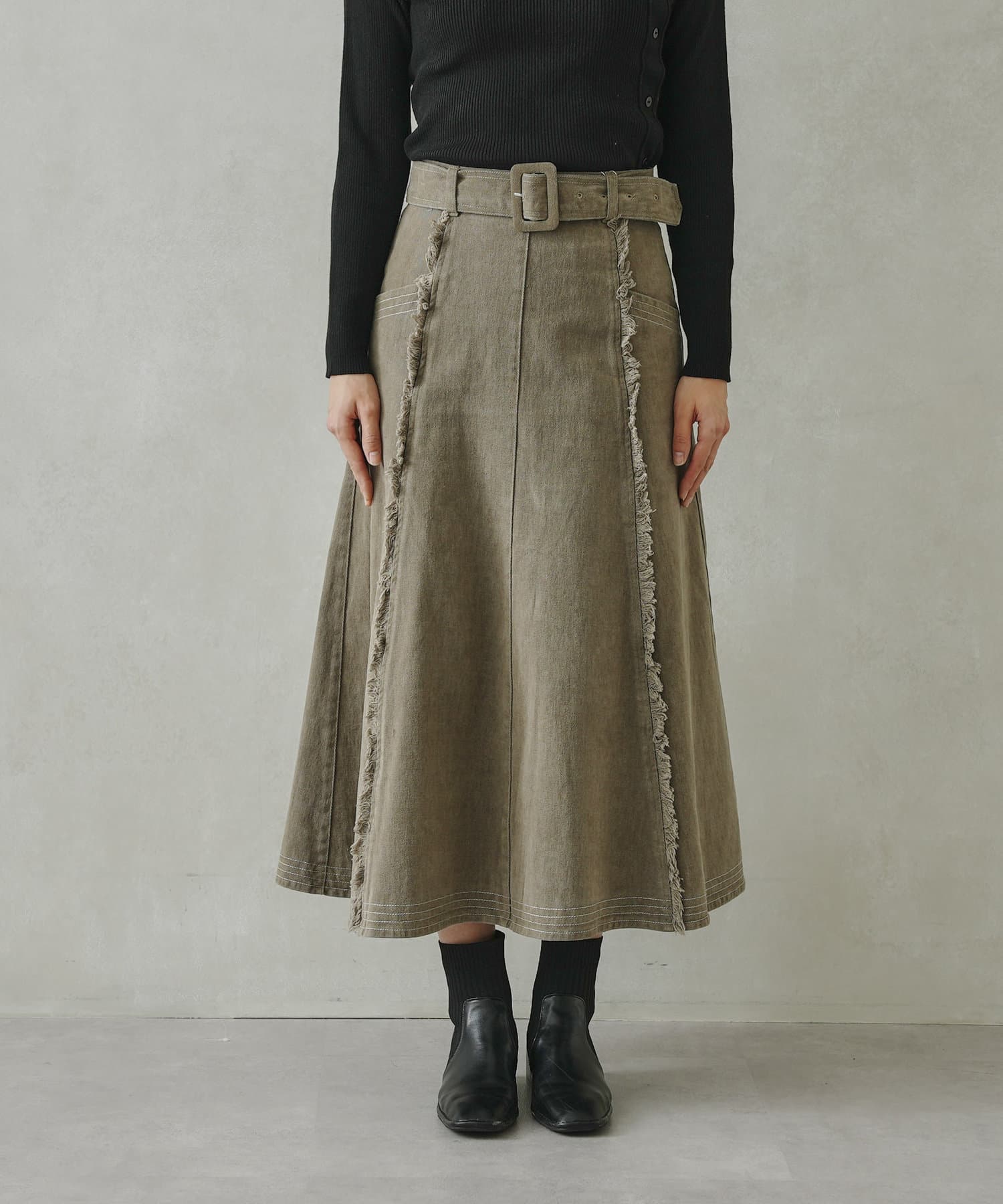 ステッチ×フリンジのが履くだけでオトナカジュアルコーデが完成するフレアスカート