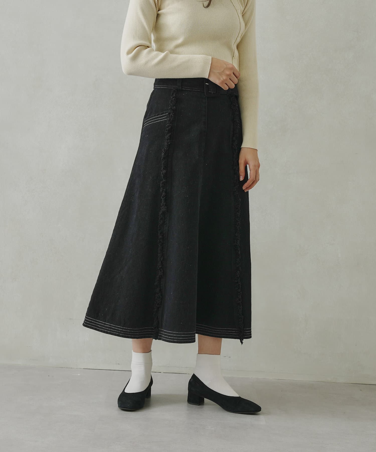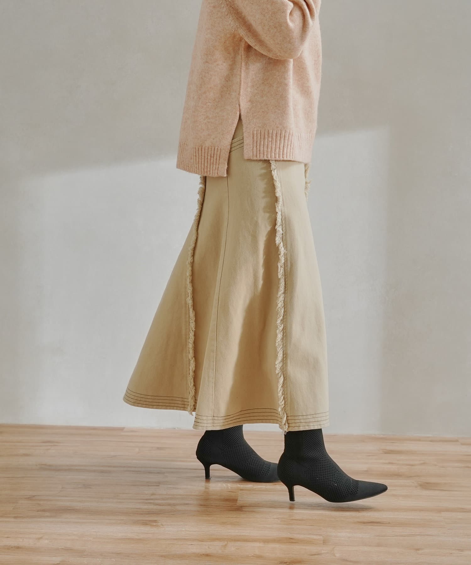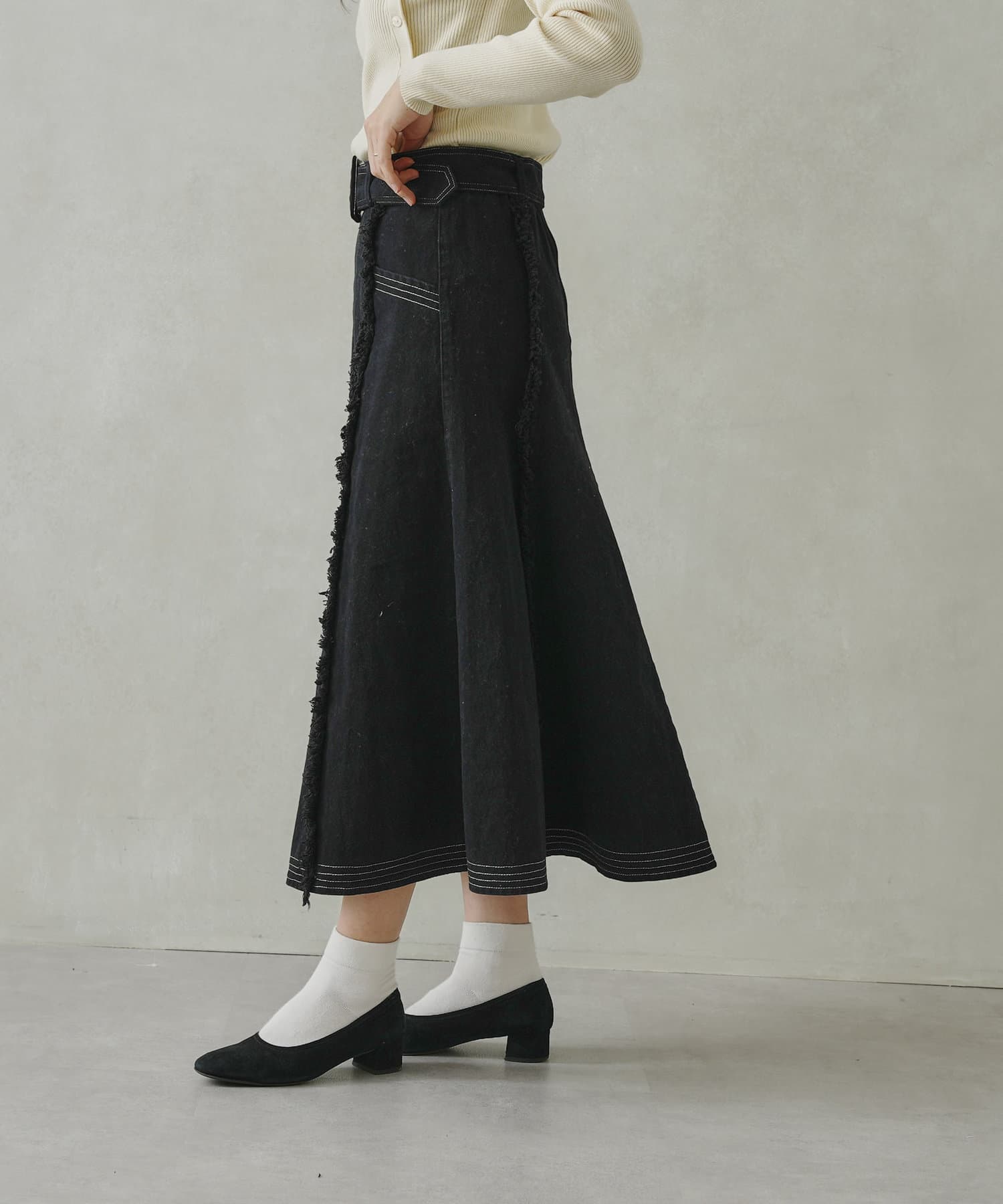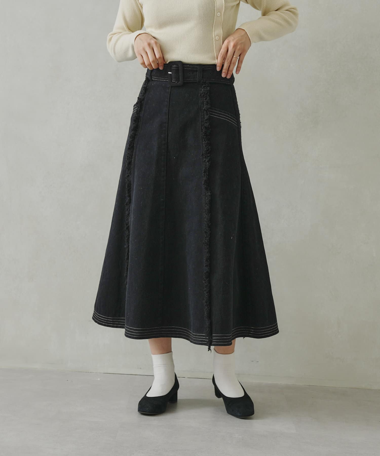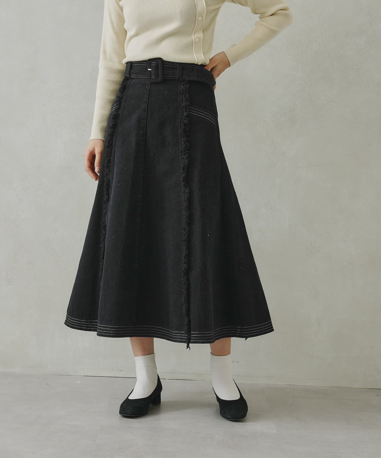 ステッチ×フリンジのが履くだけでオトナカジュアルコーデが完成するフレアスカート