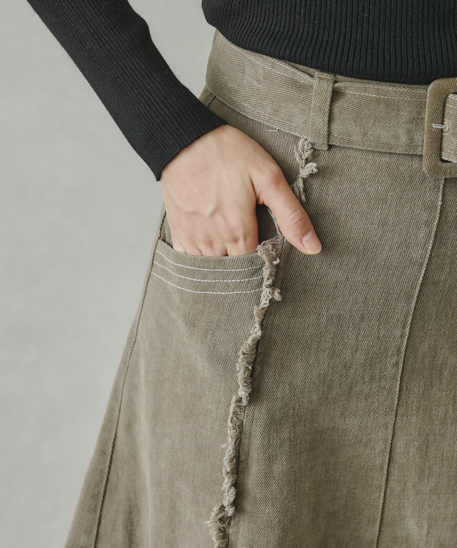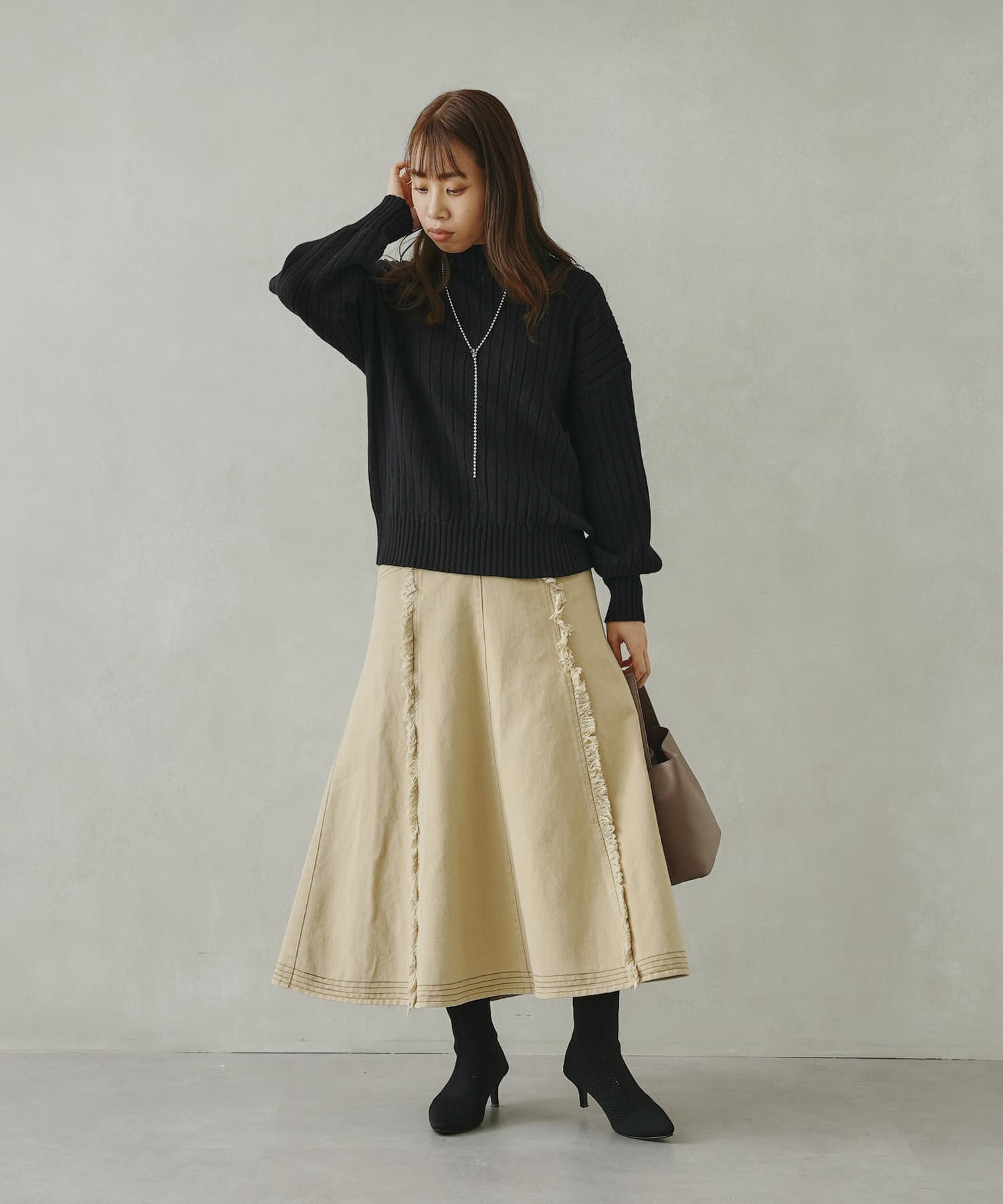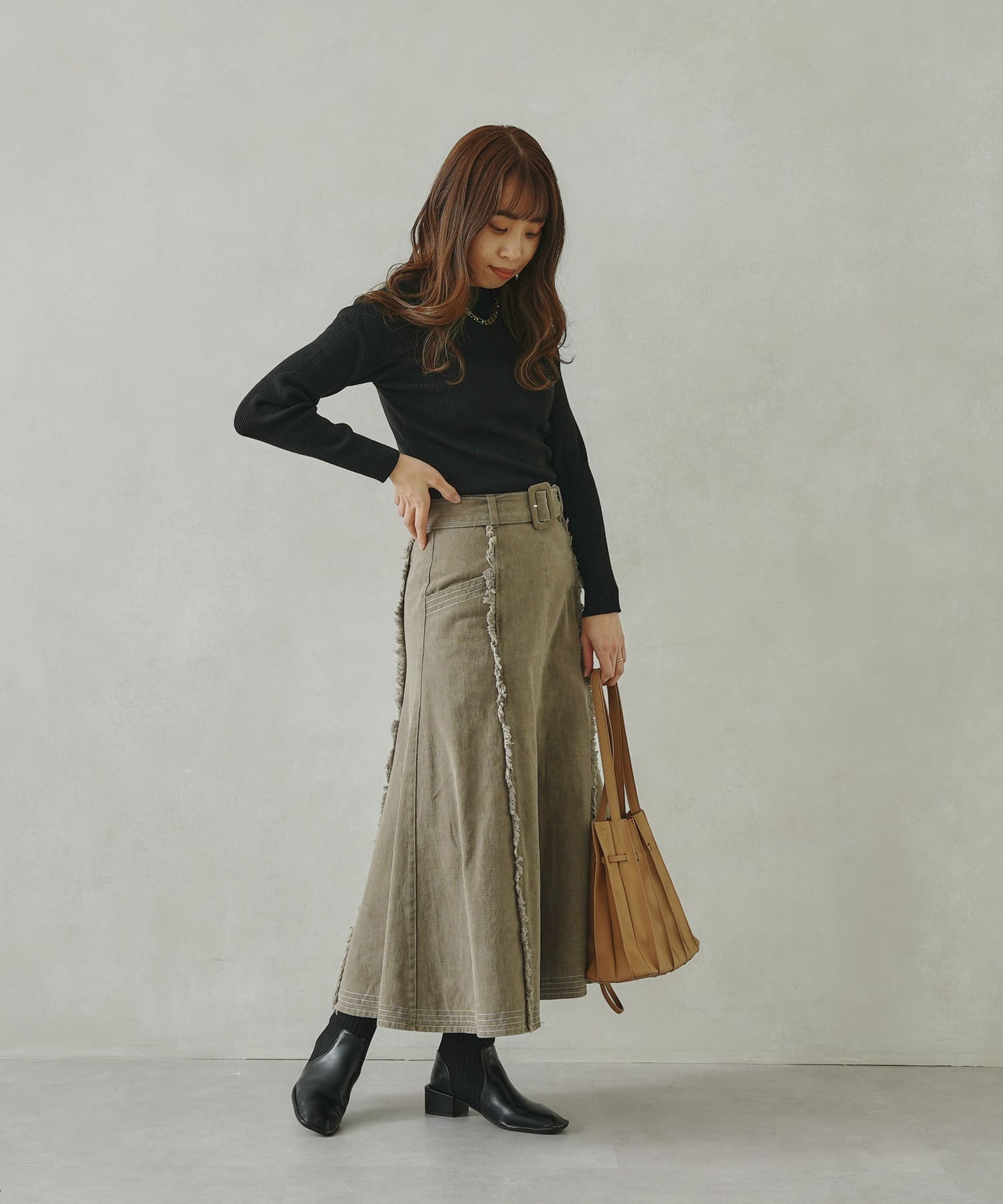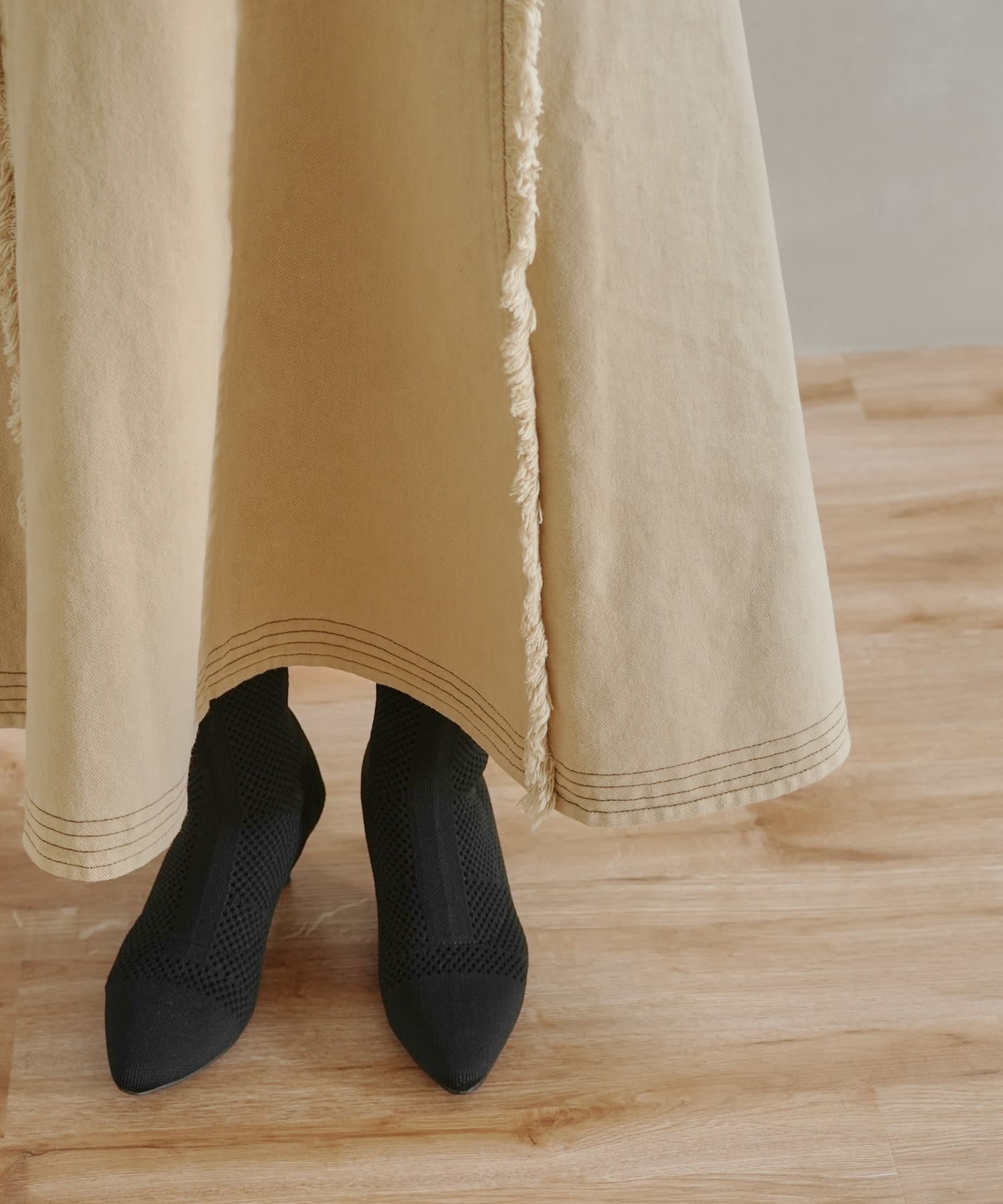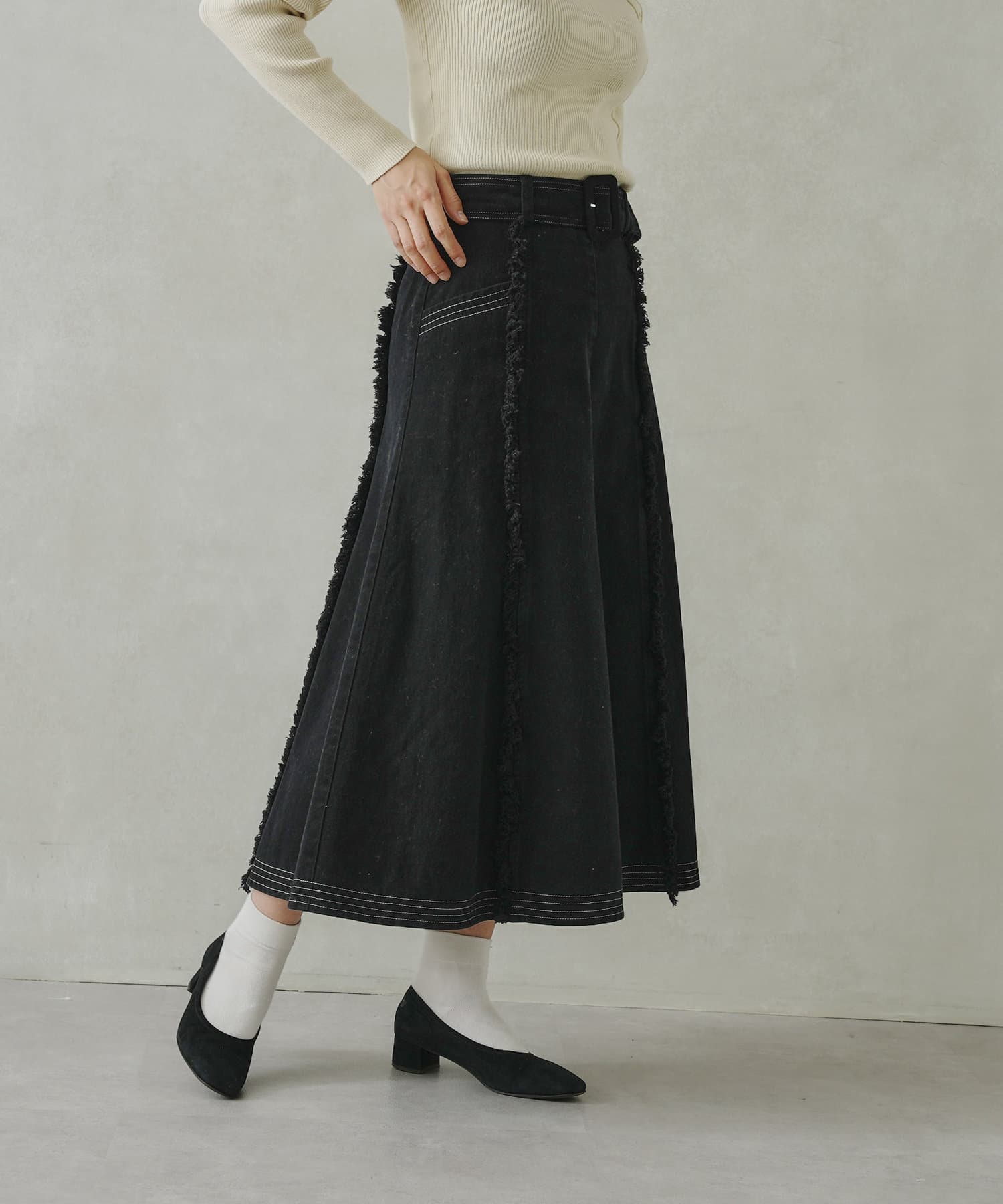 ステッチ×フリンジのが履くだけでオトナカジュアルコーデが完成するフレアスカート