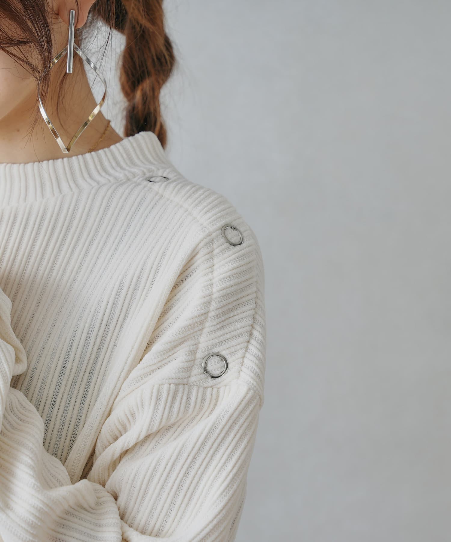 肩のボタンが程よいアクセントに 袖のボリュームがオトナフェミニンな印象を演出