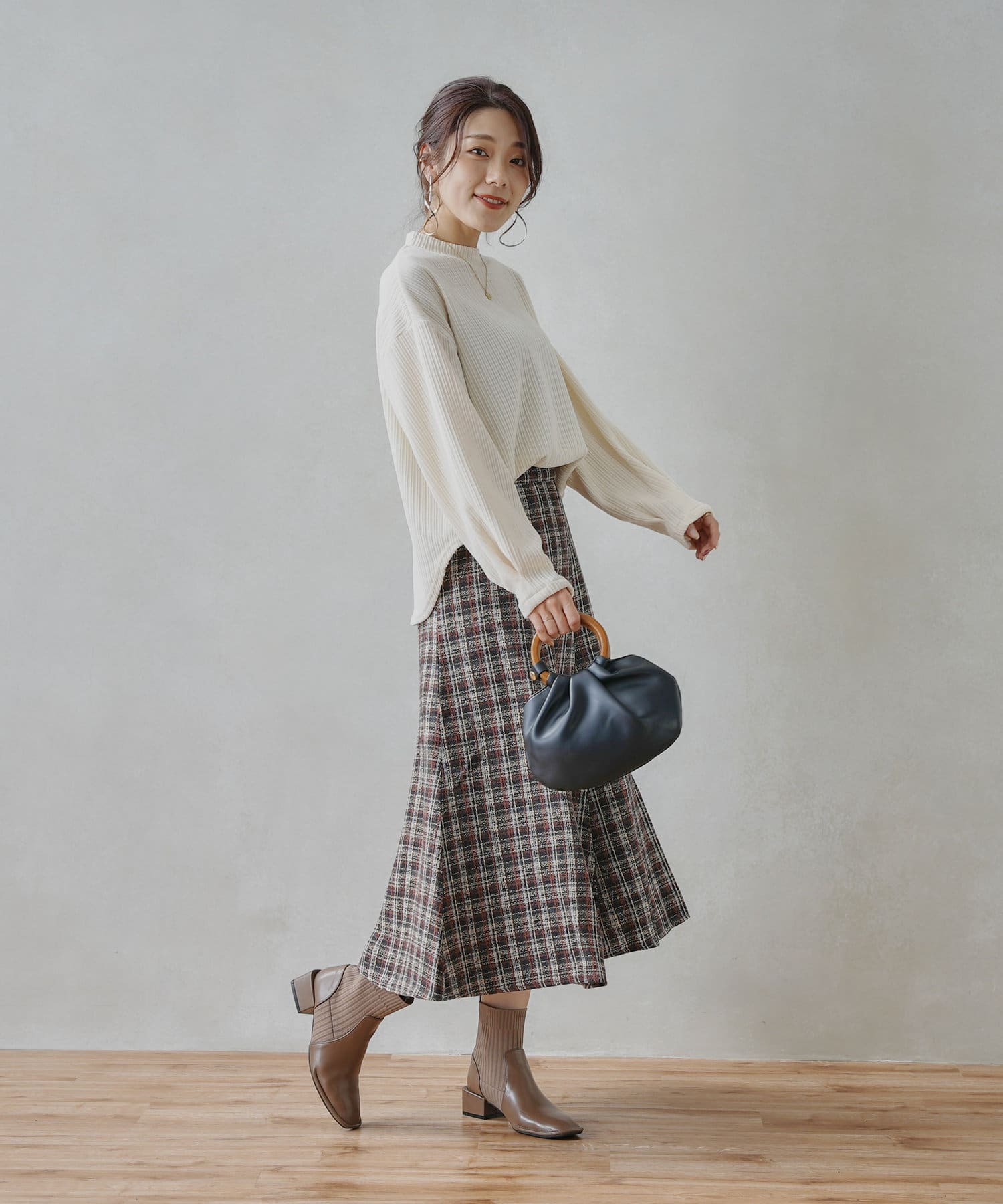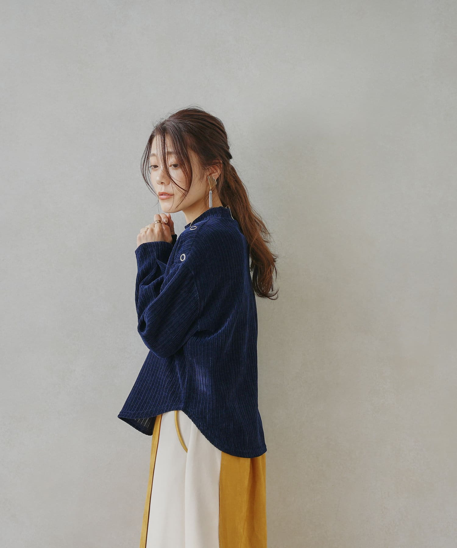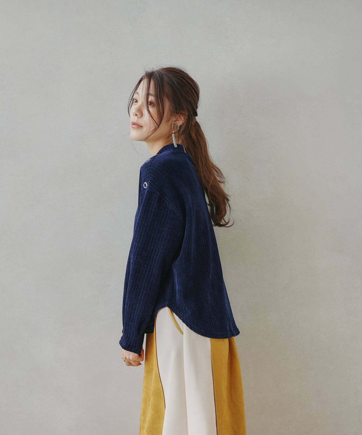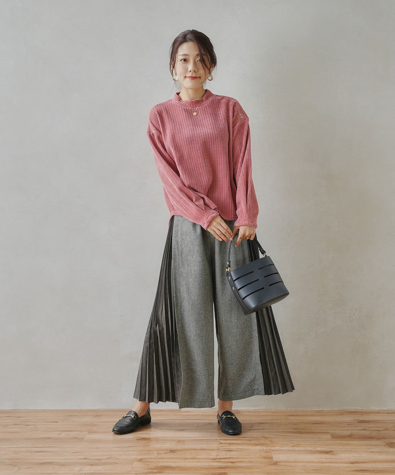 スカートでもパンツでも合わせやすく幅広いボトム合わせて頂けます。
