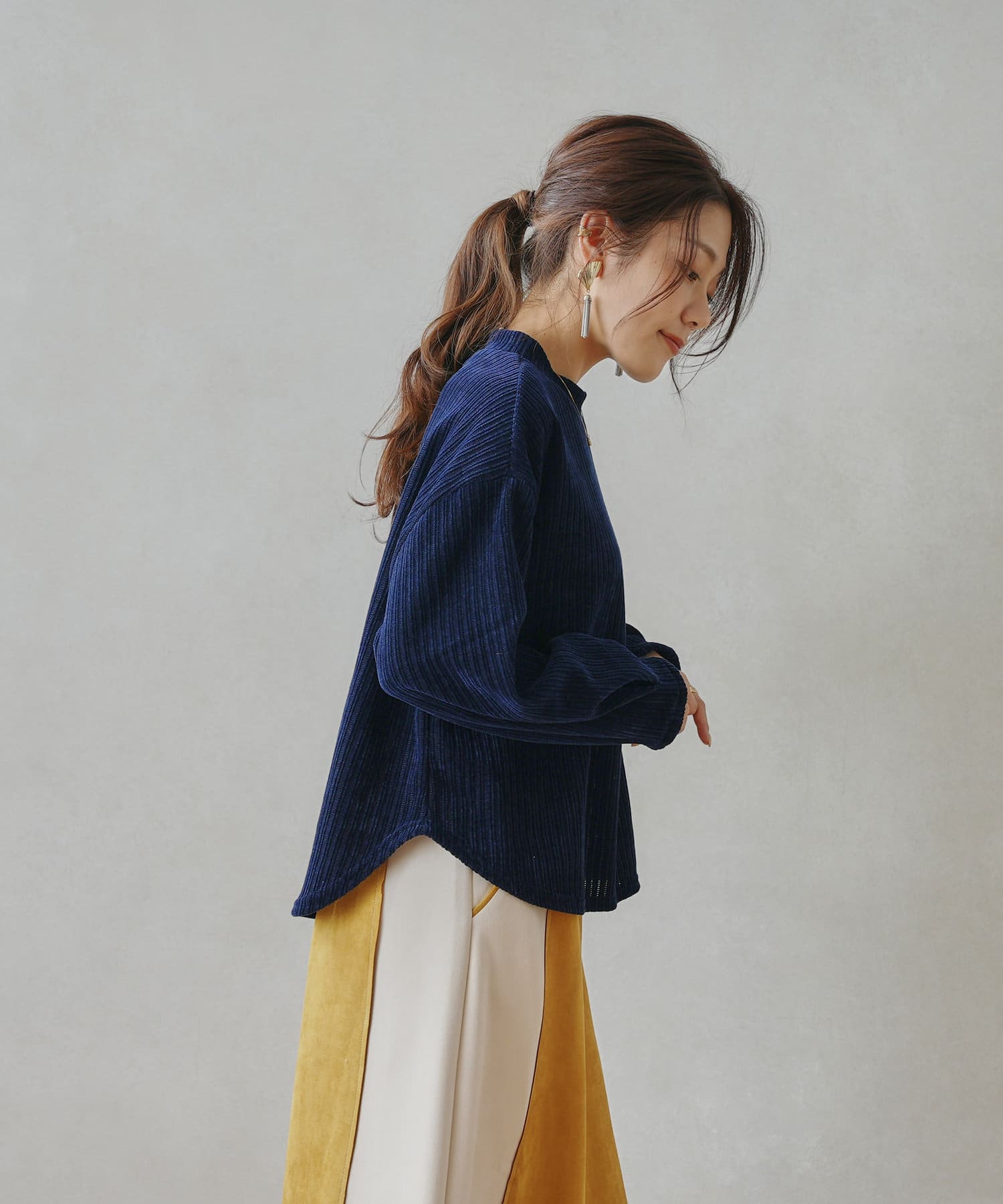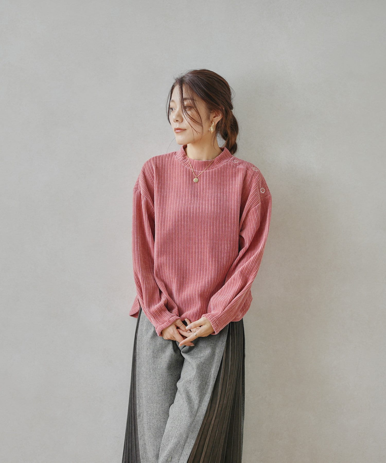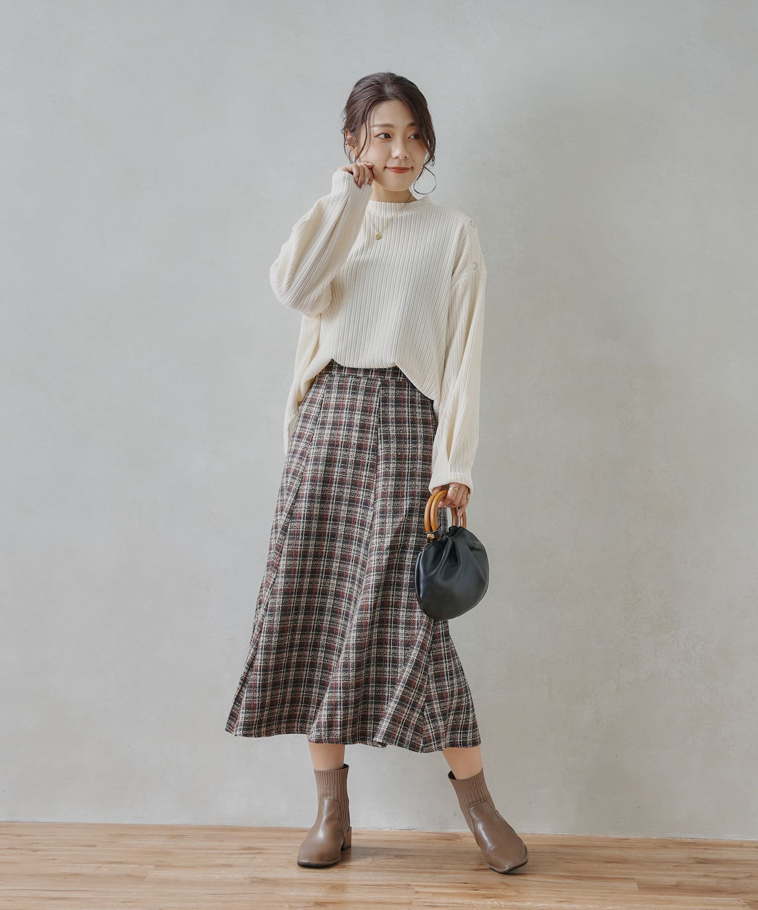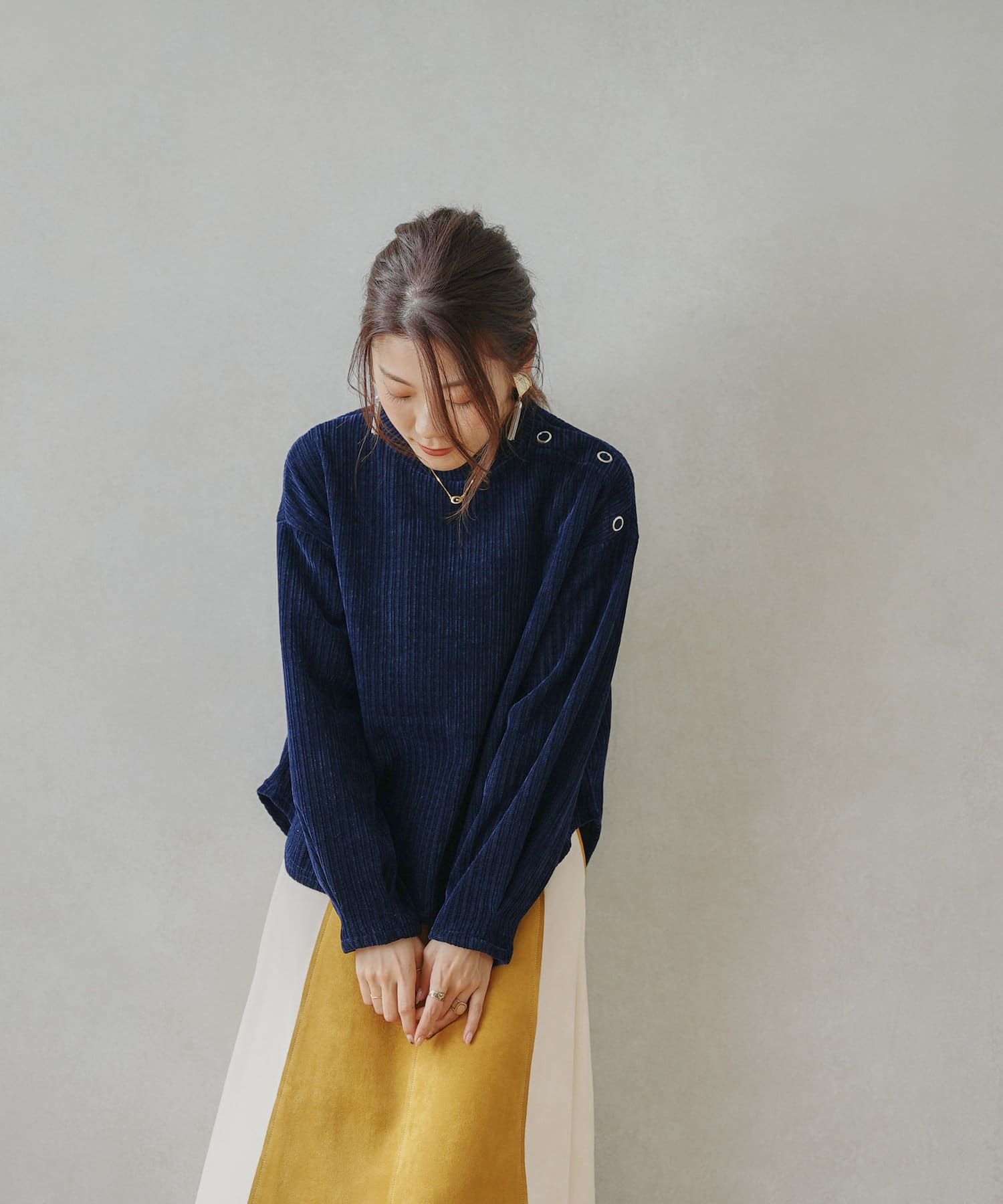スカートでもパンツでも合わせやすく幅広いボトム合わせて頂けます。