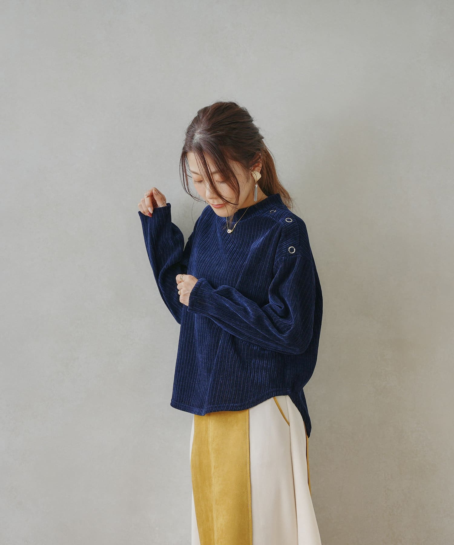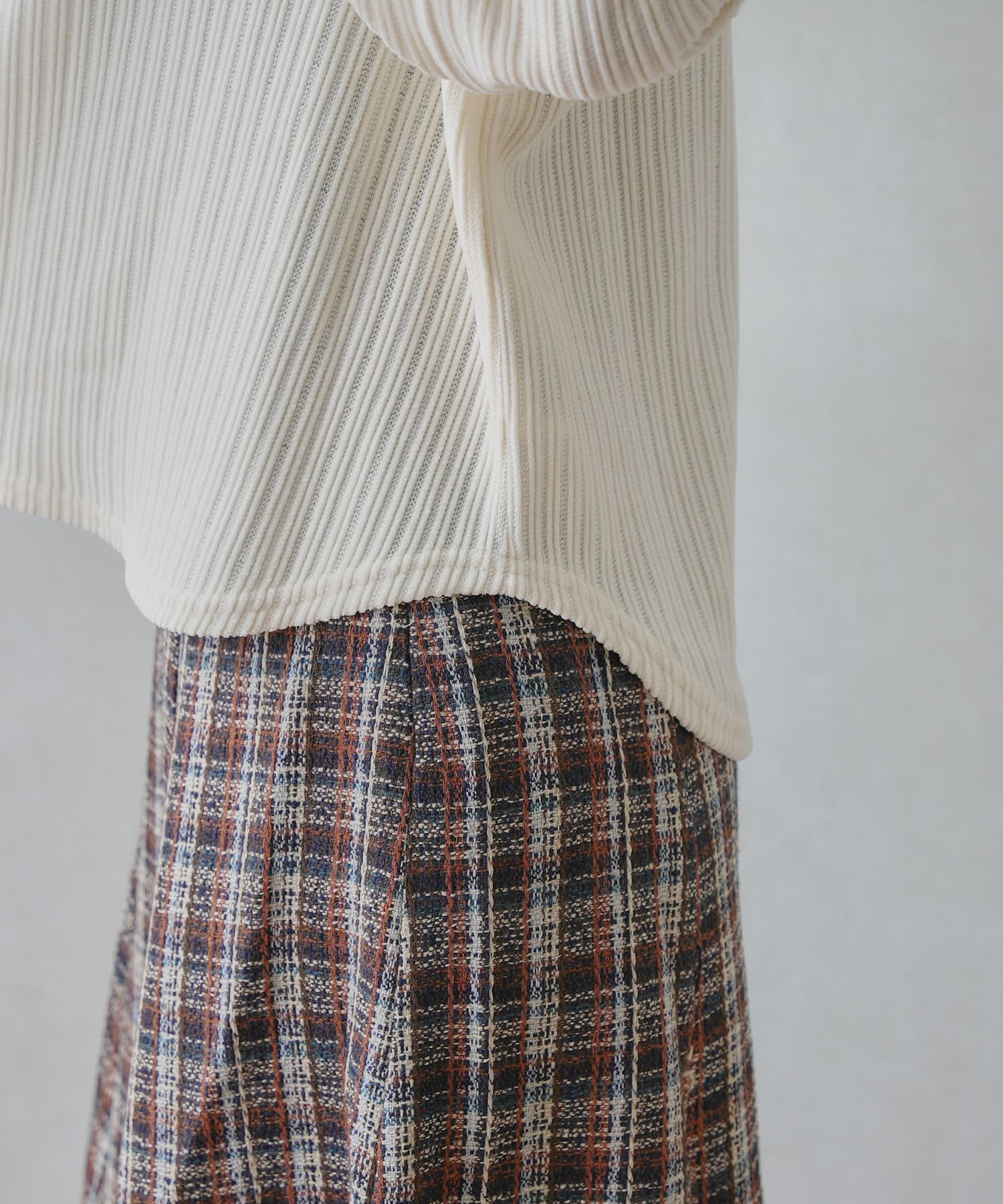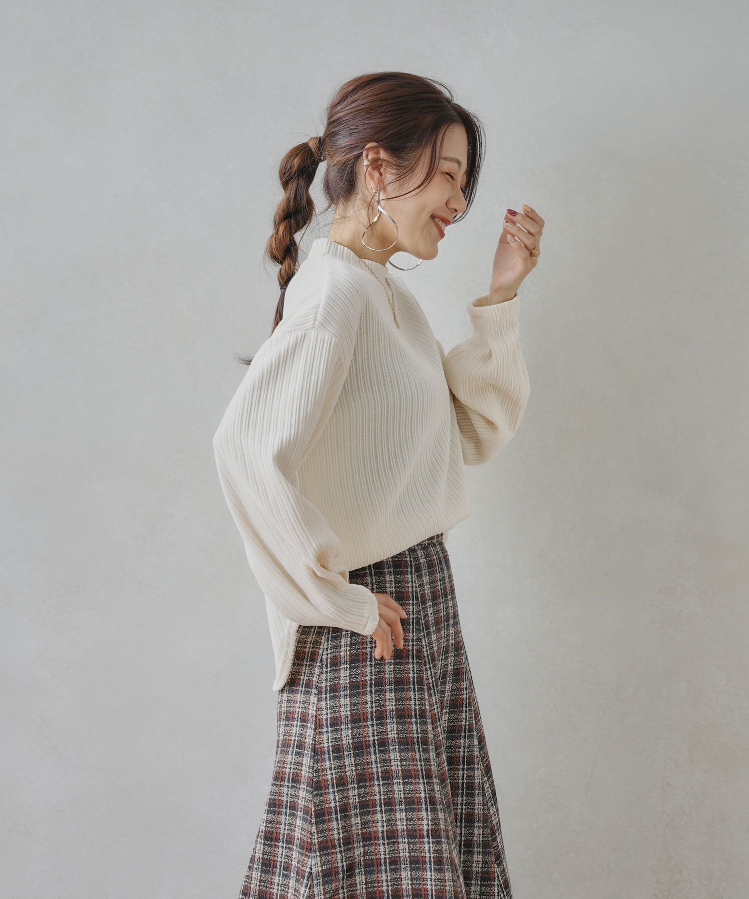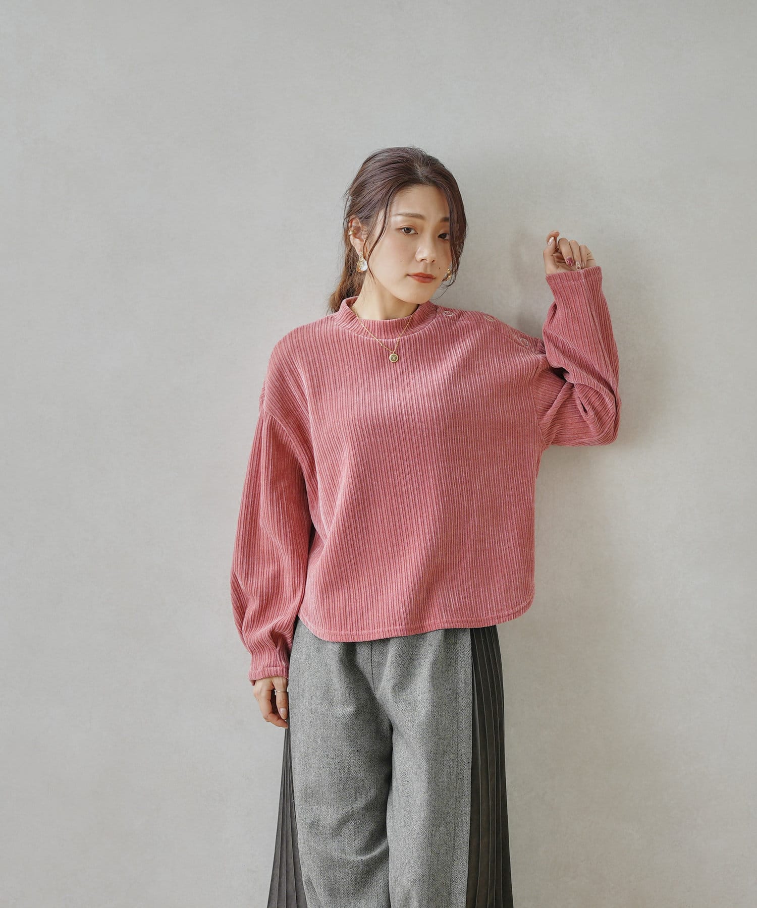スカートでもパンツでも合わせやすく幅広いボトム合わせて頂けます。