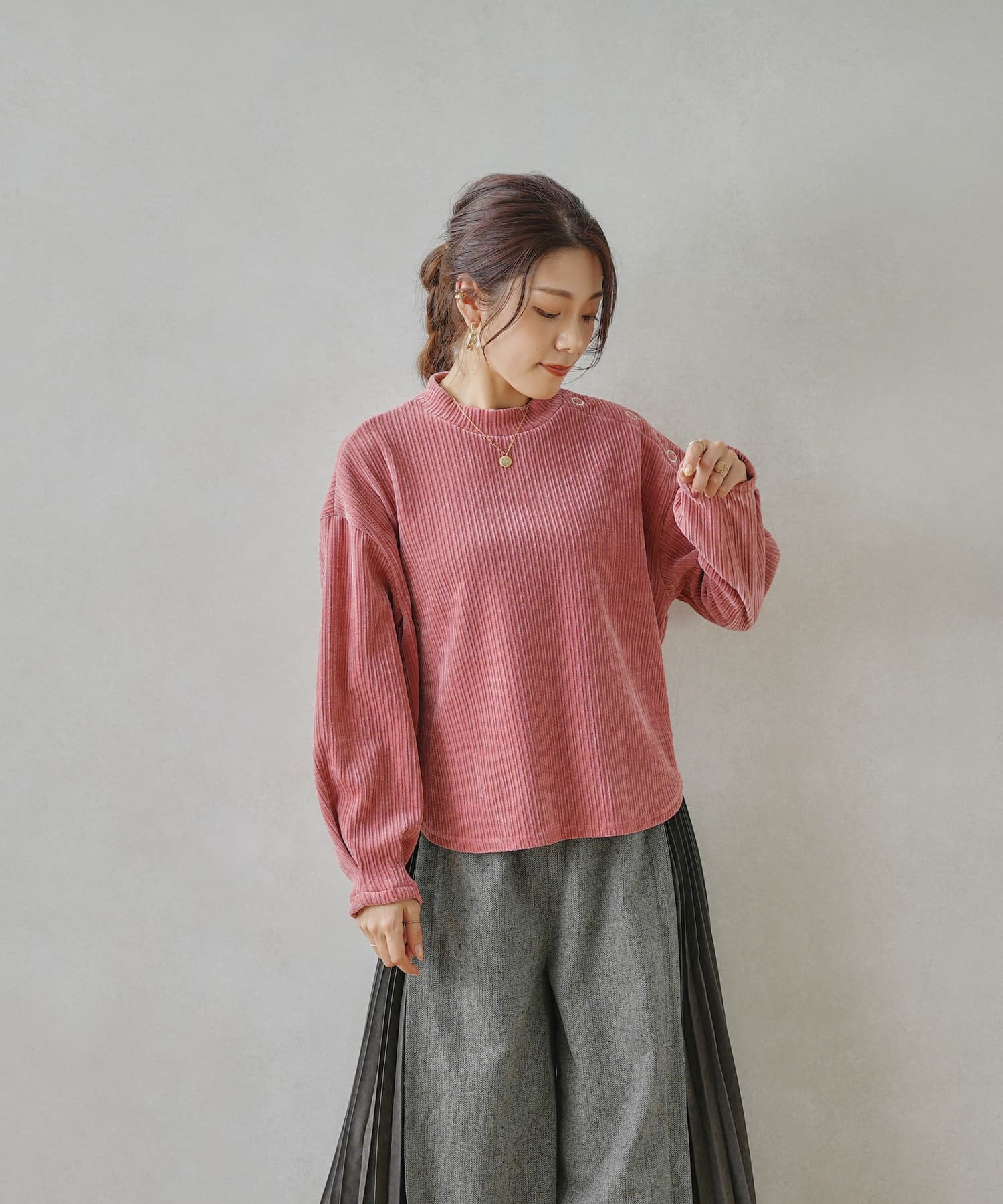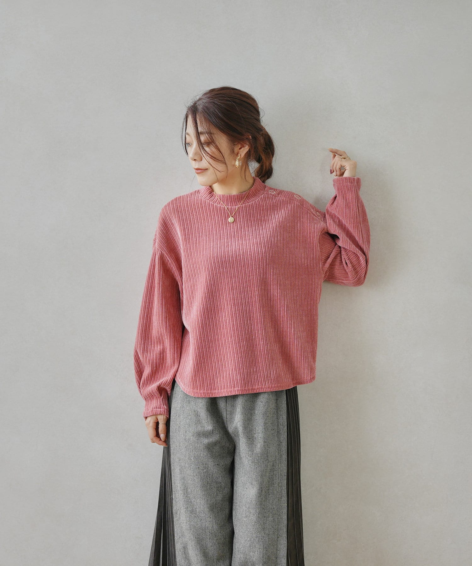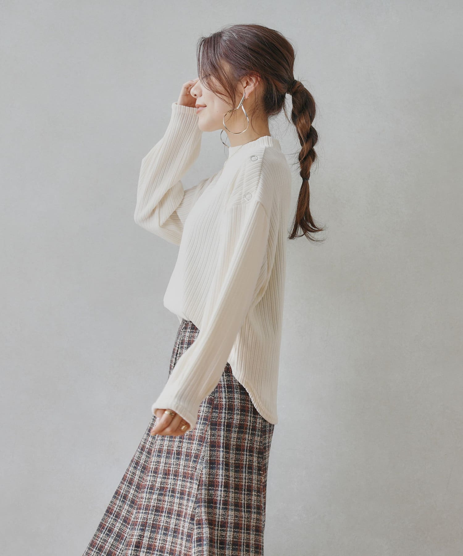 ・肩に施された大きめなボタンが程よいアクセントを作ってくれます。