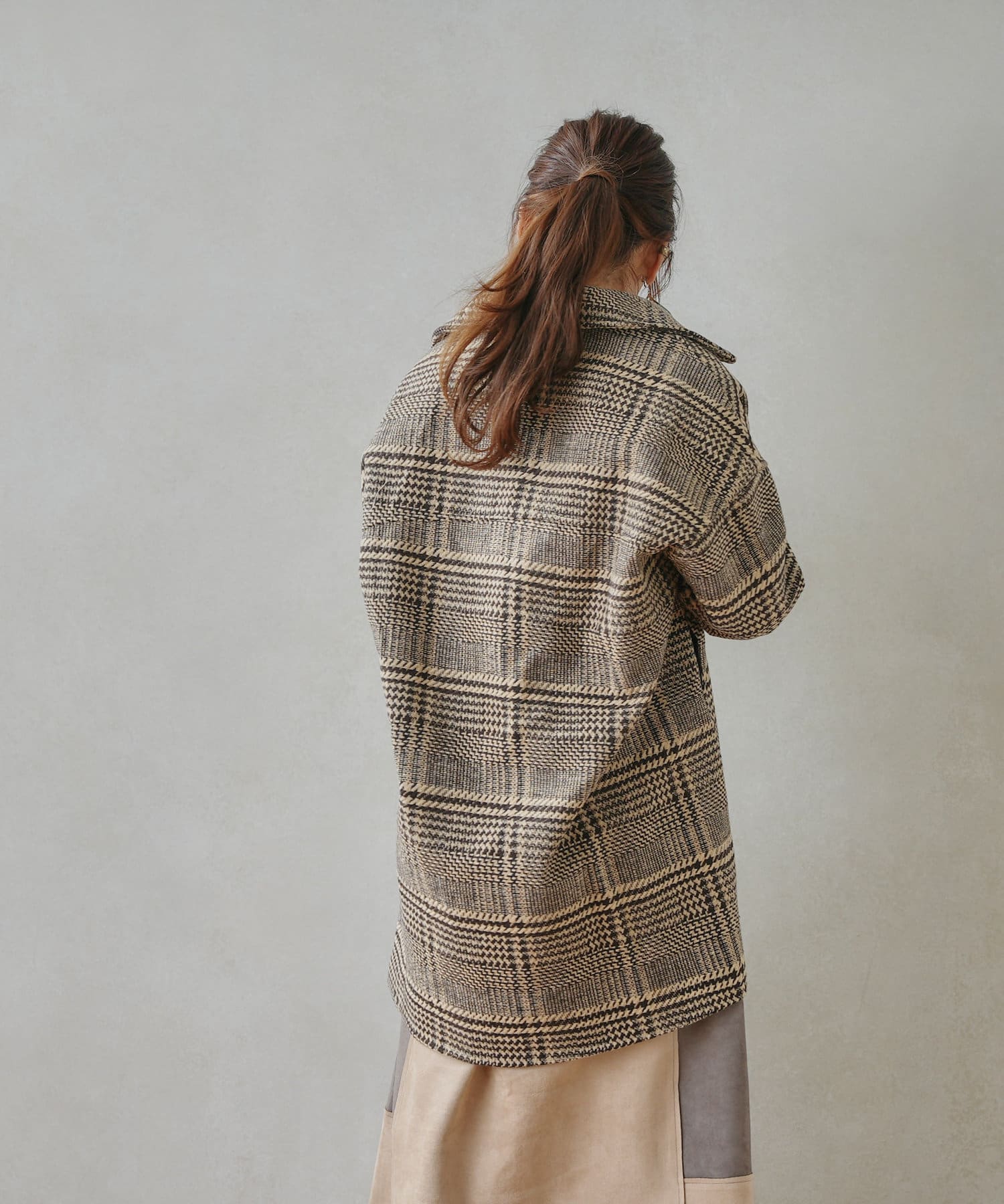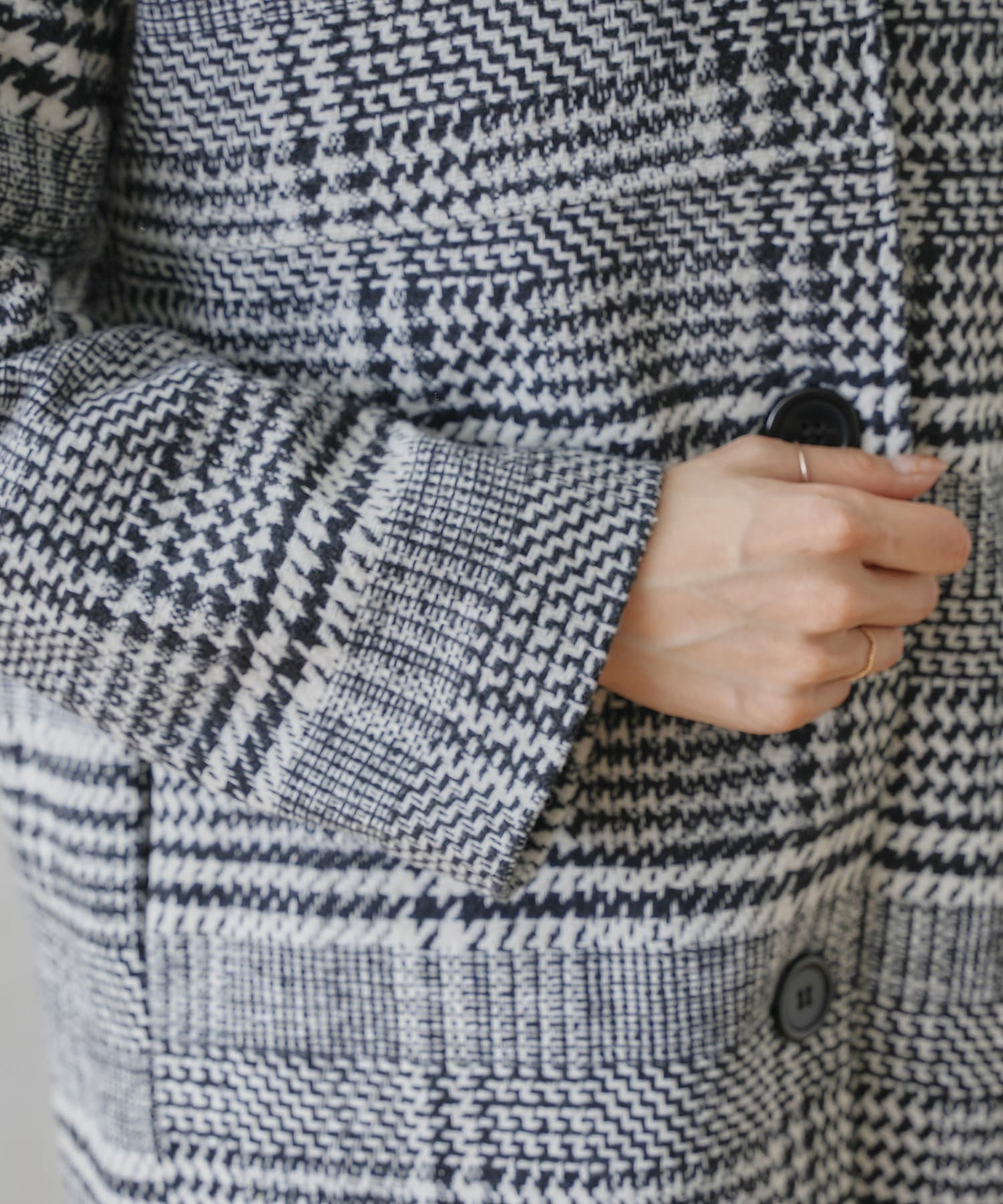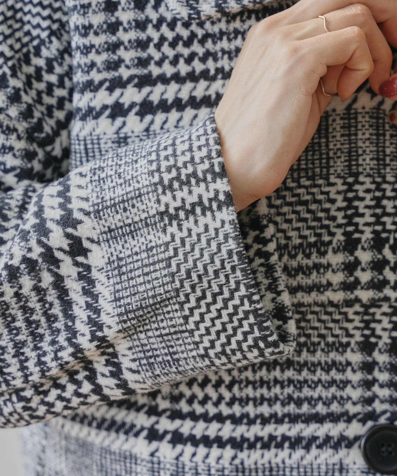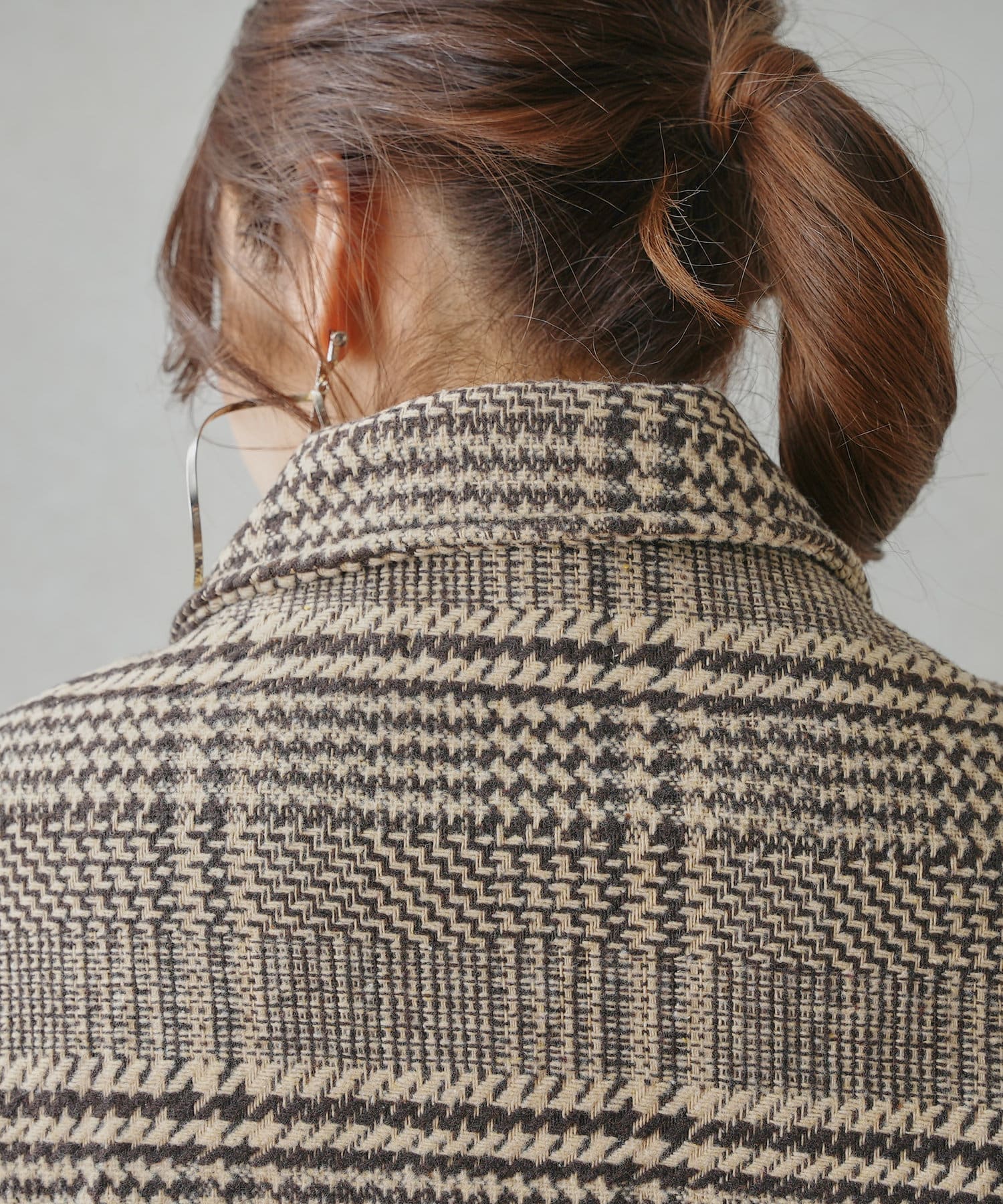 低身長さんも着用しやすいミドル丈!!グレンチェック柄が存在感をプラスしてくれるジャケット