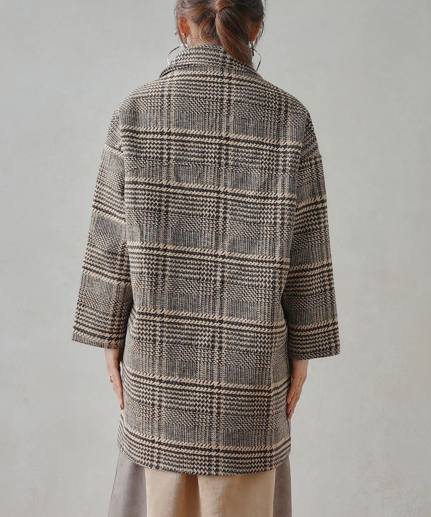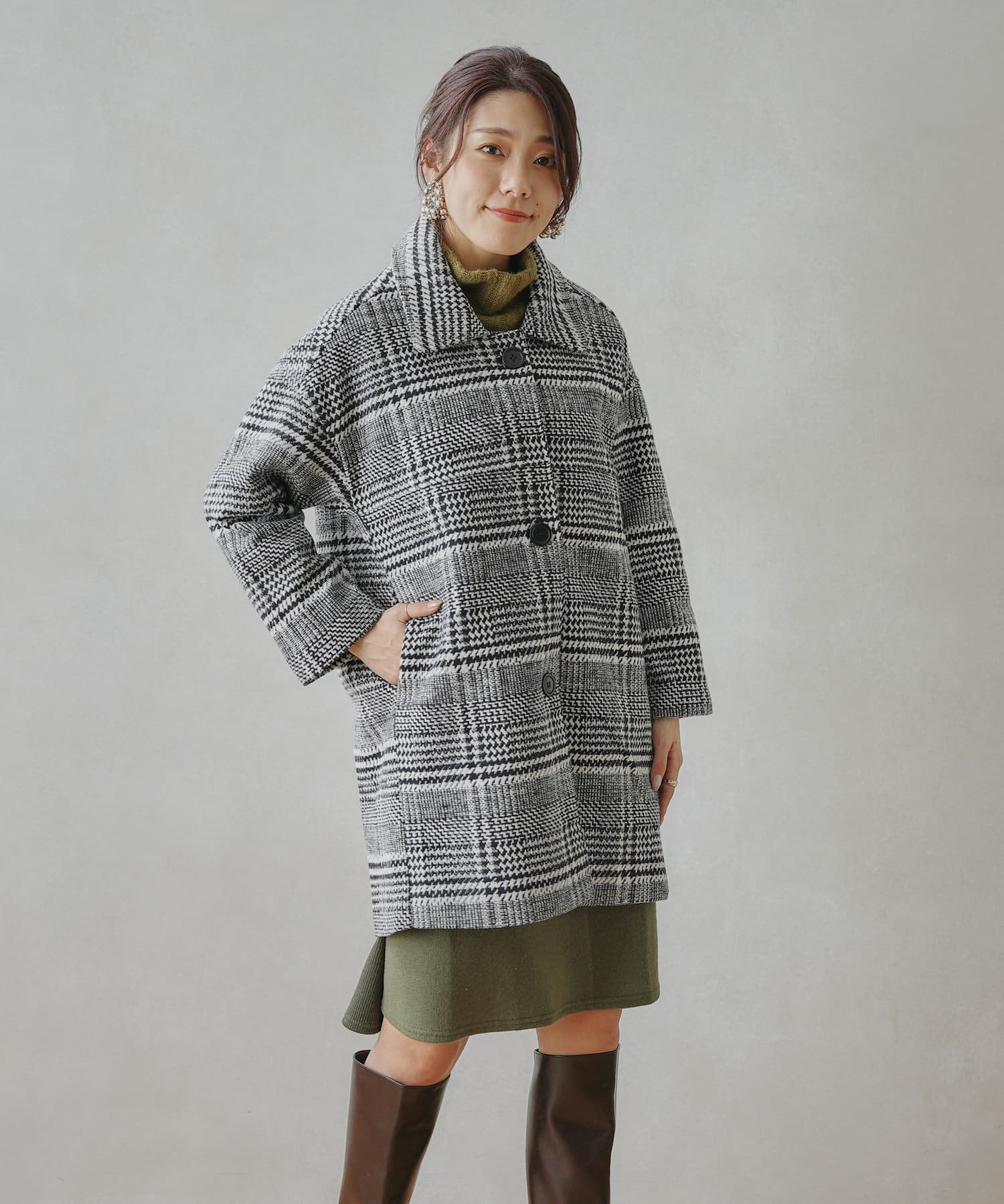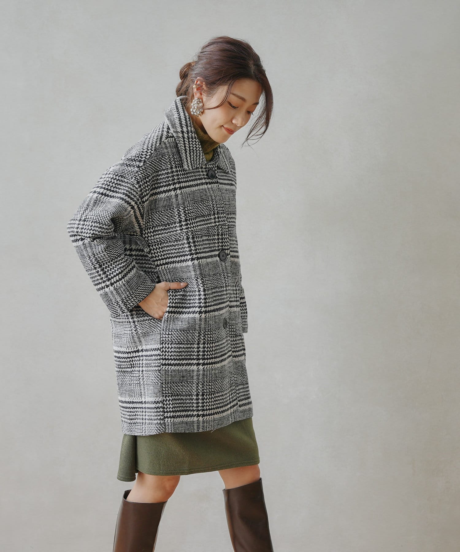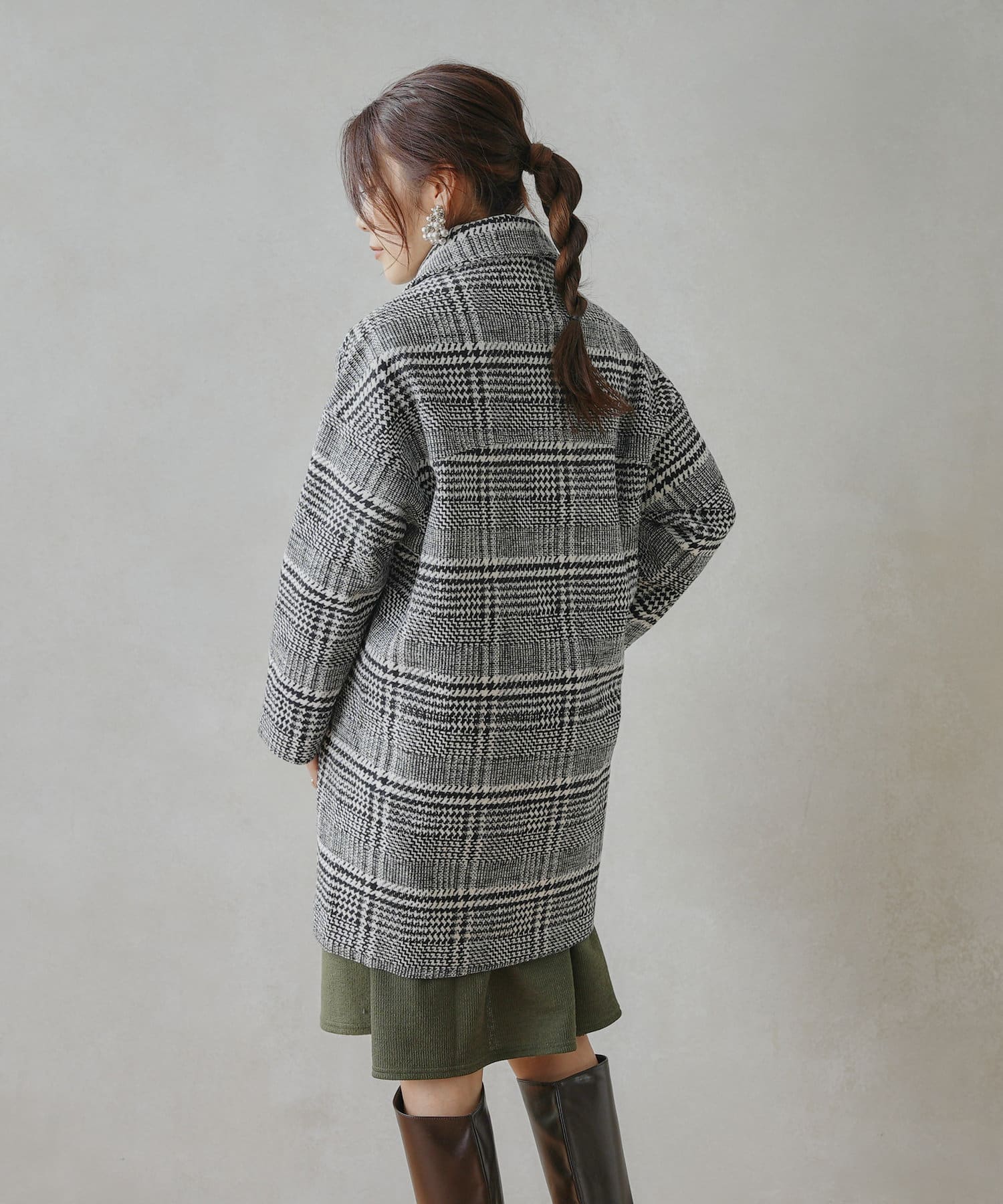 低身長さんも着用しやすいミドル丈!!グレンチェック柄が存在感をプラスしてくれるジャケット