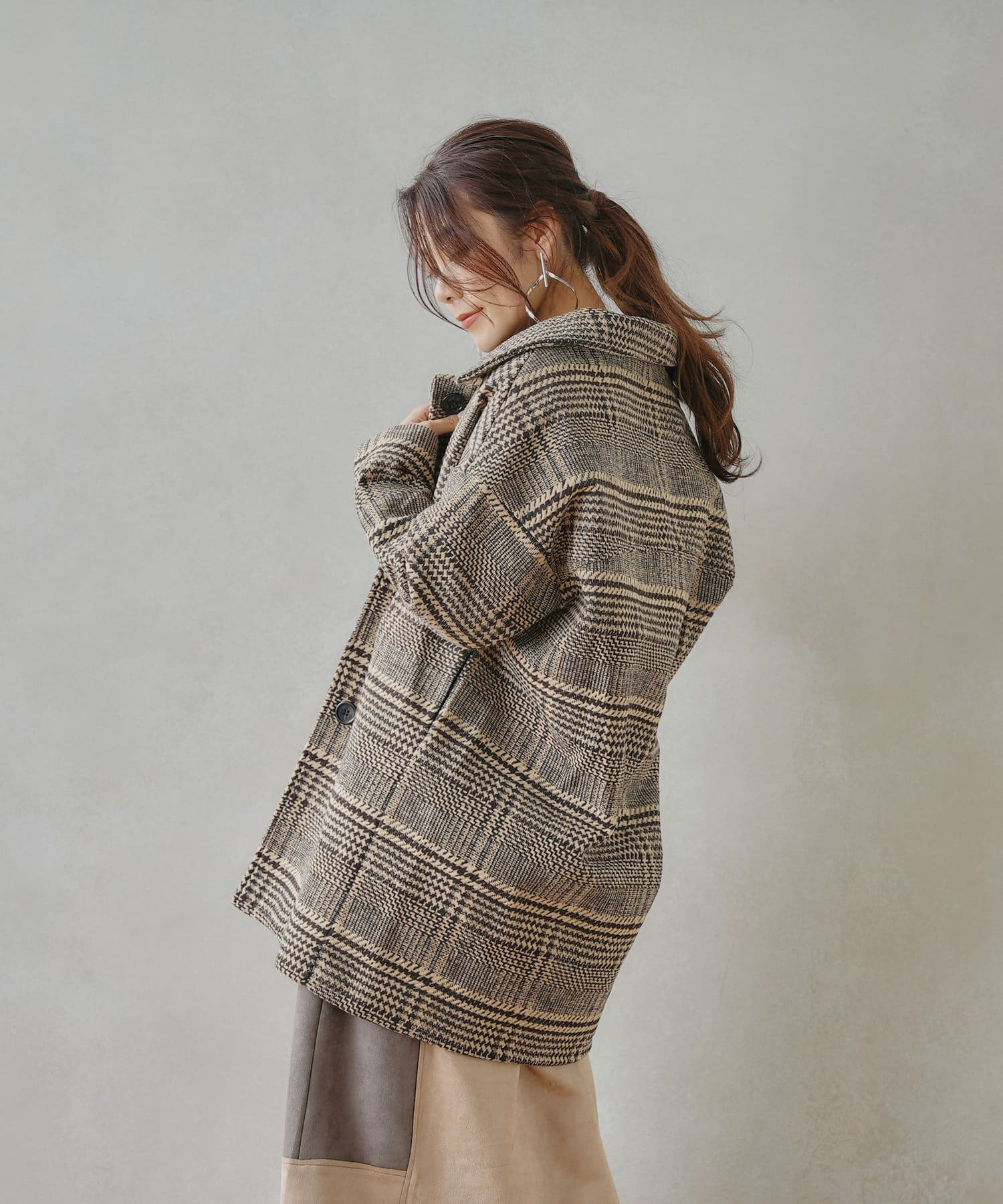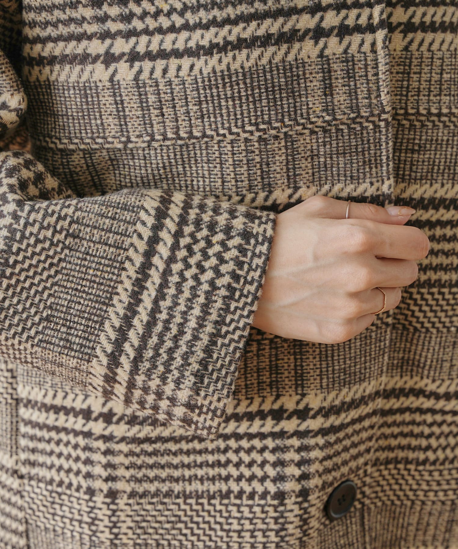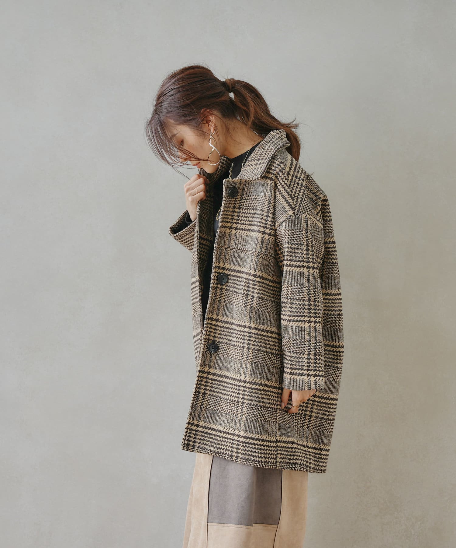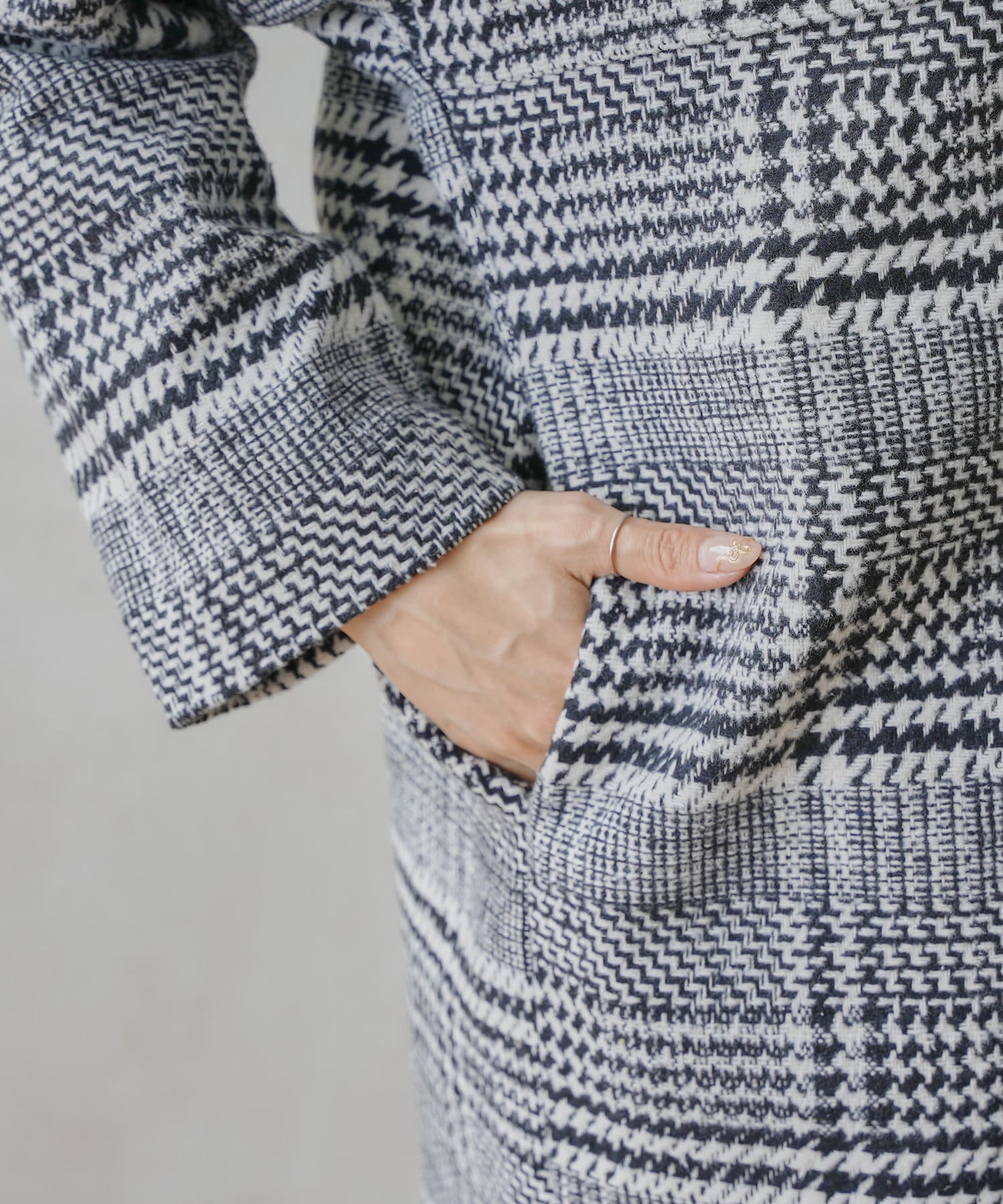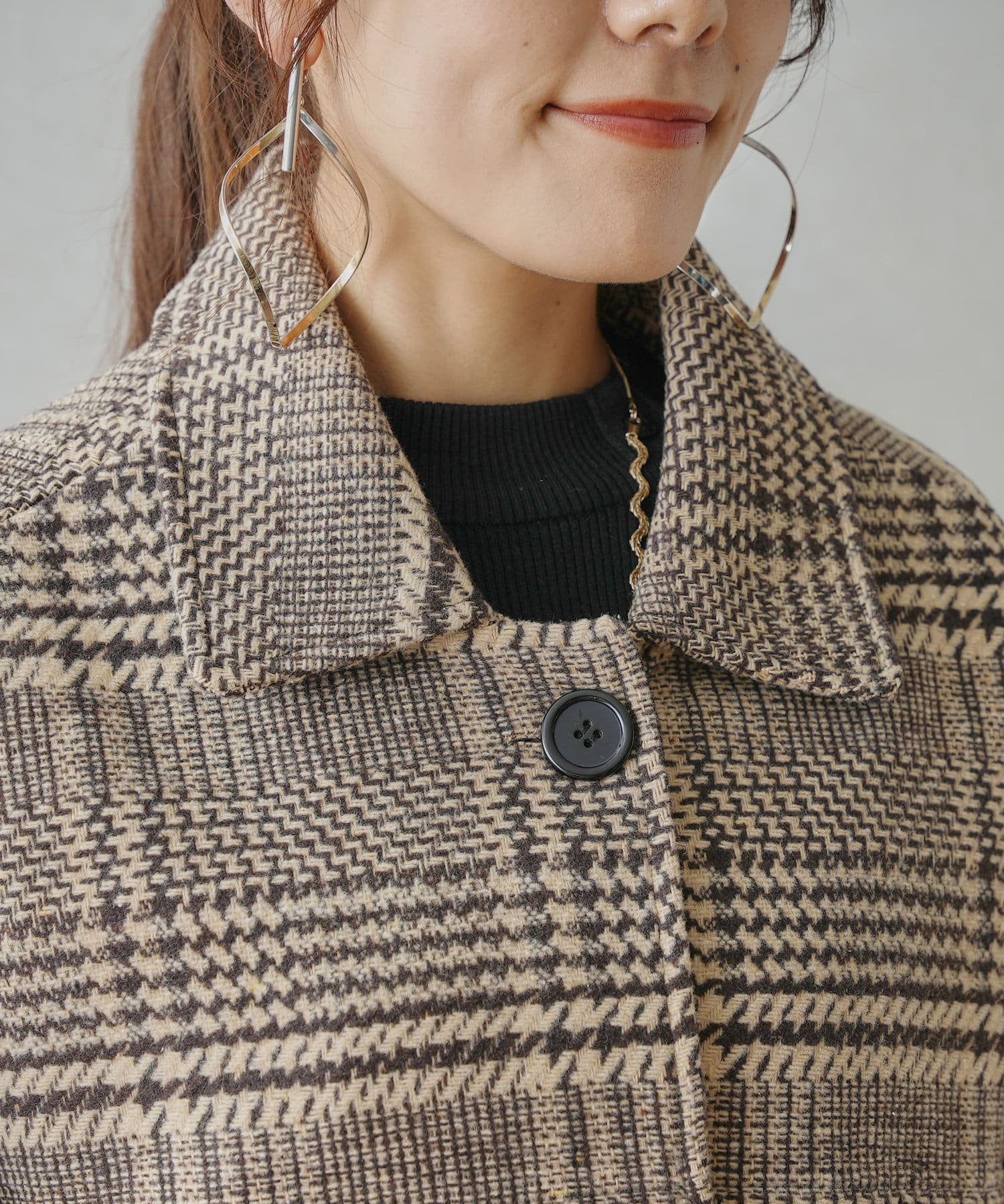 低身長さんも着用しやすいミドル丈!!グレンチェック柄が存在感をプラスしてくれるジャケット