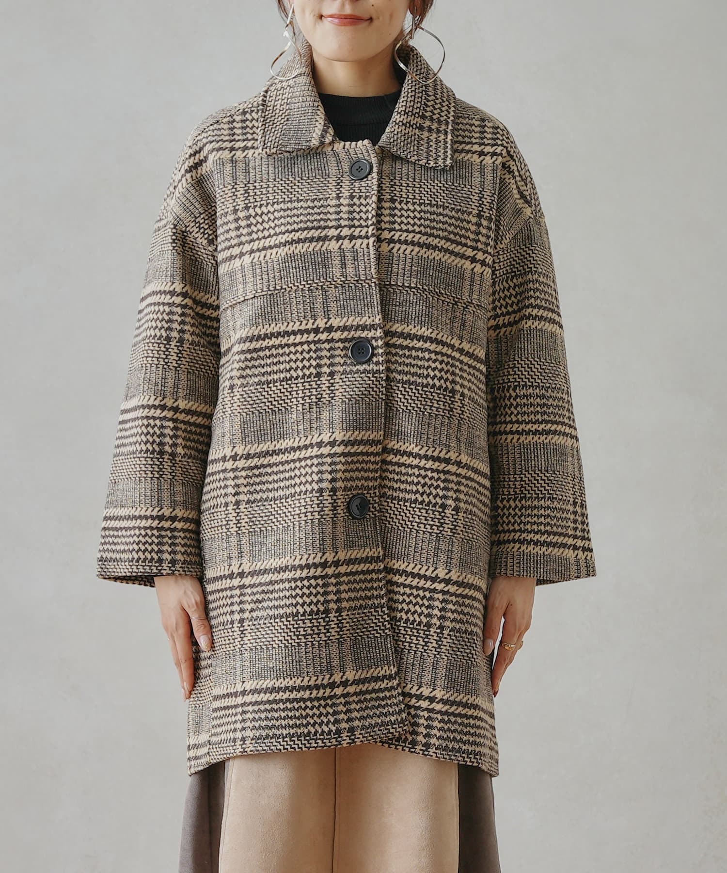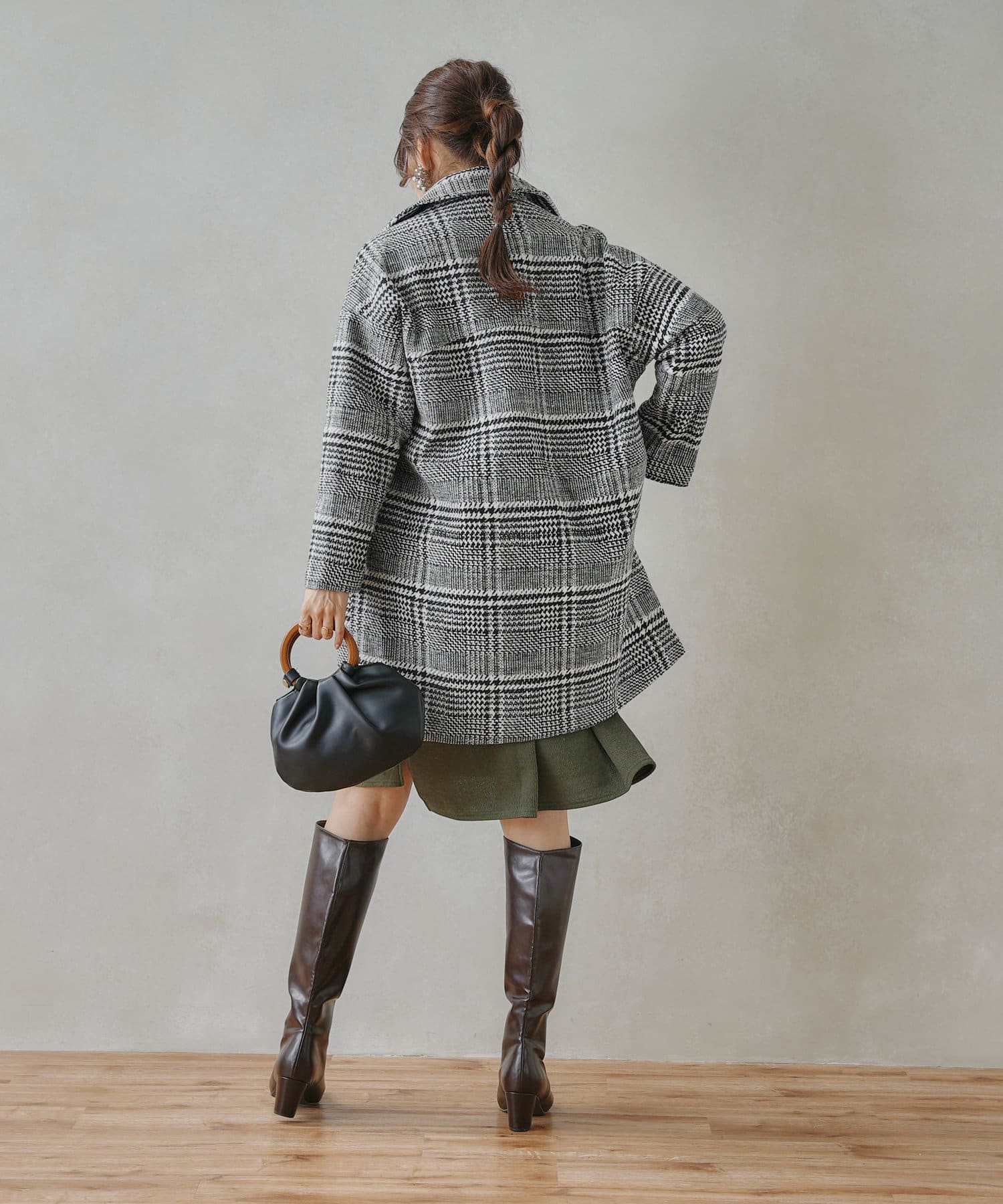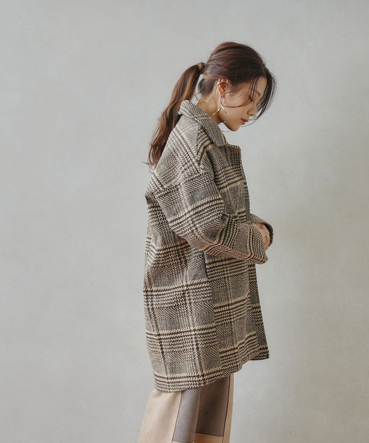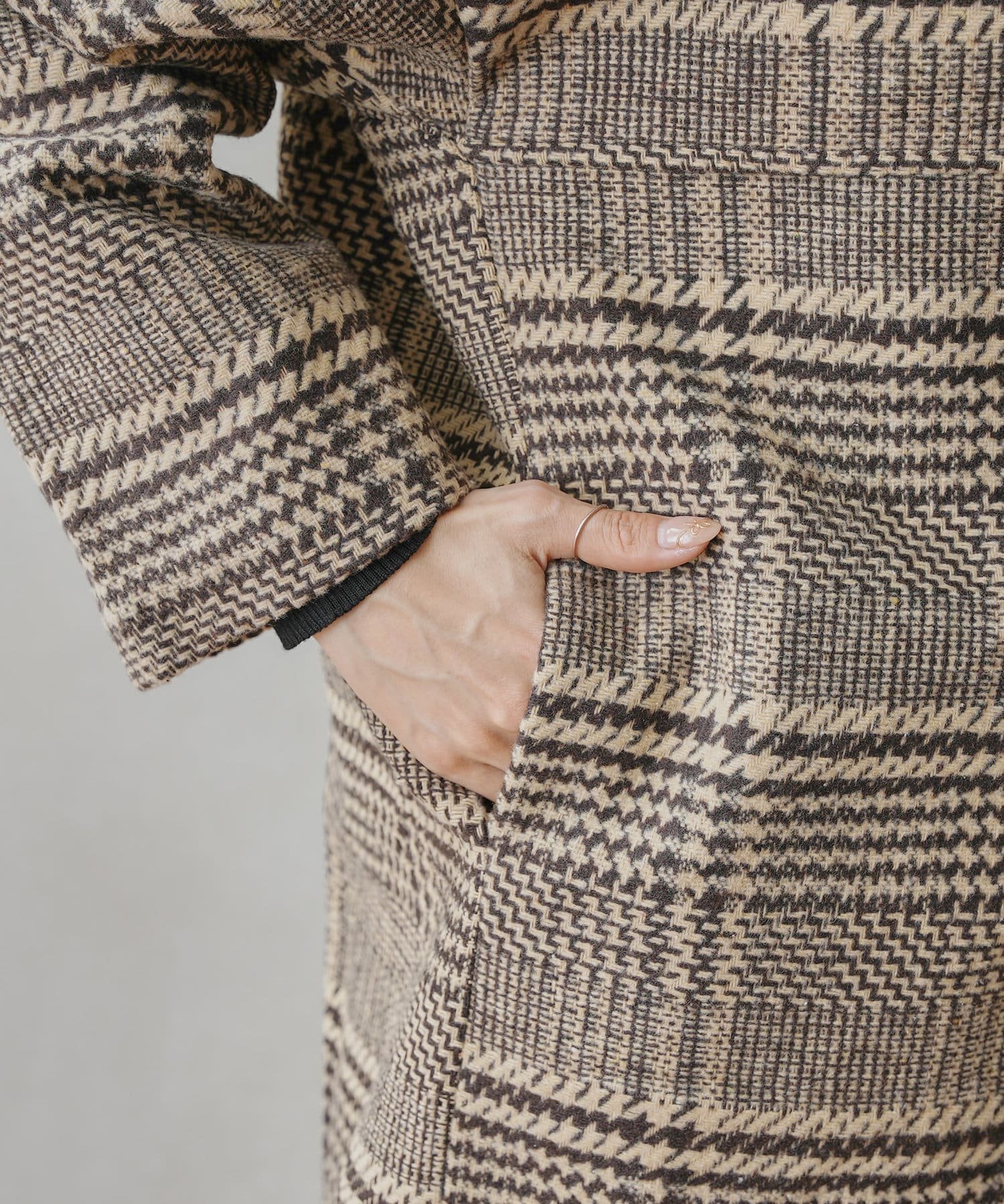 低身長さんも着用しやすいミドル丈!!グレンチェック柄が存在感をプラスしてくれるジャケット