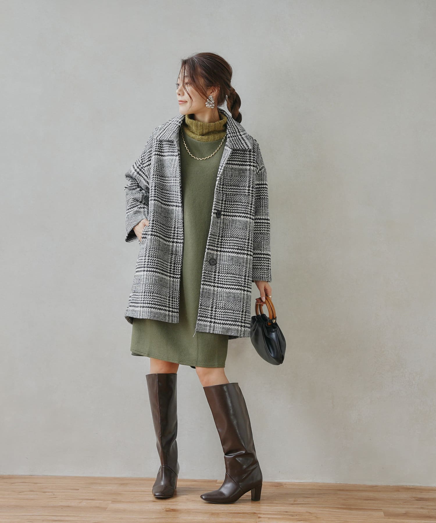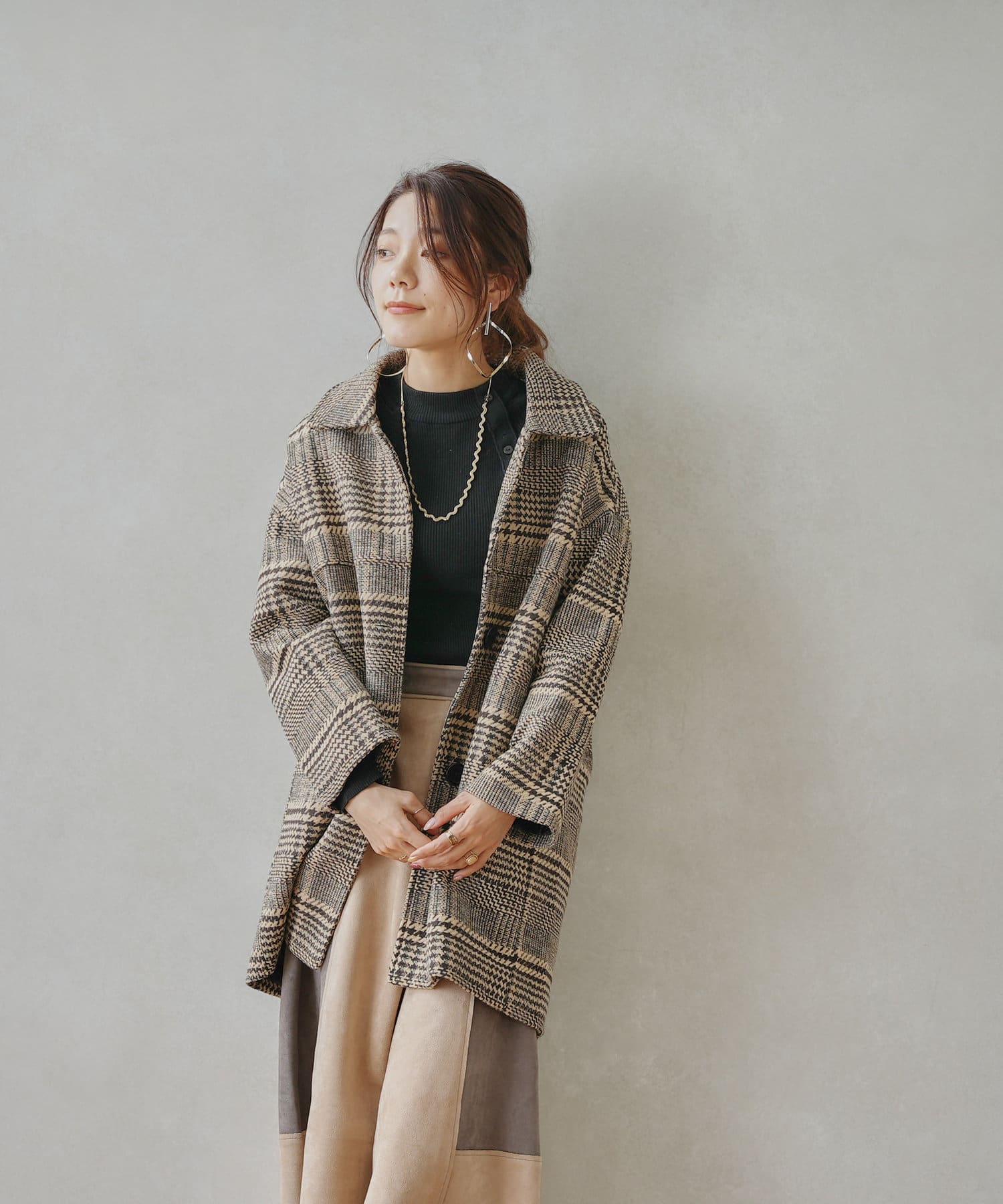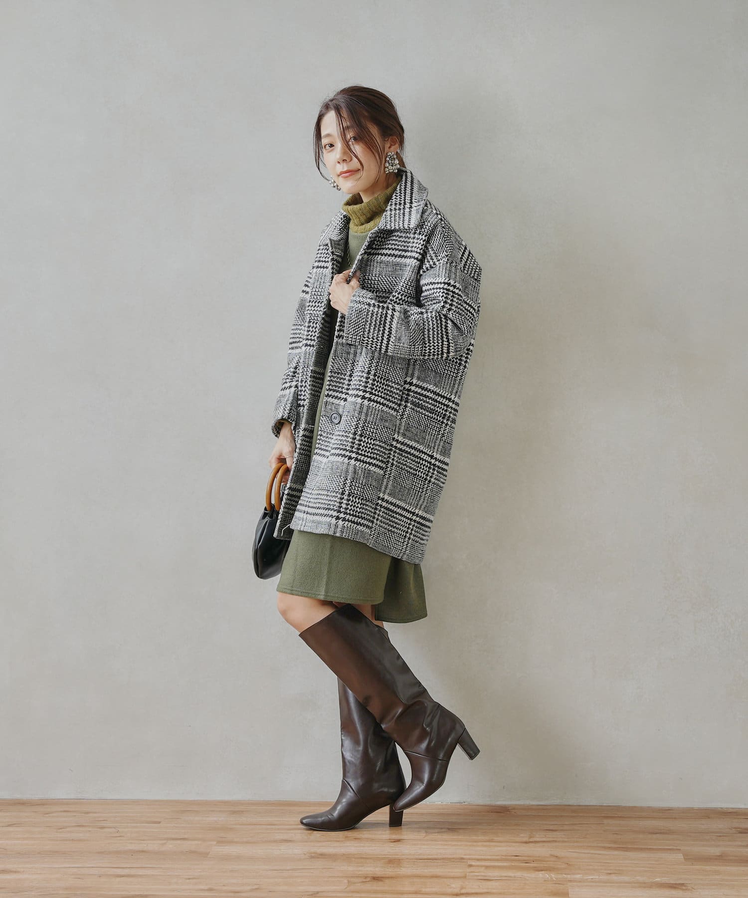 ・グレンチェック柄で派手になりすぎず、こなれ感がプラスされる1着です。