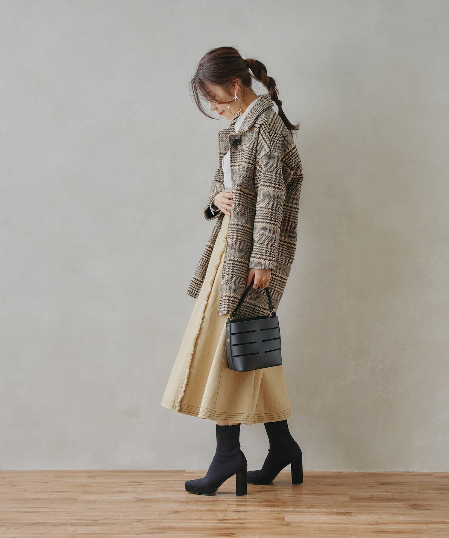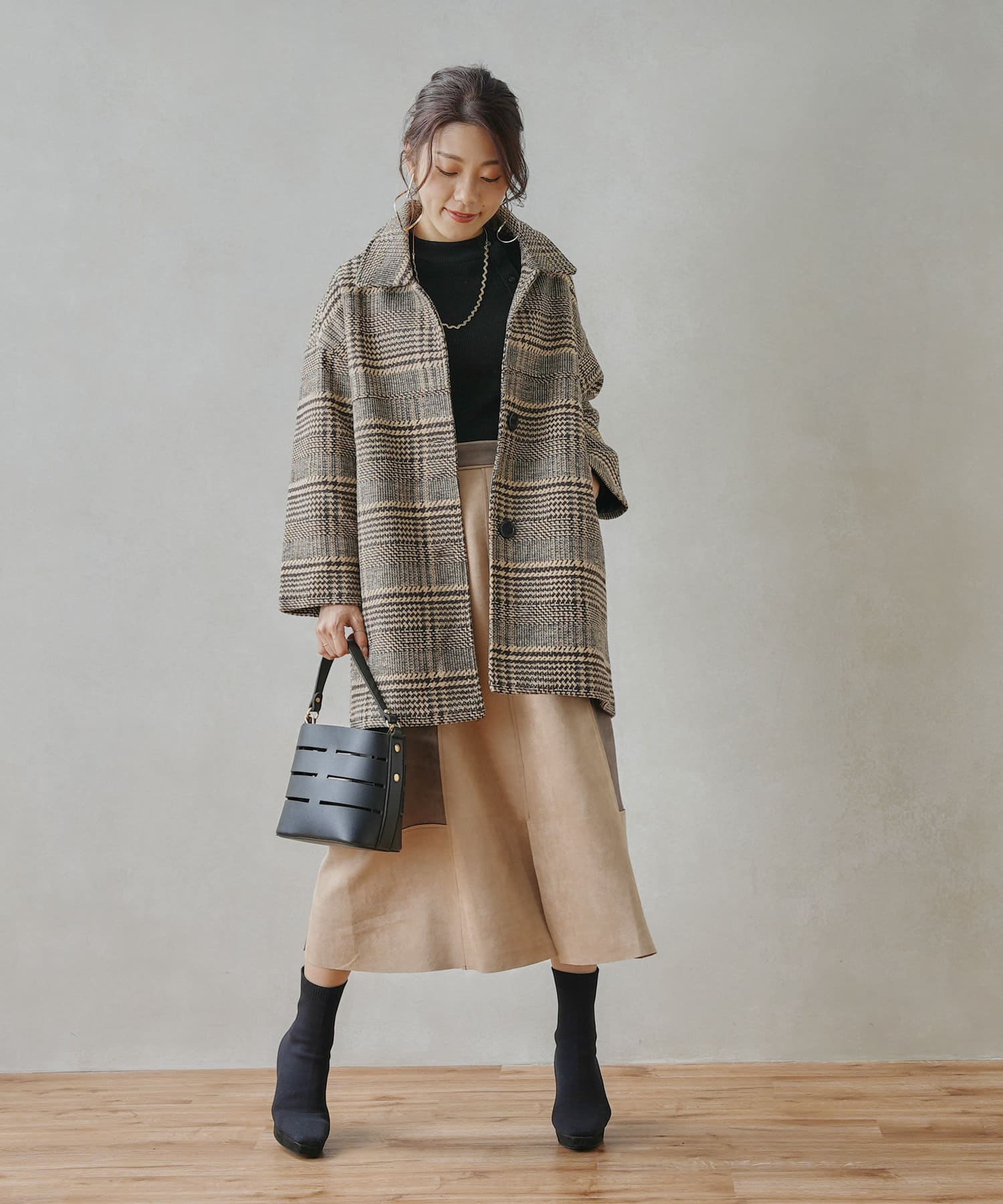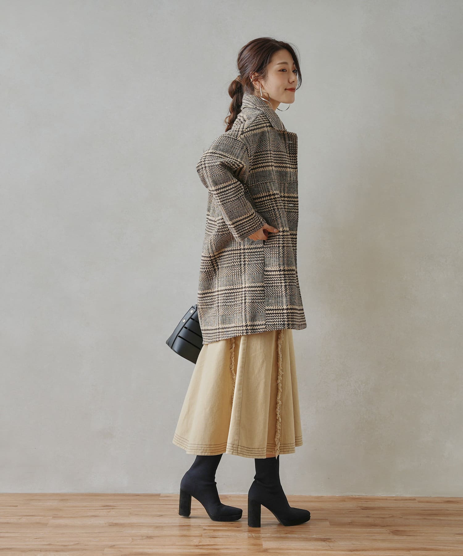 ・グレンチェック柄で派手になりすぎず、こなれ感がプラスされる1着です。
