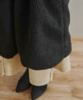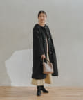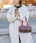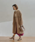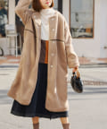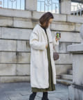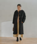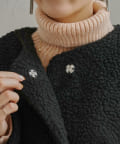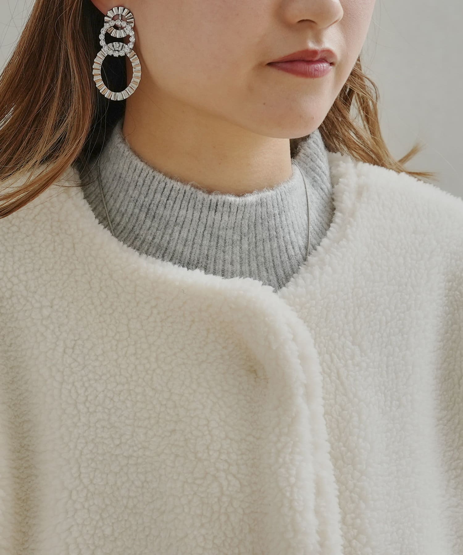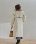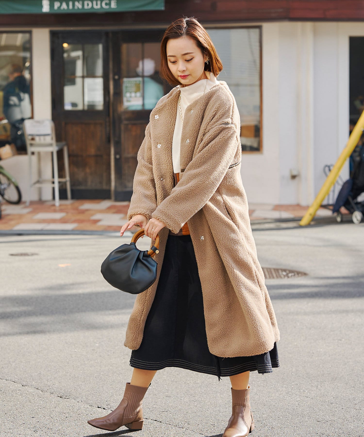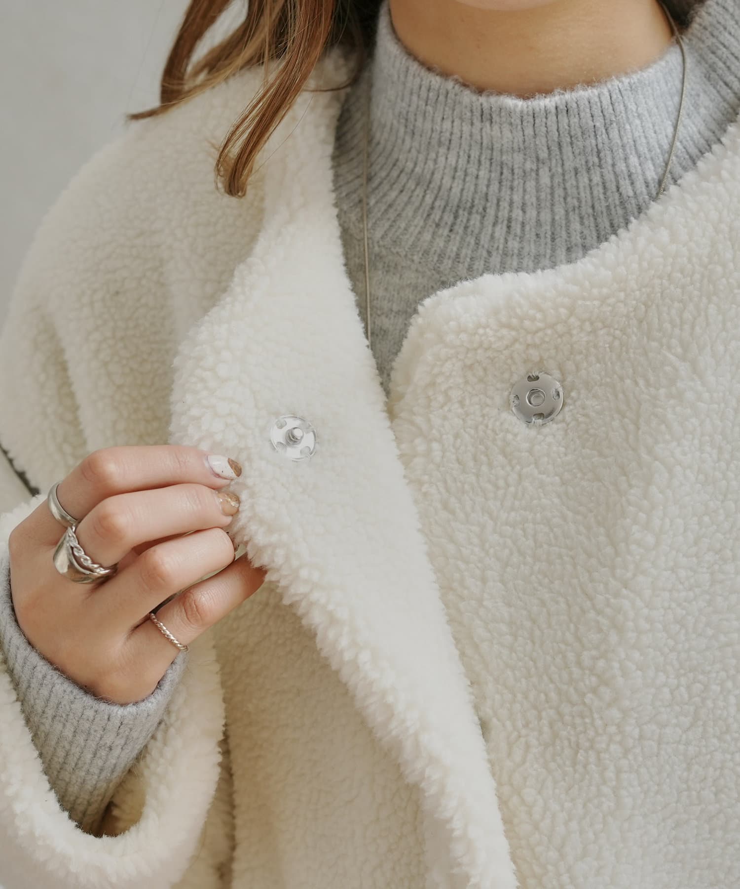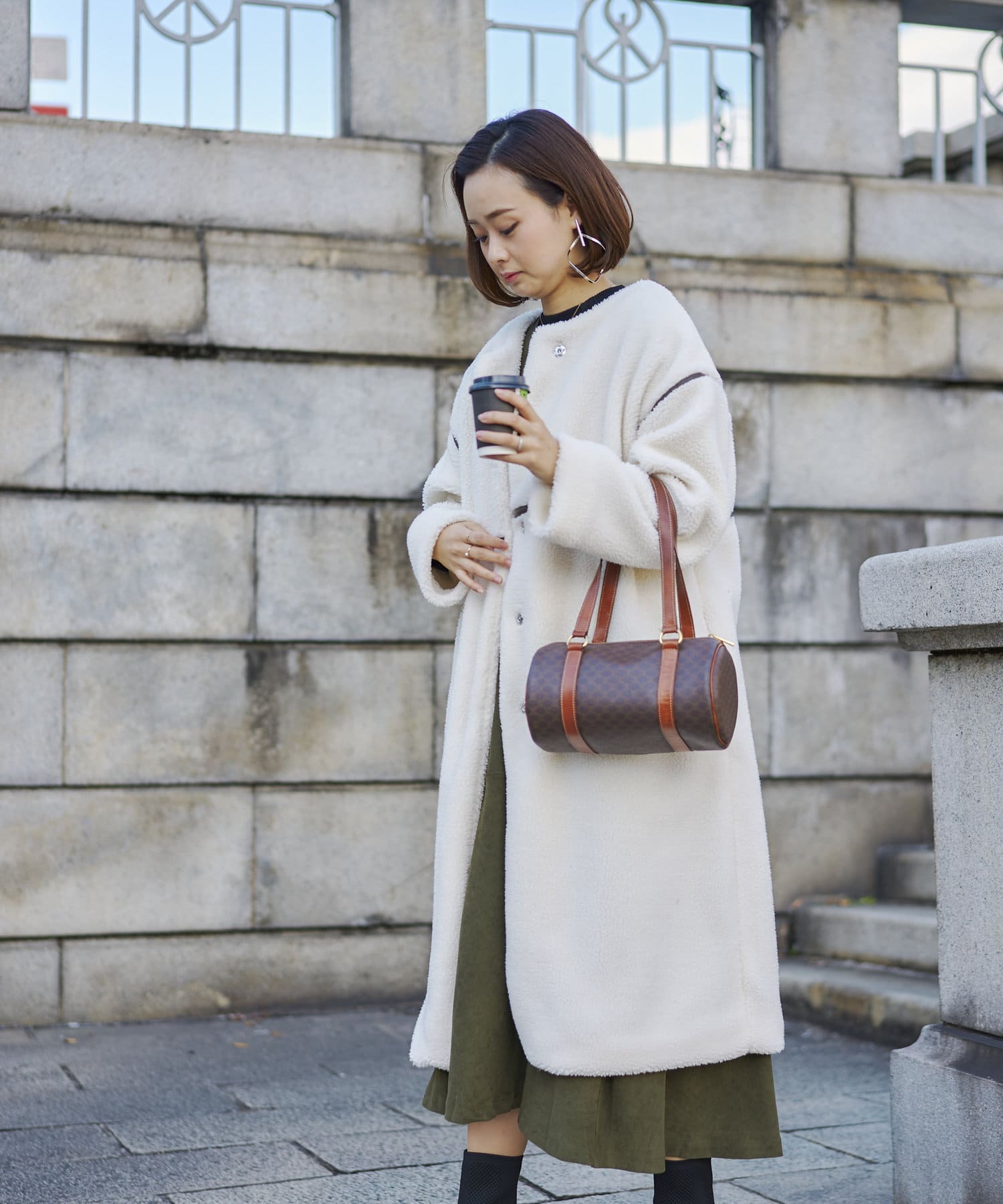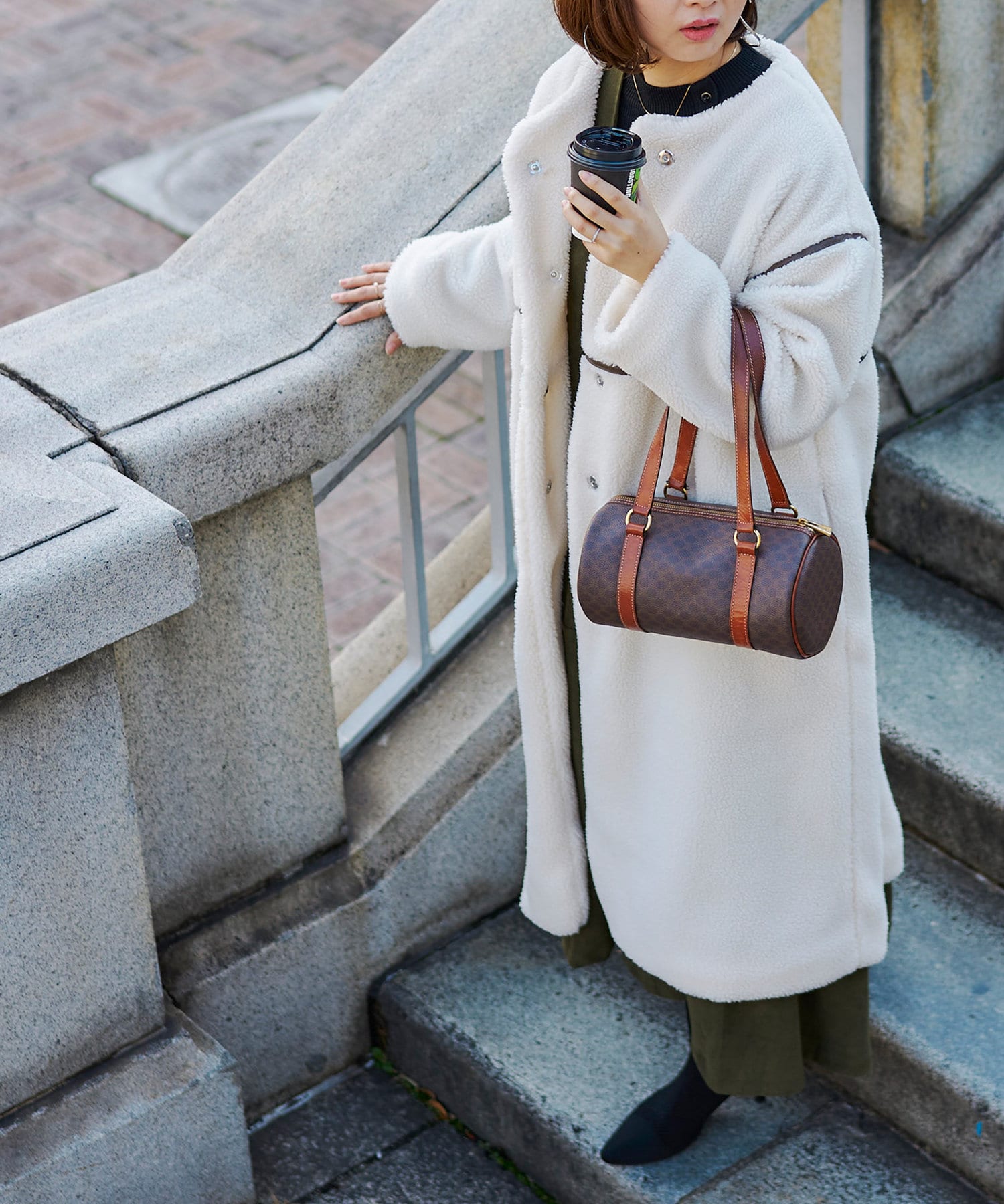 ・パイピングがアクセントになったボアコート。ゆったりしたシルエットなので