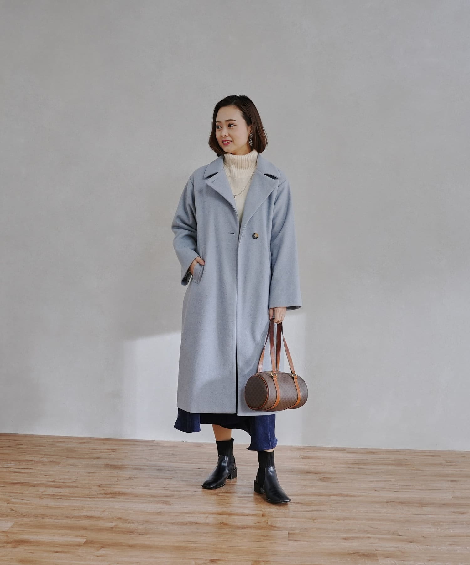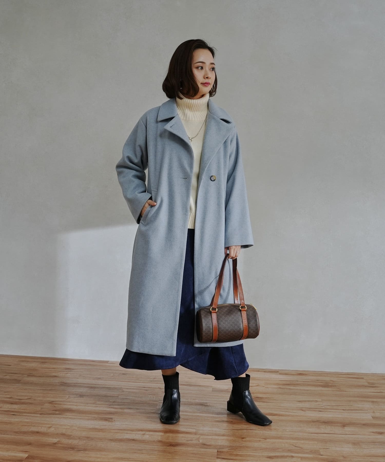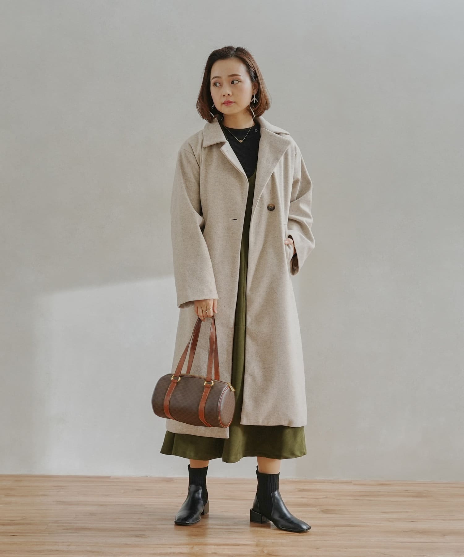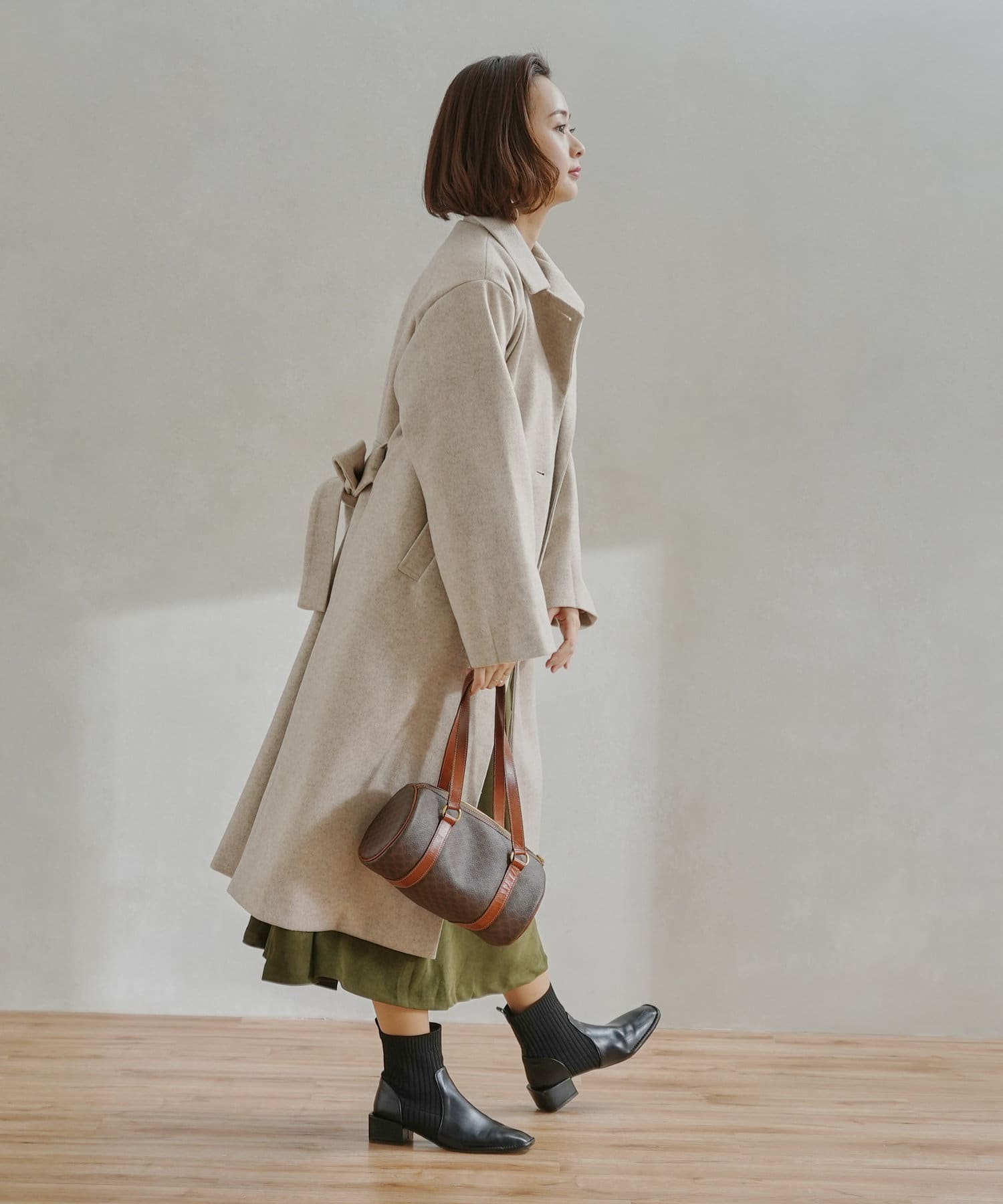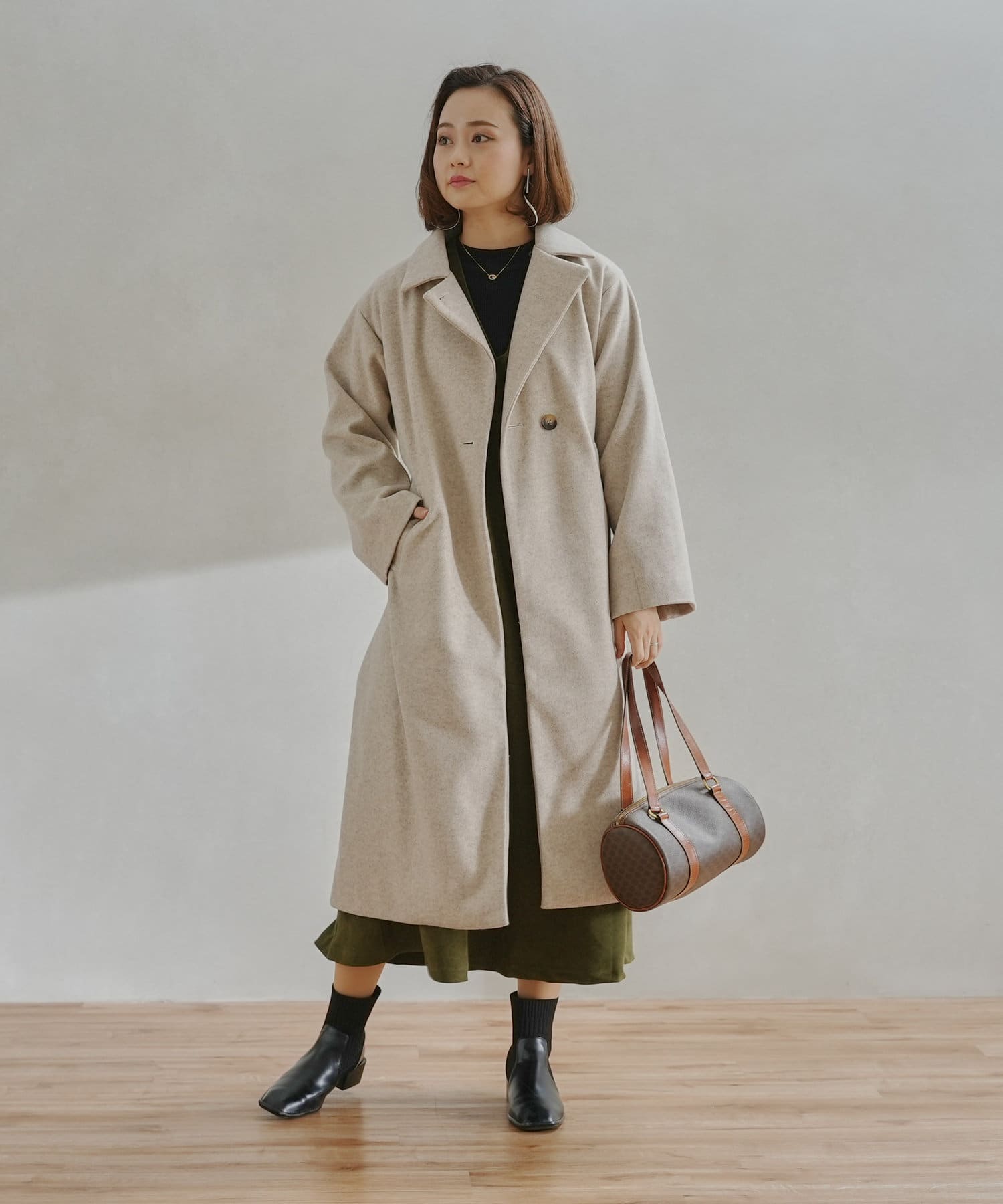 ・程よいゆとりがあるコートになるので、インナーダウンなど仕込んでお使いできます。