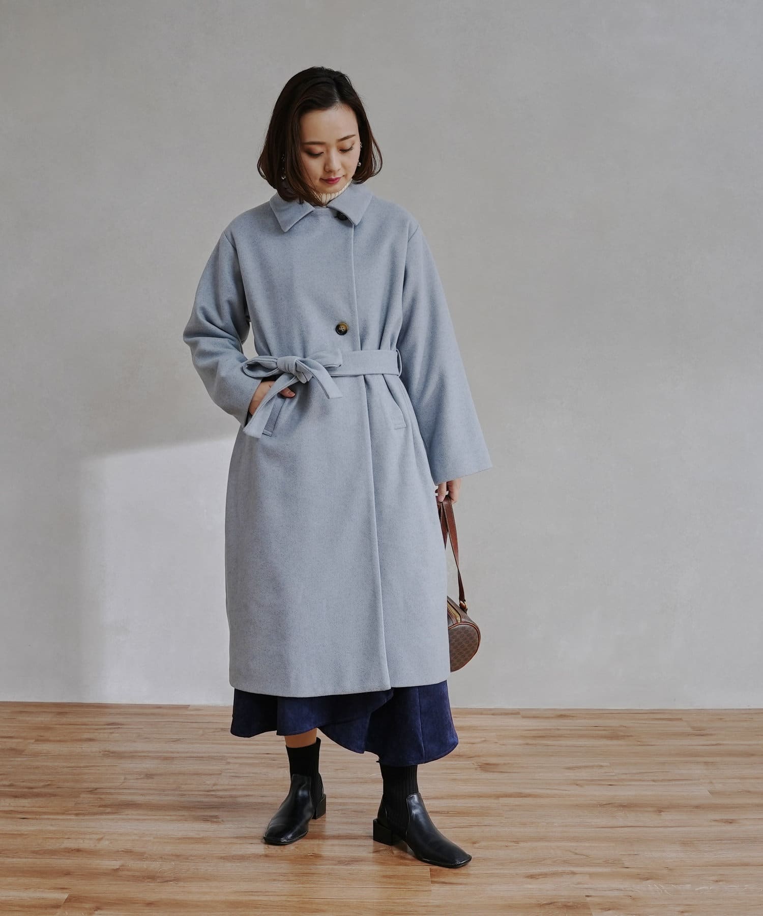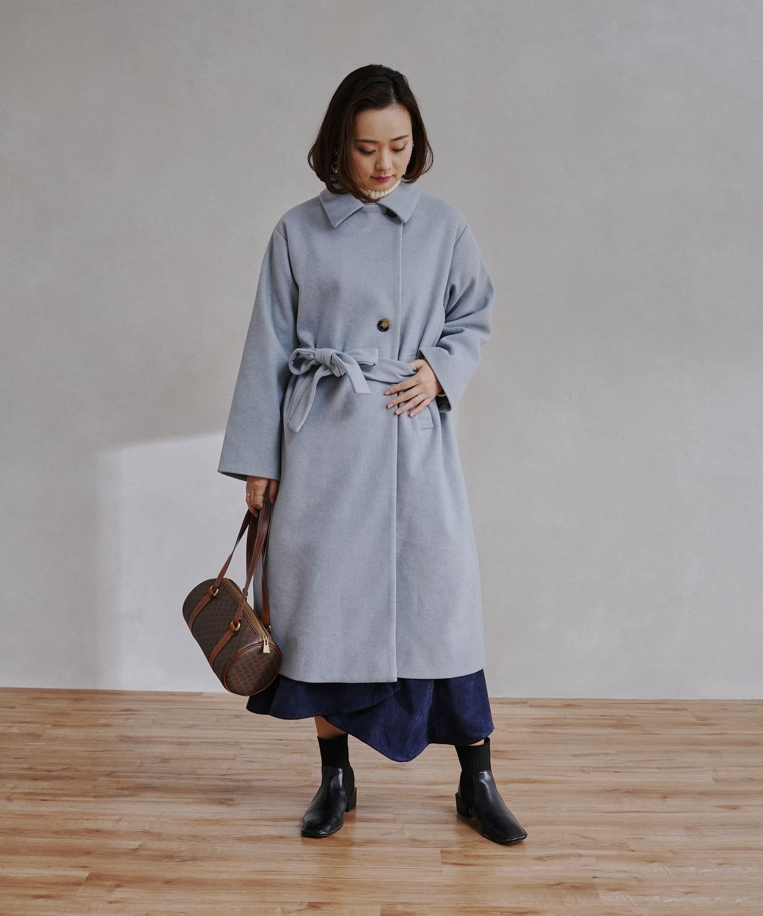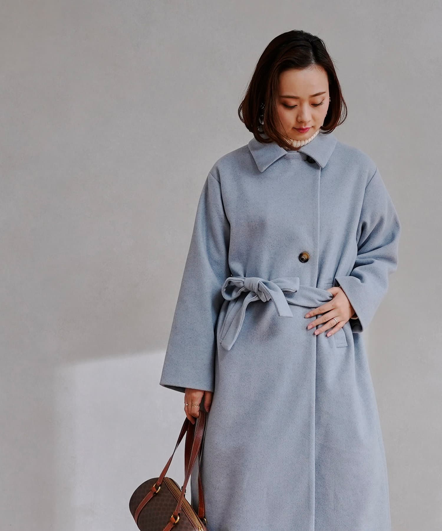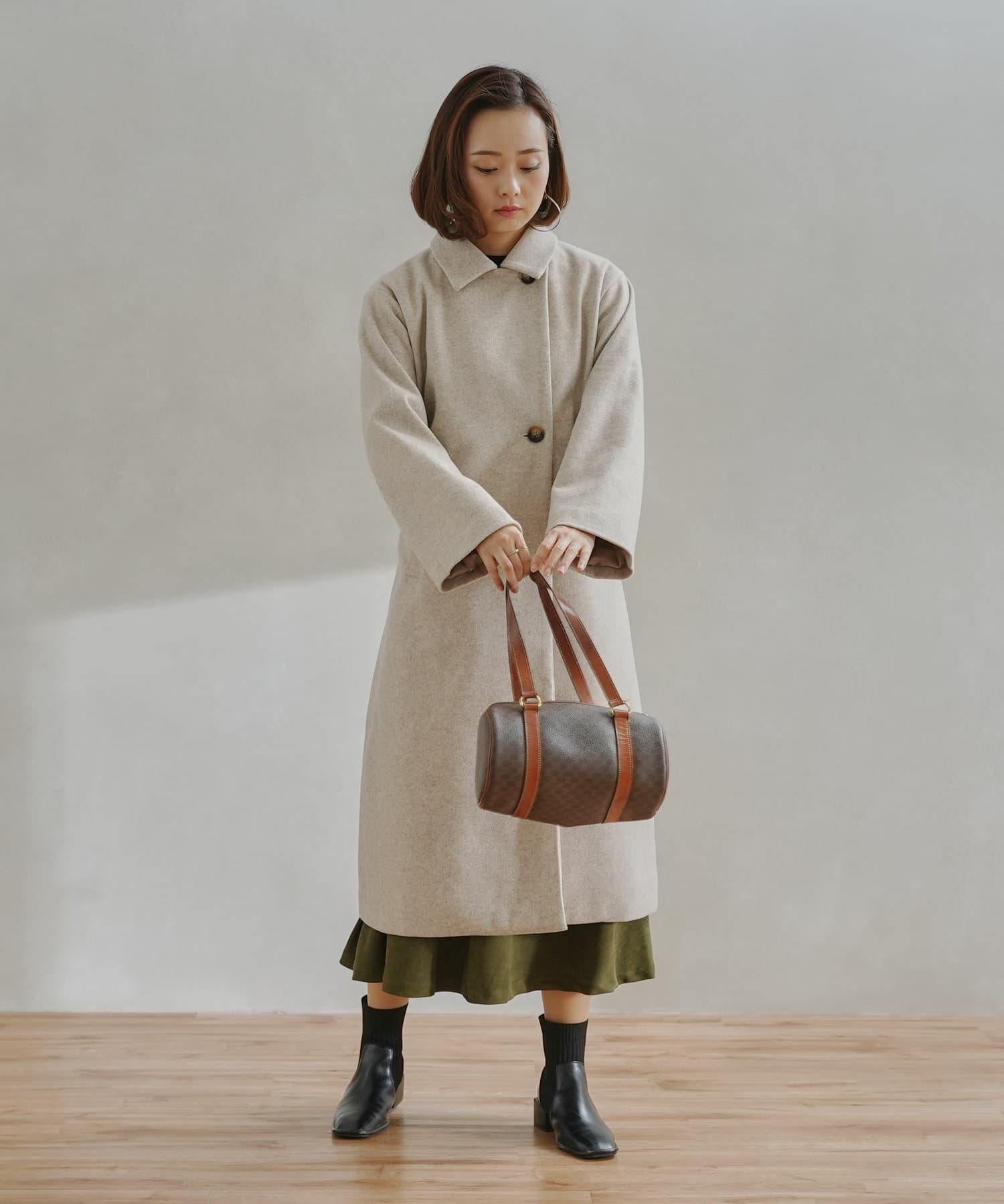 ・前を閉じるとステンカラーコートとして着用できるので雰囲気を変えて楽しんで頂けます。
