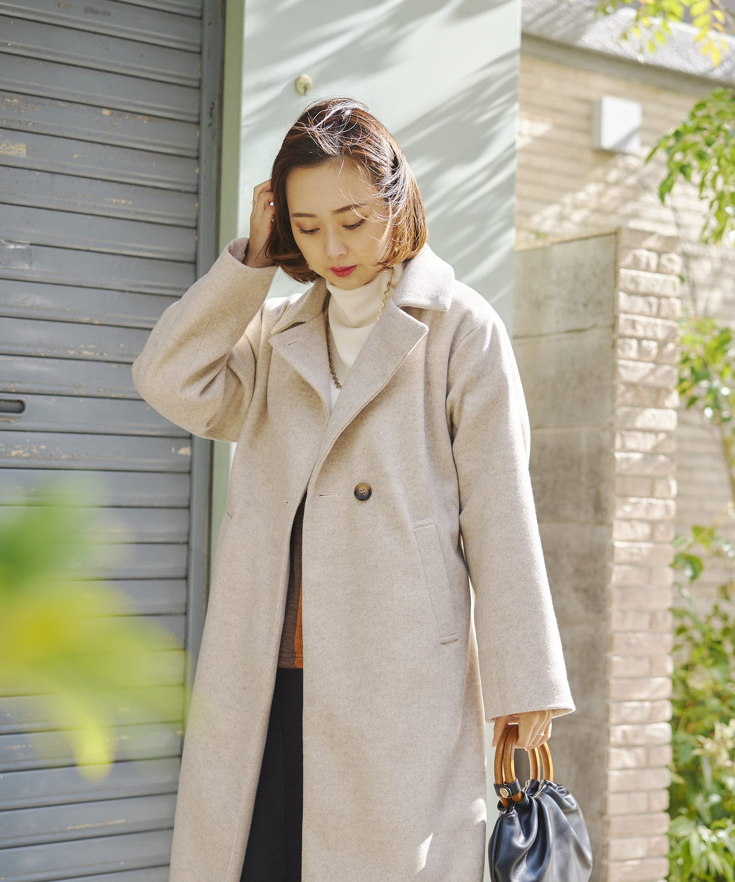 • Chez toi(シェトワ) 【前を閉じるとステンカラー風に】ウールタッチネック2WAYコート