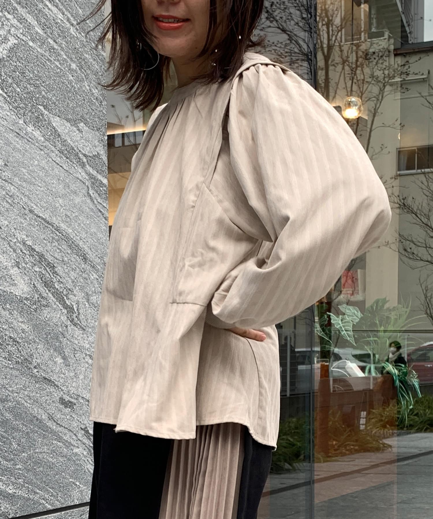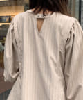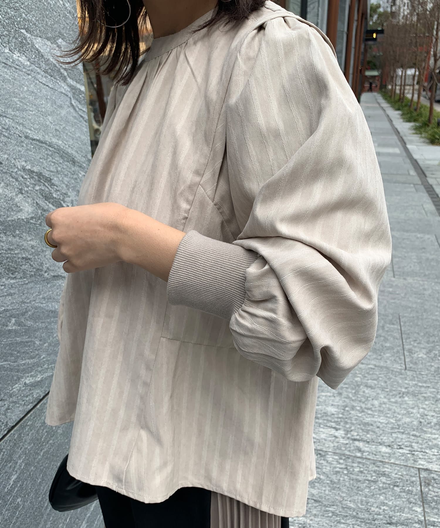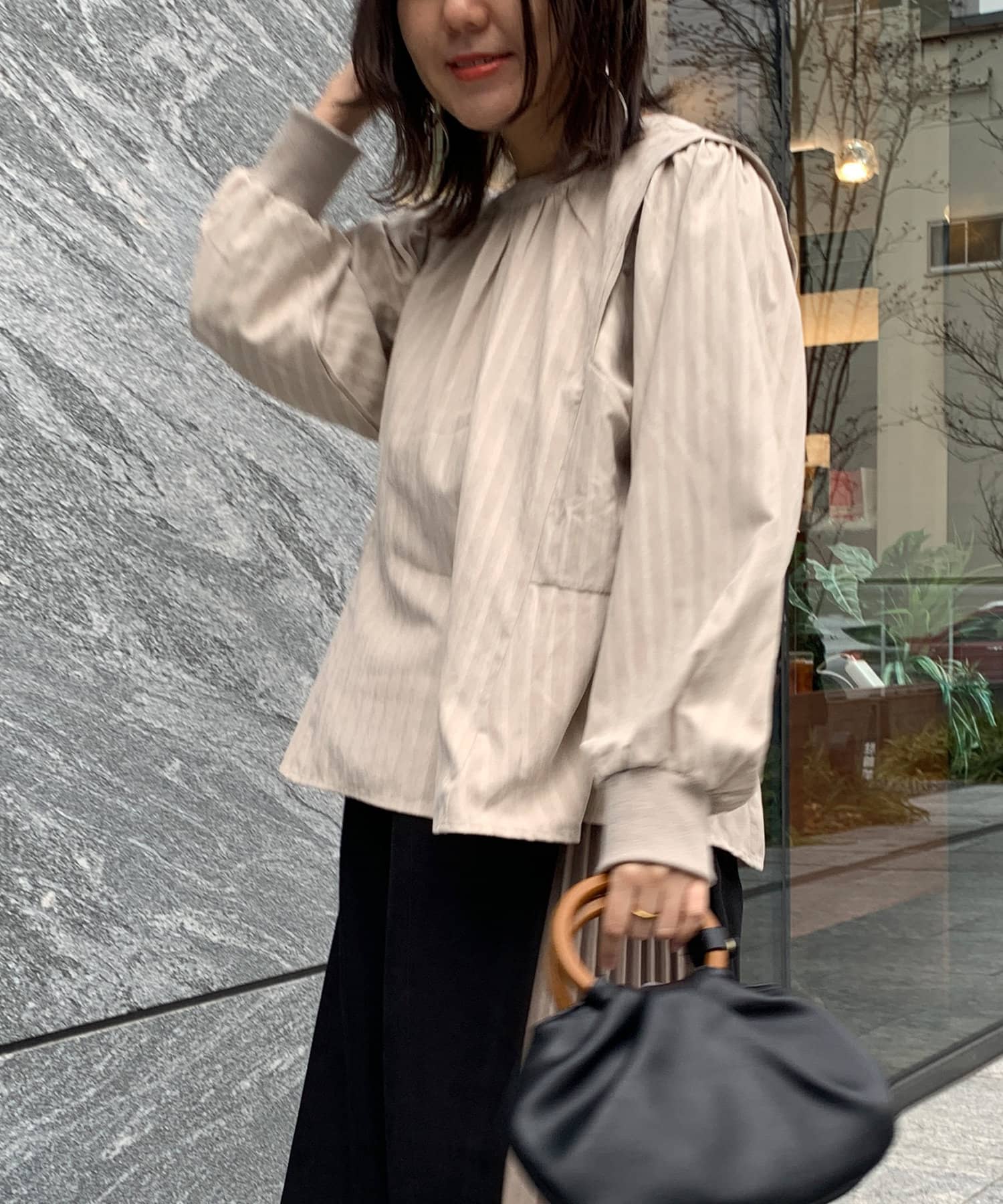 シア―ストライプ×ショルダータックのディテールがオトナのフェミニンさを