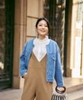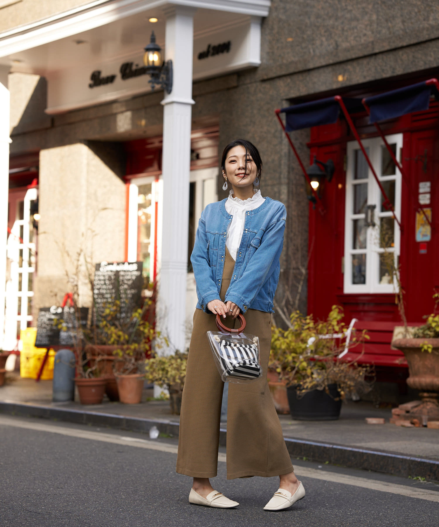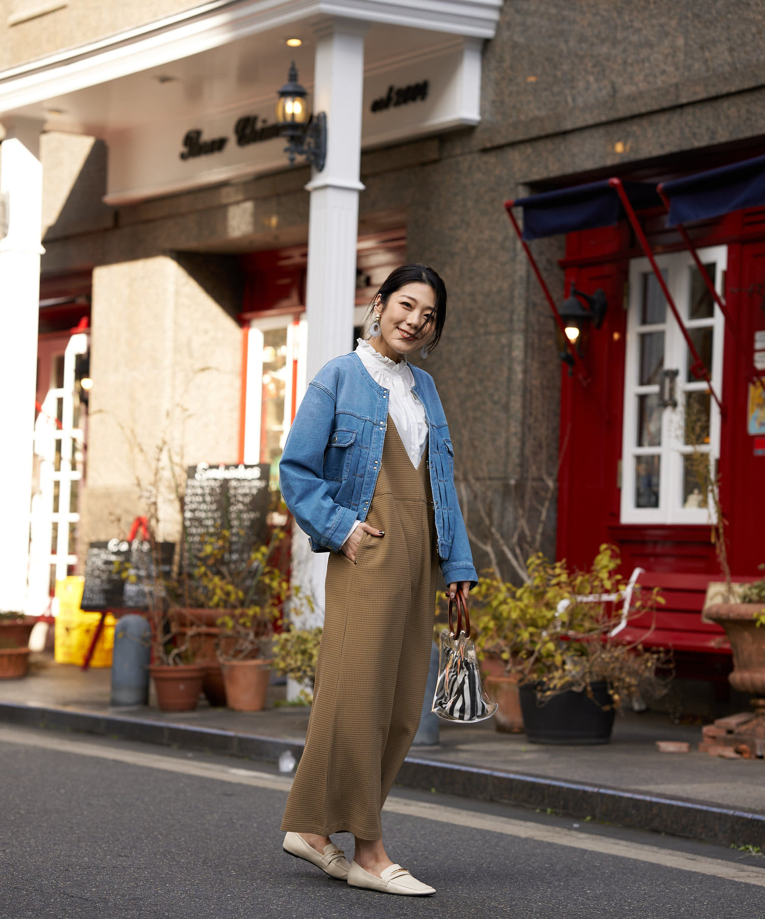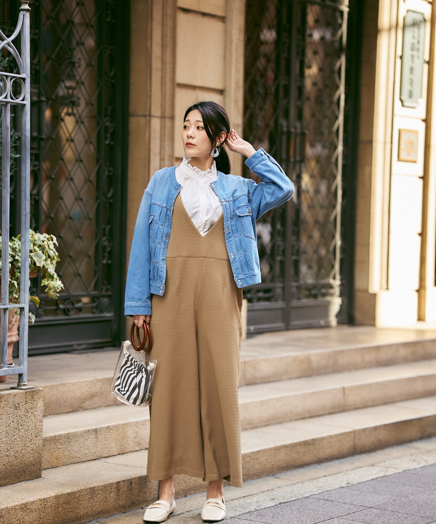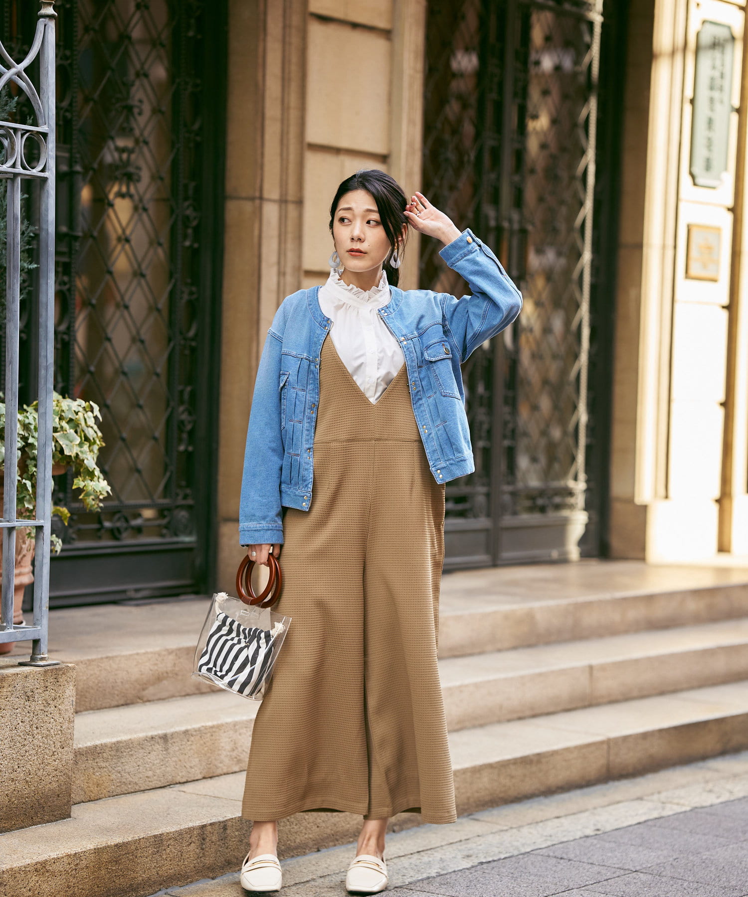 ・形自体はシンプルなので、ワンピース、スカート、パンツなどどんなアイテムにも羽織って