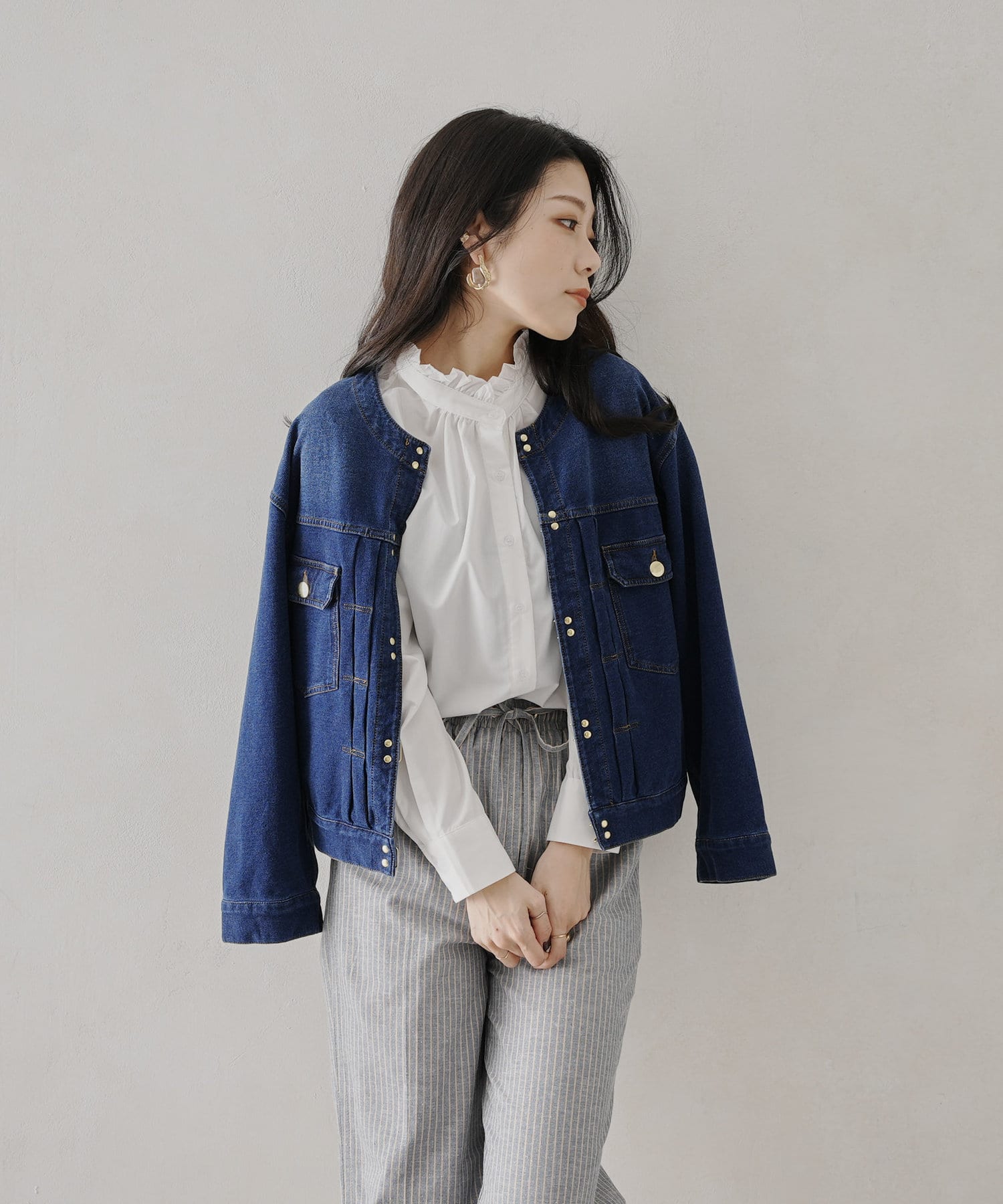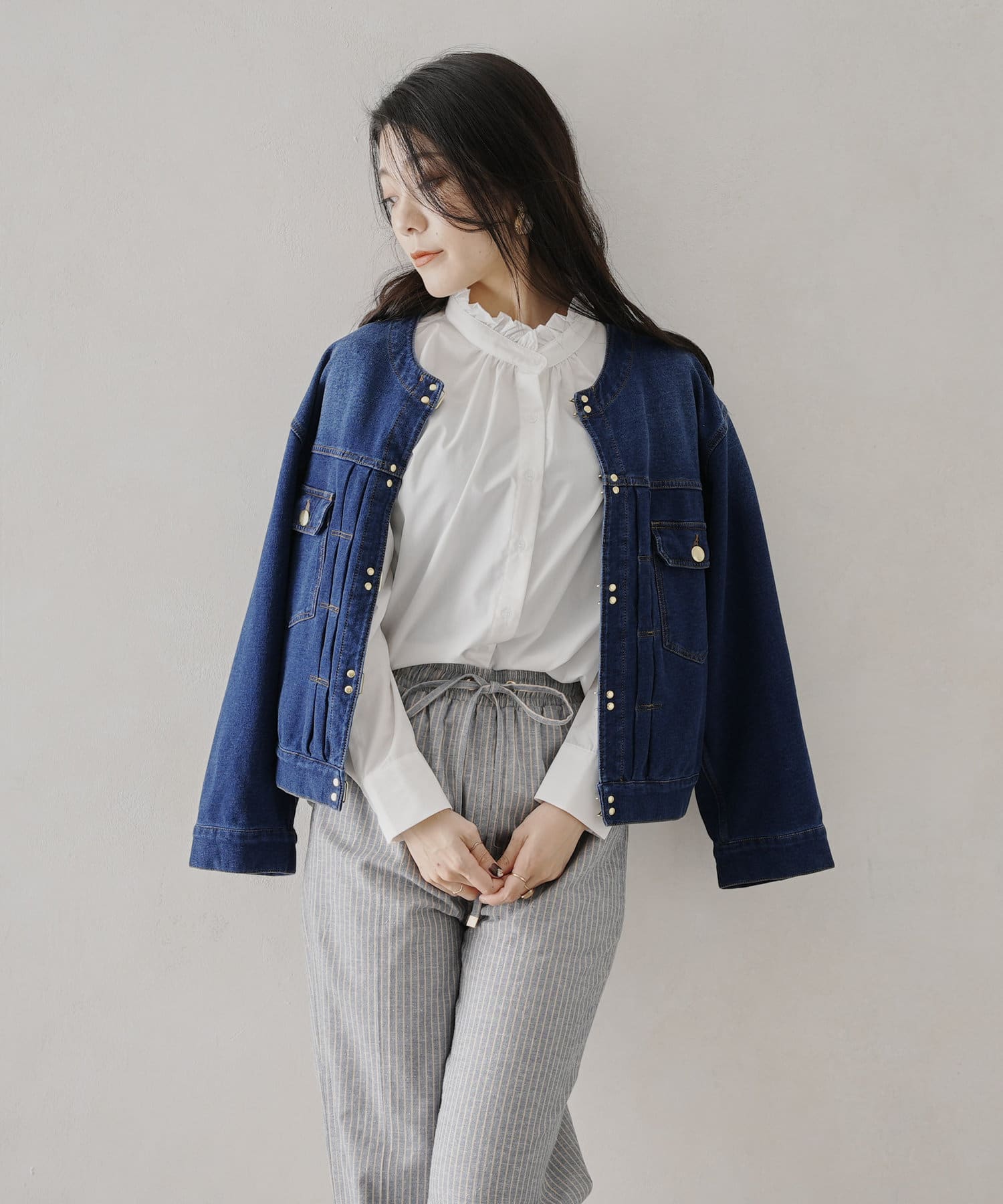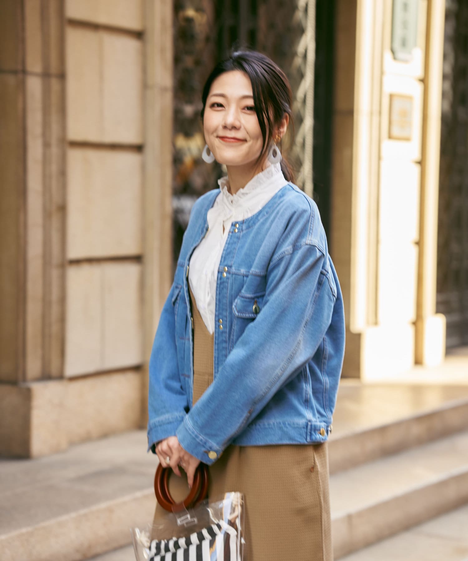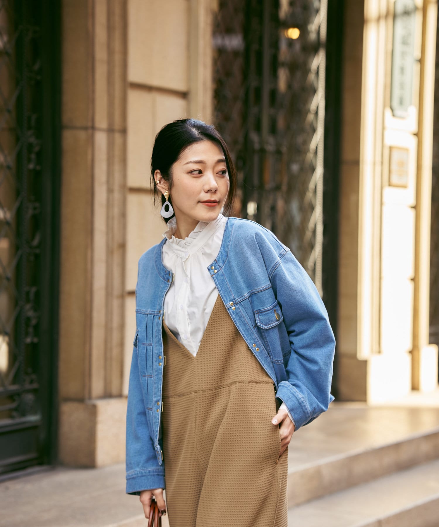 ・ノーカラーGジャンで首元もスッキリ見えるので、秋冬はマフラーとの相性も◎