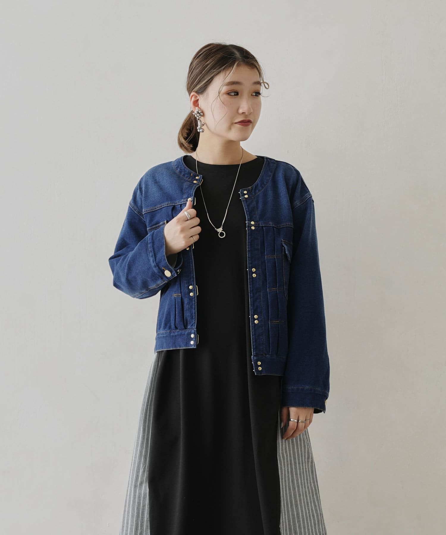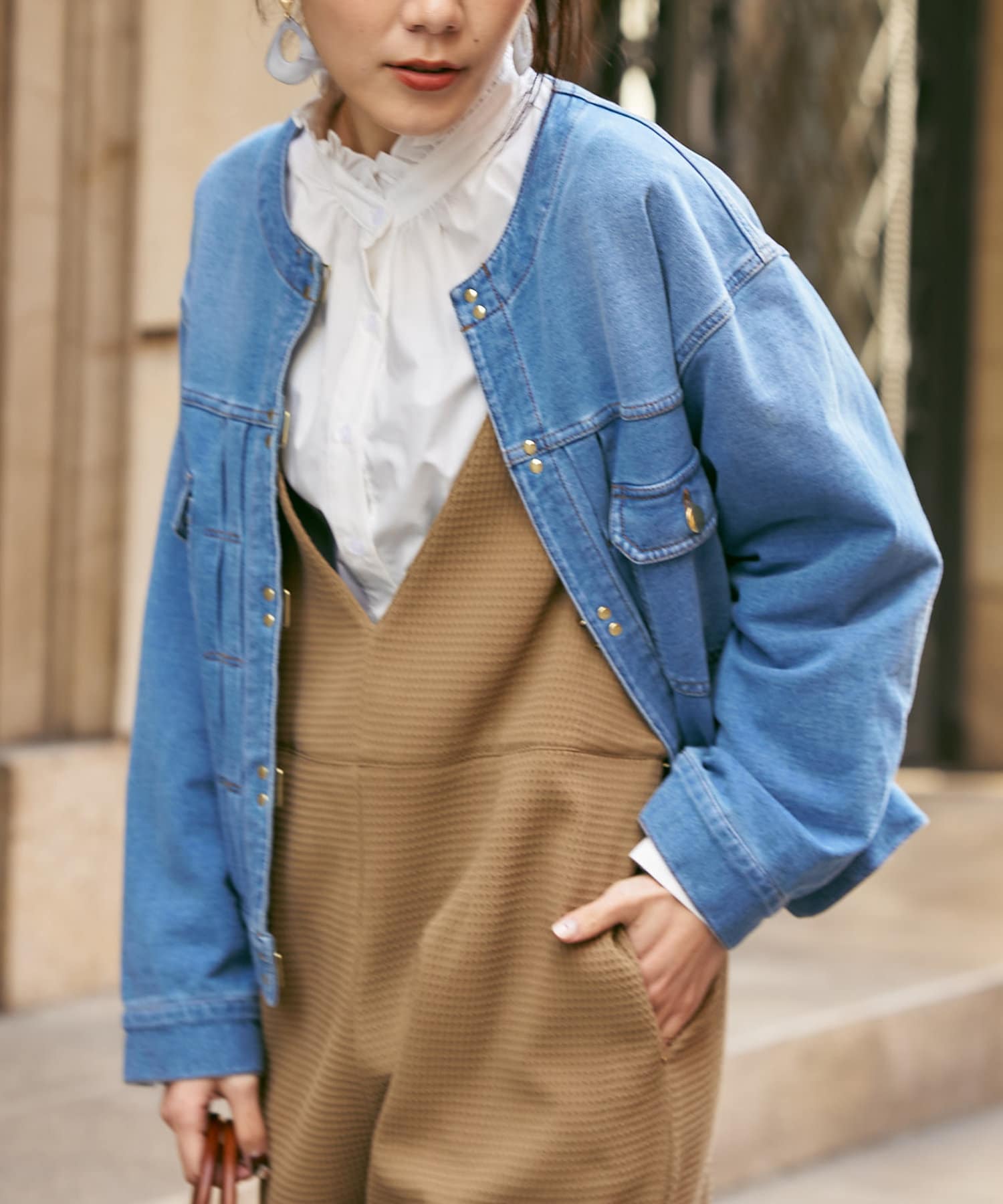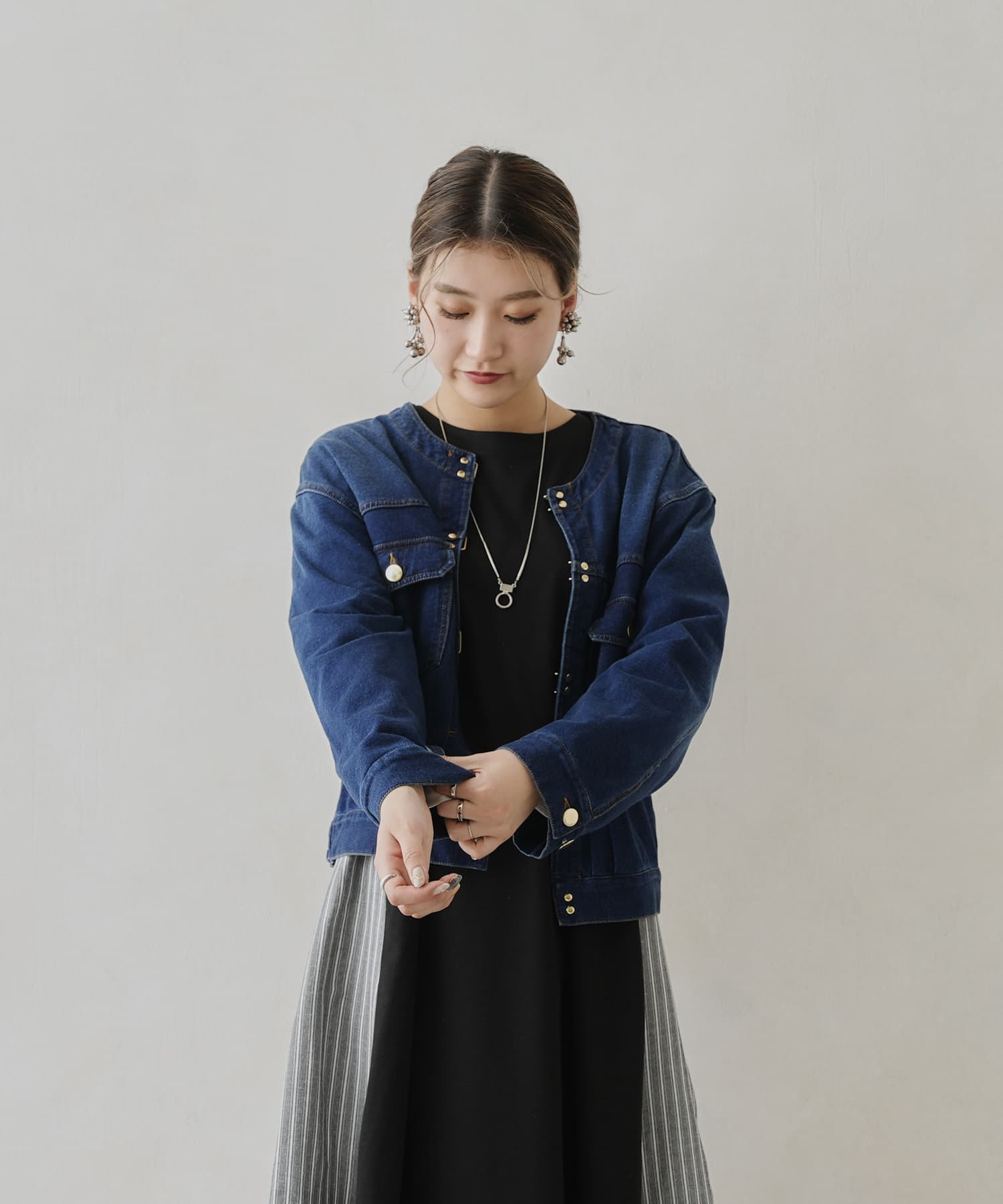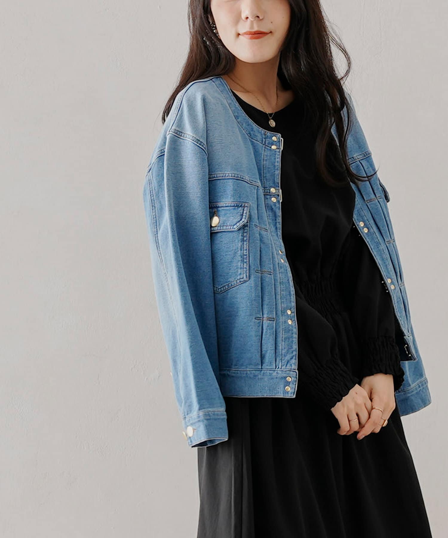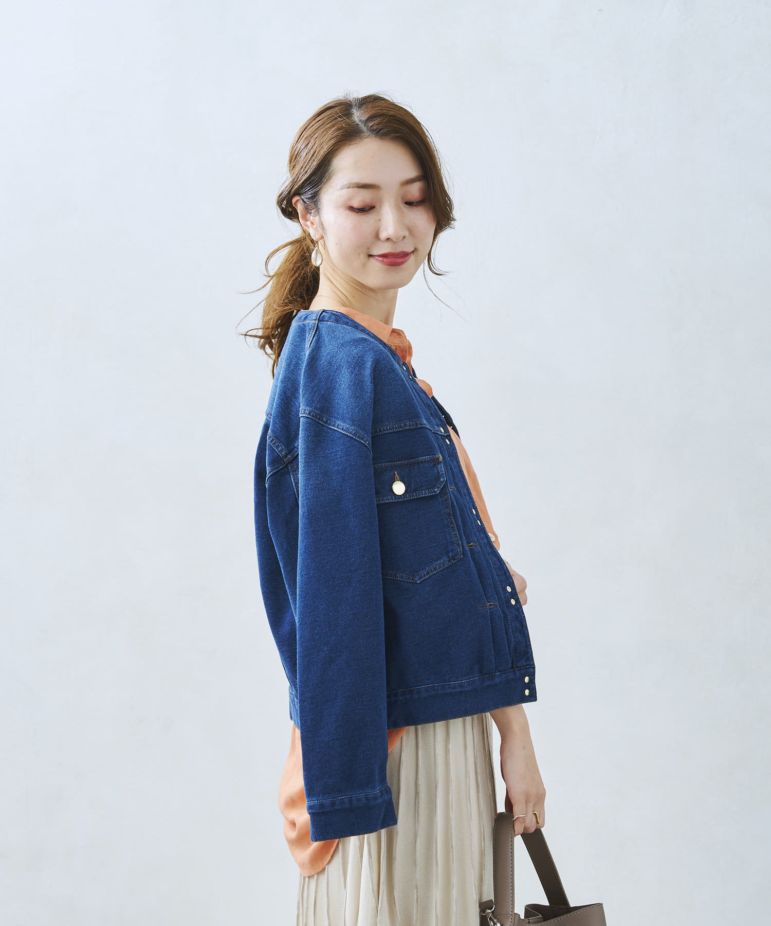 カットデニムという伸縮性がある生地感。秋口や春先に大活躍するアウターです。