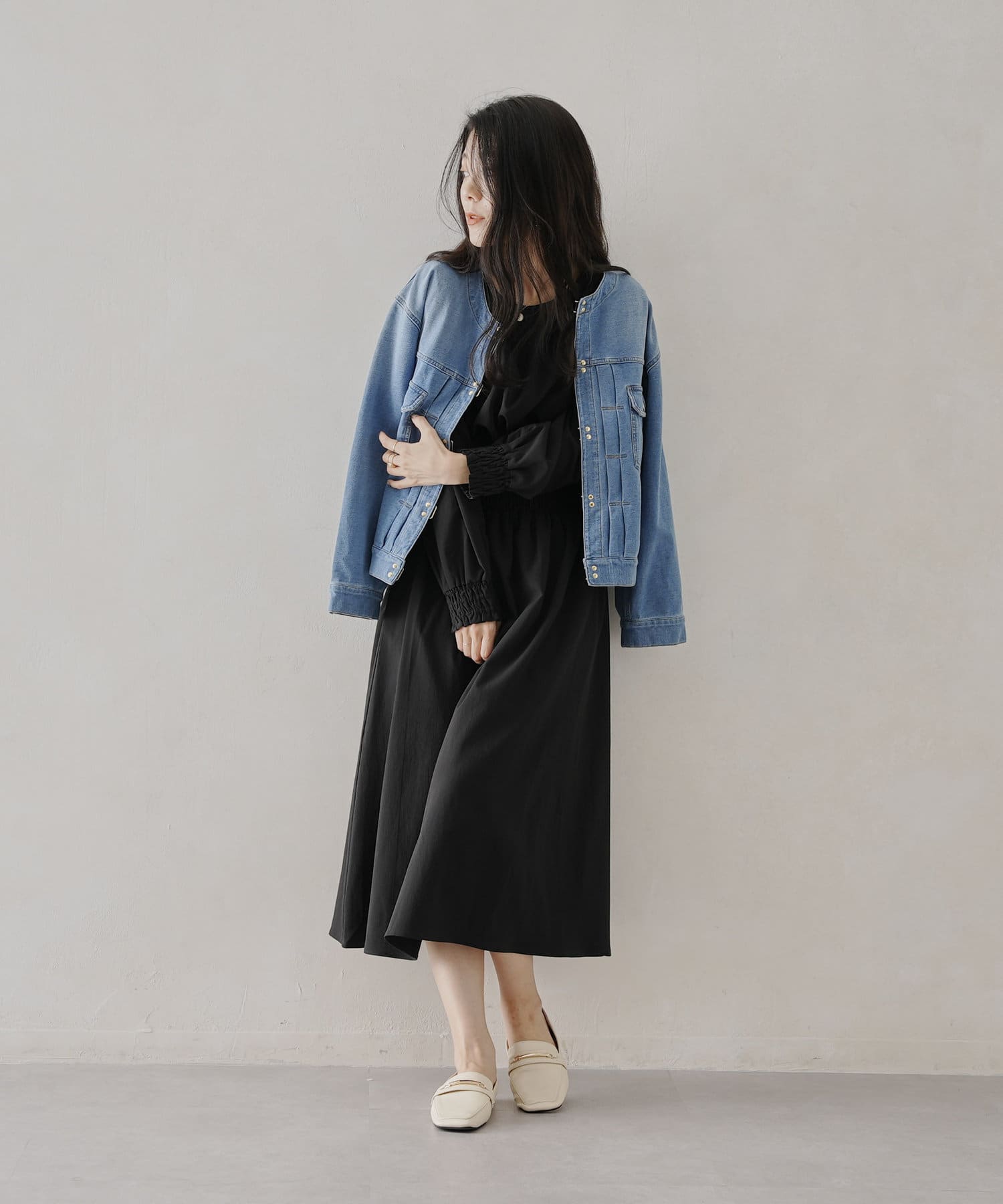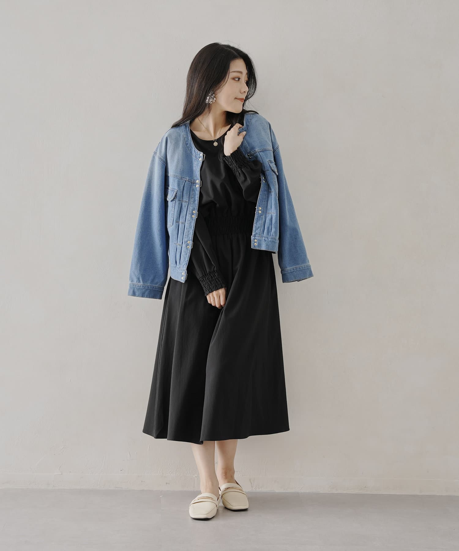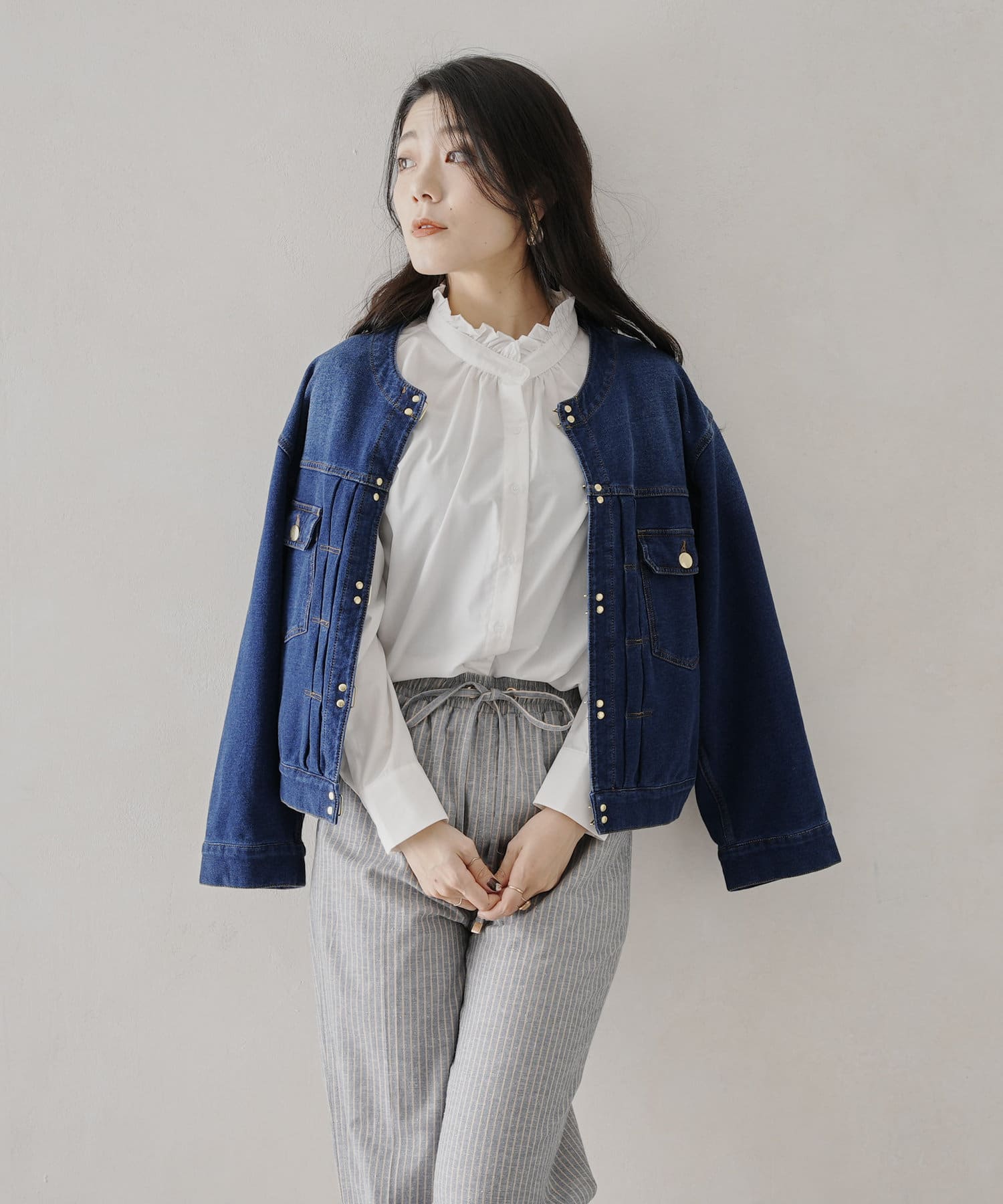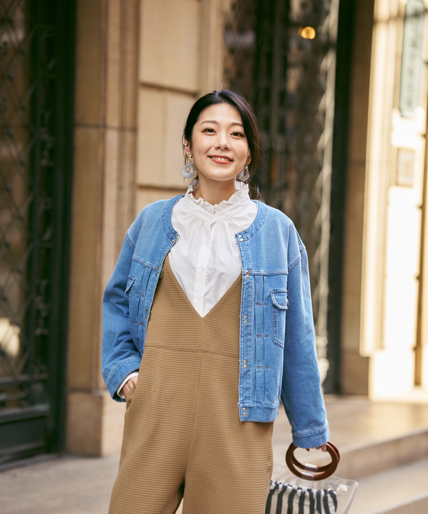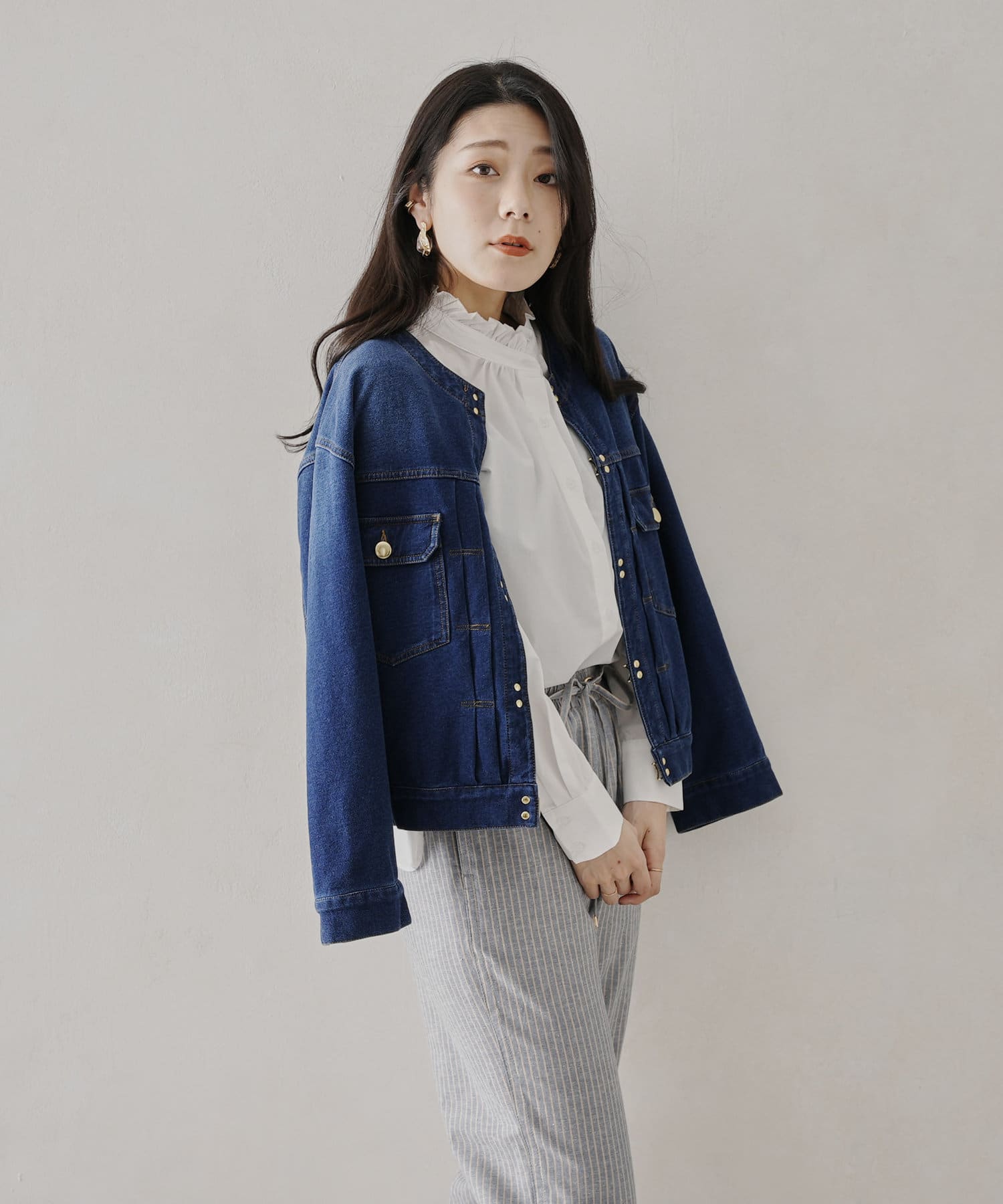 カットデニムという伸縮性がある生地感。秋口や春先に大活躍するアウターです。