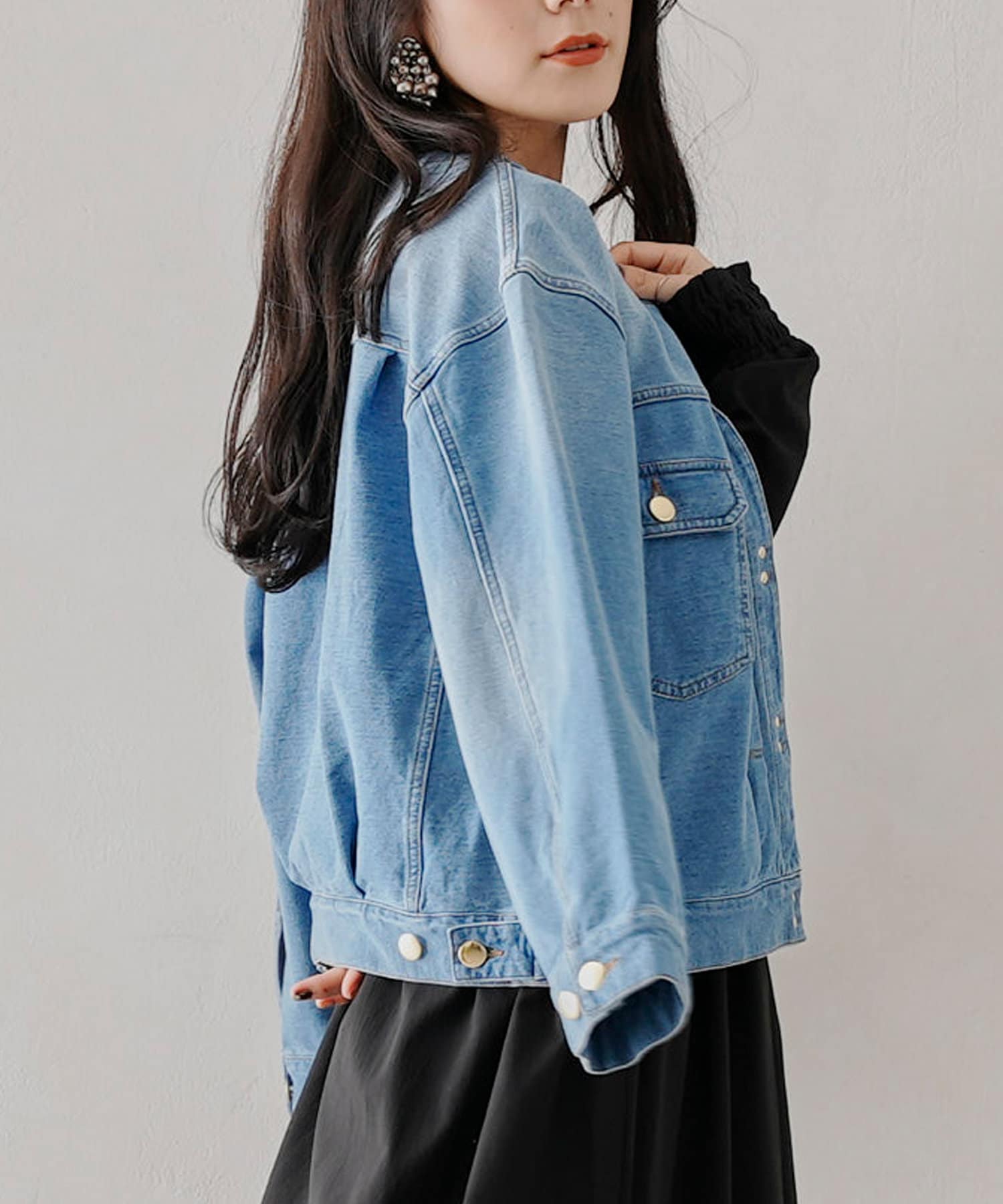 人と被らない!!Chez toiの定番人気のデニムジャケット カットデニムが伸縮性もよく着心地抜群!!