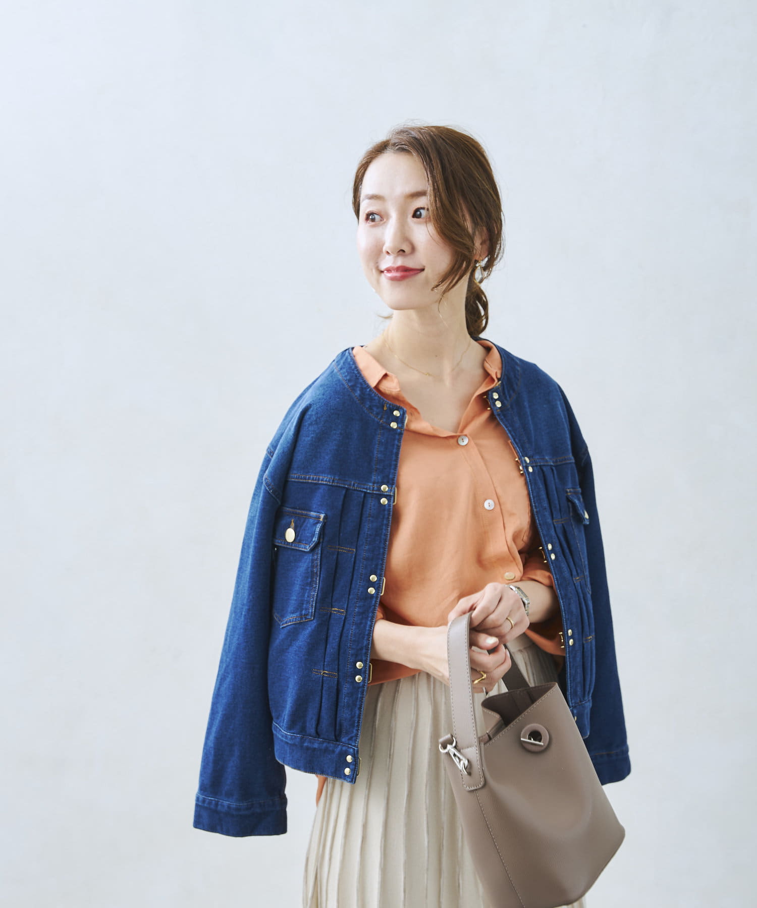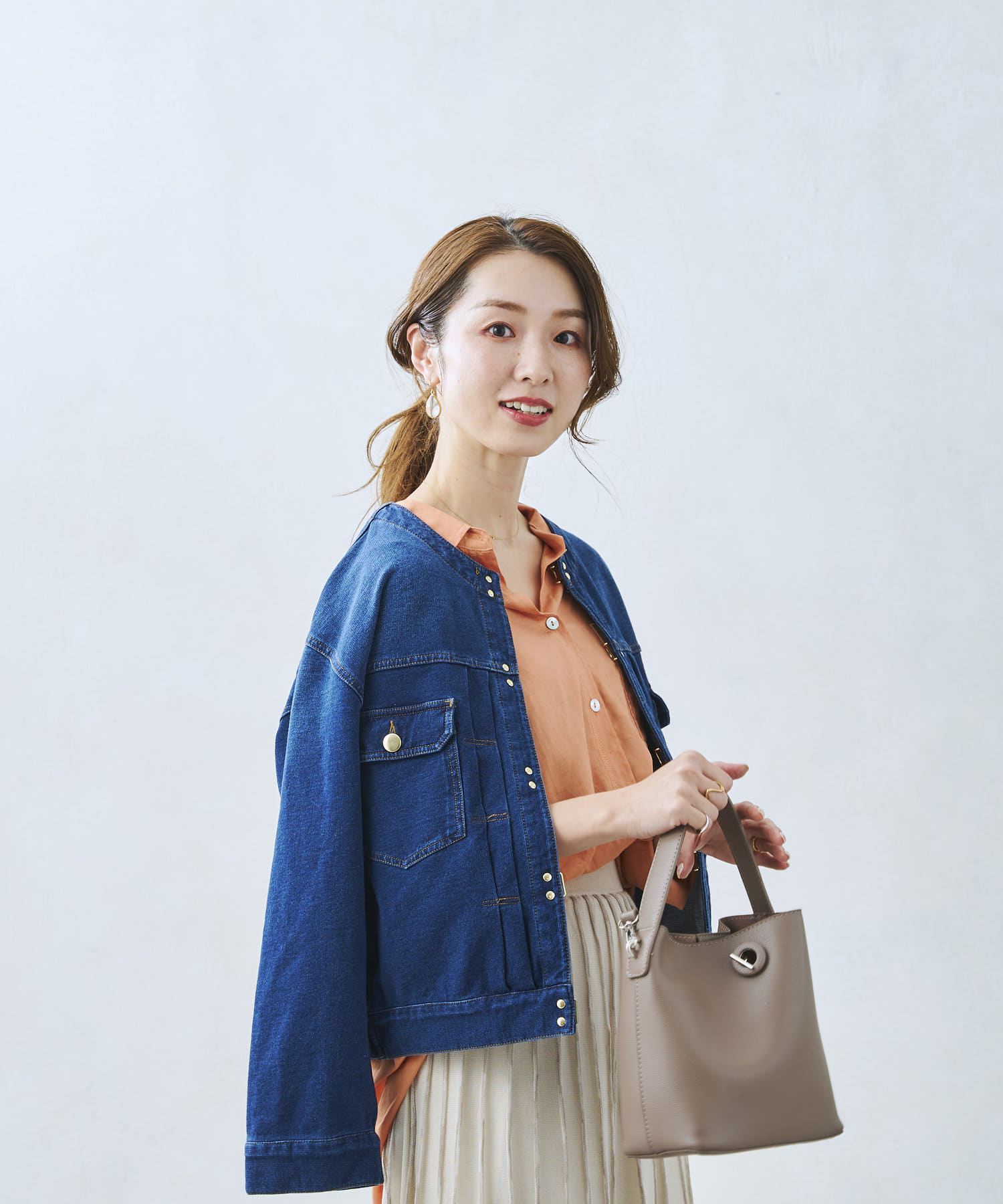 ノーカラーとGLD金具が一癖ありのデザイン。オーバーサイズではないので