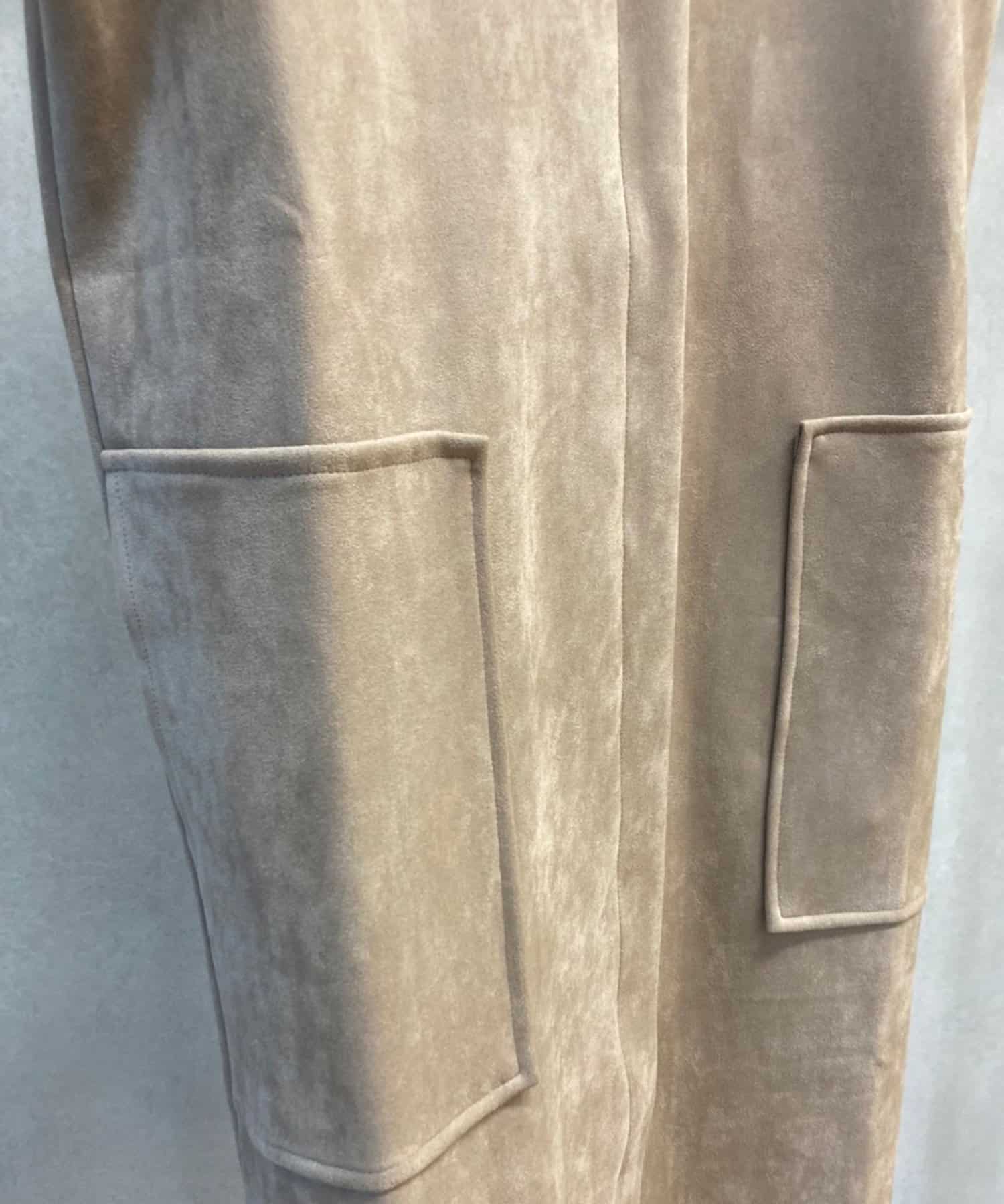 ・ボンディングスエードの伸縮性のある生地感なので厚手のニットなども