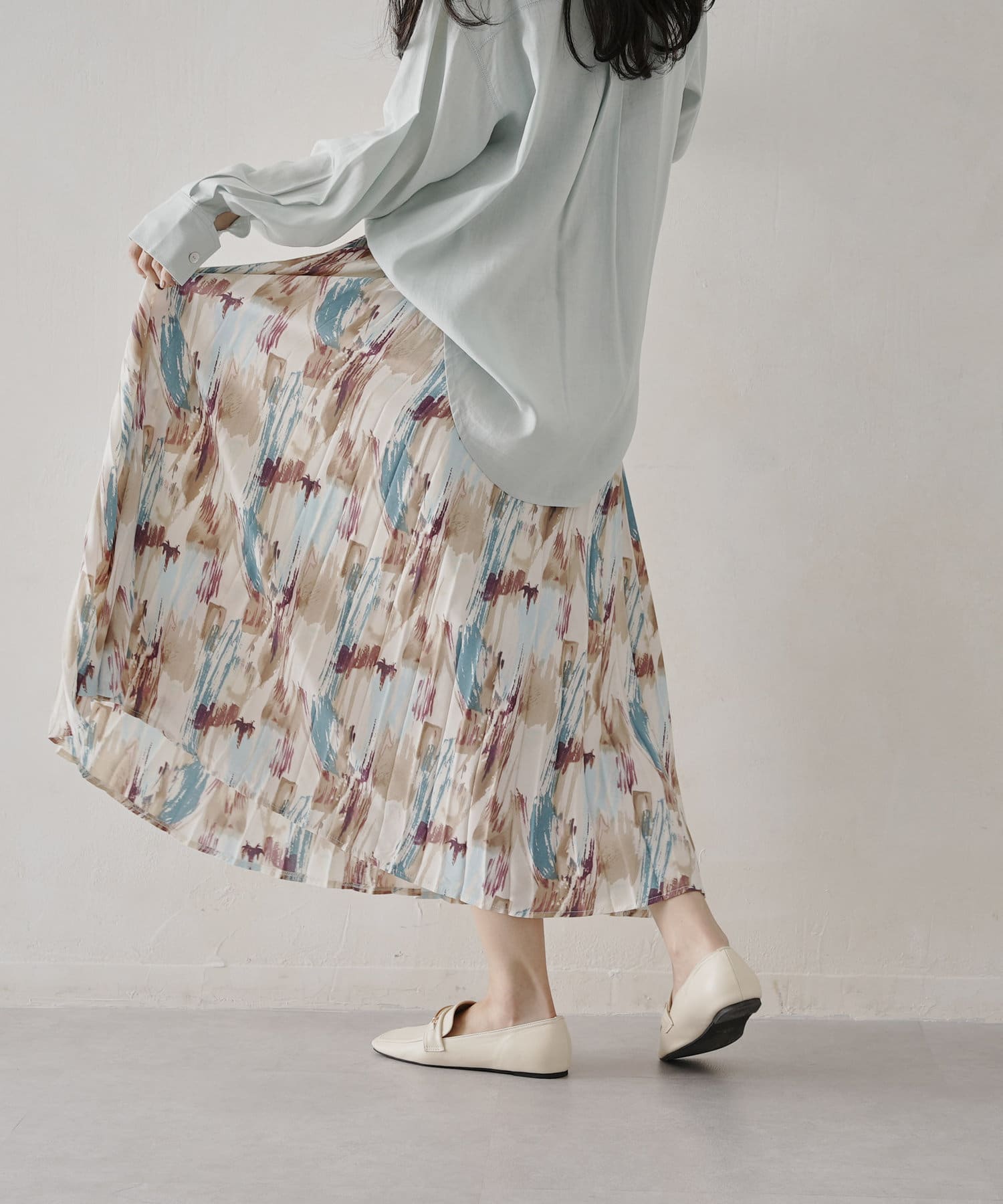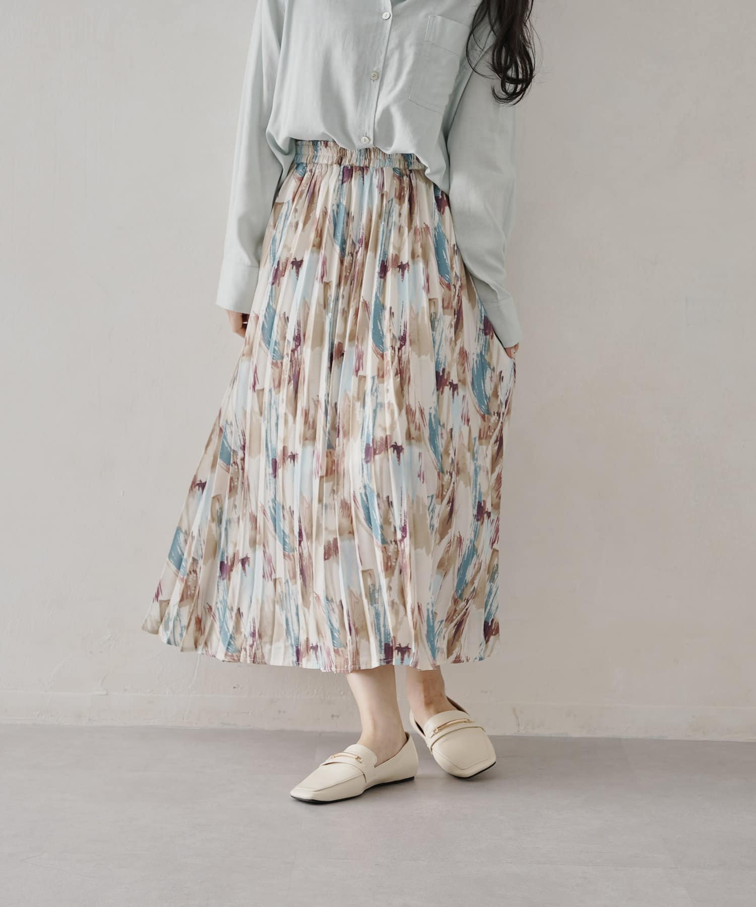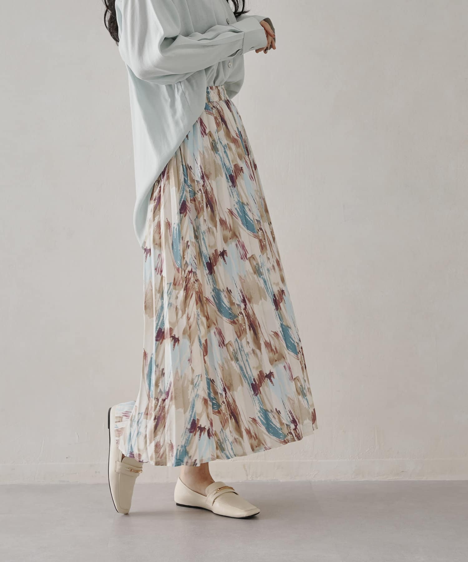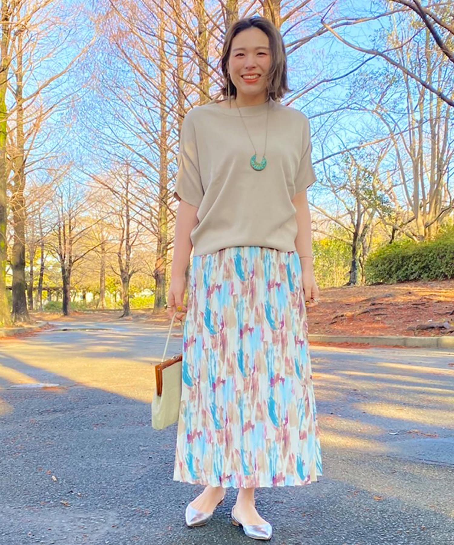 ・淡いニュアンス柄で春らしさ満載なスカート。