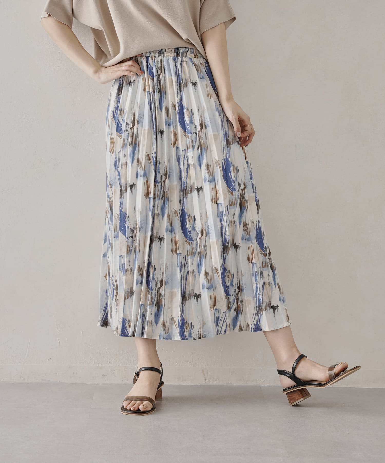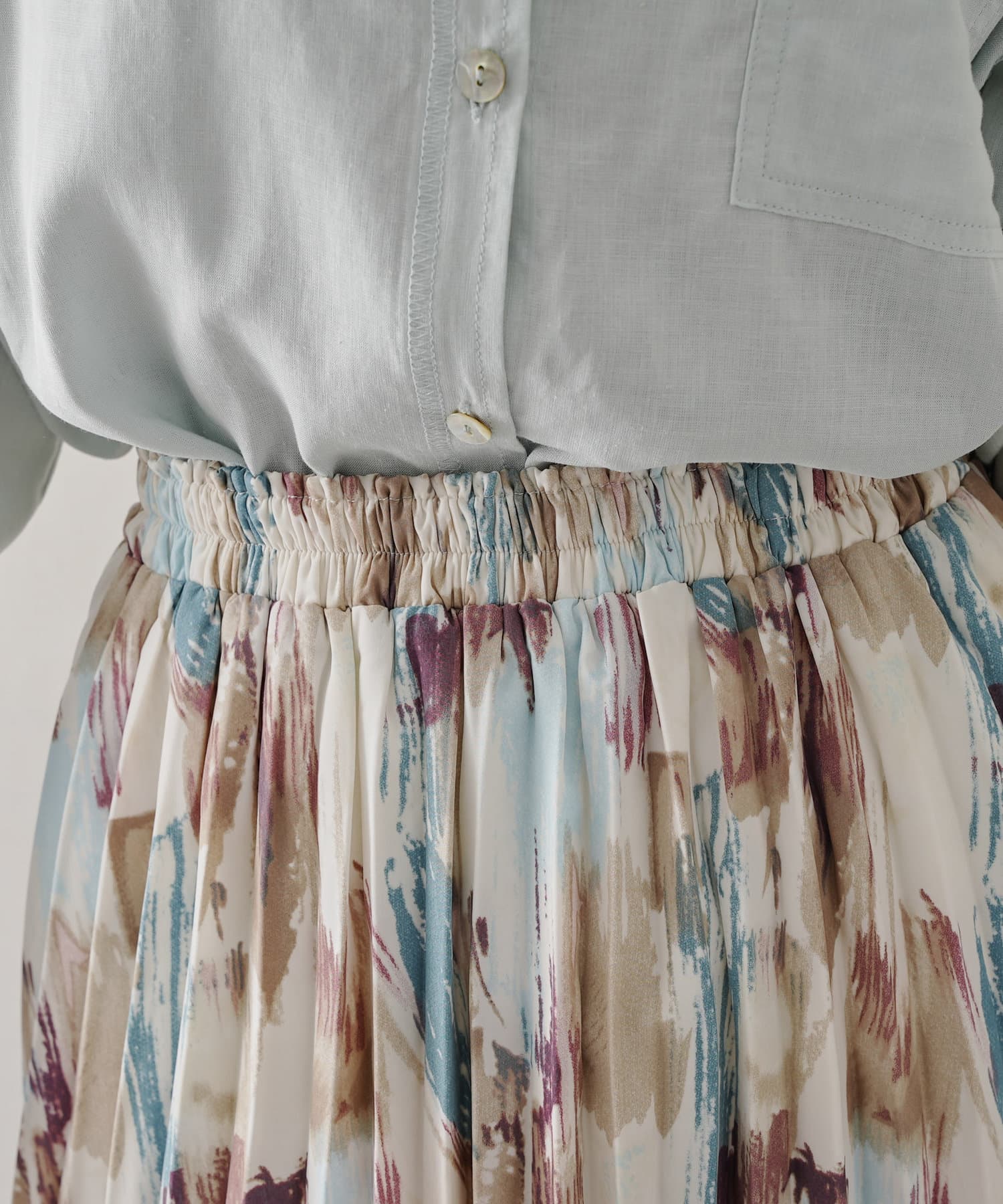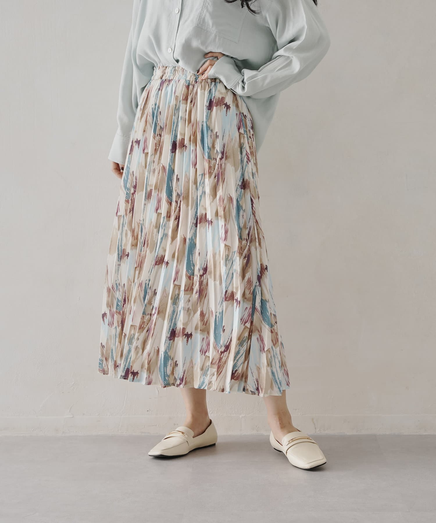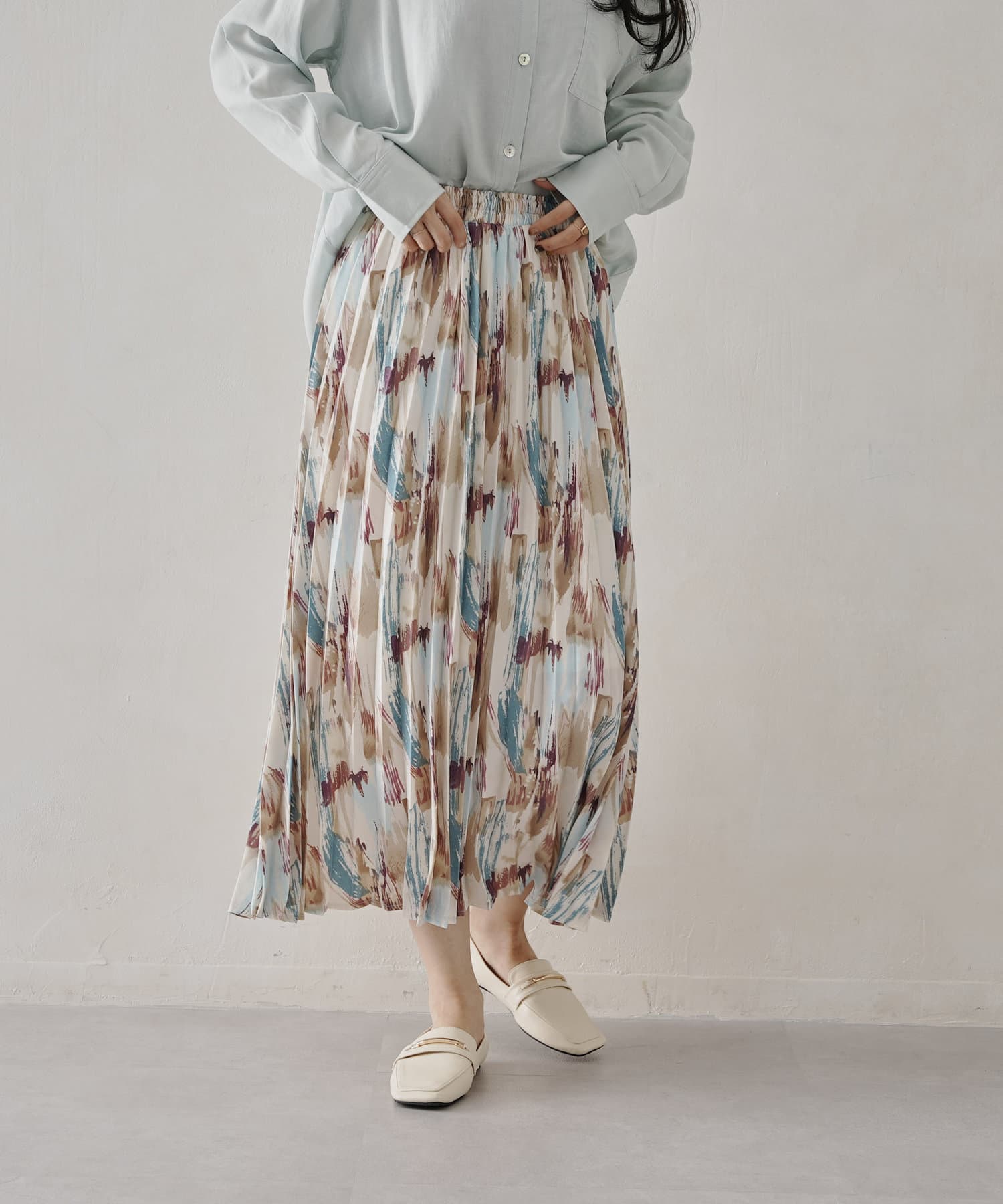 ・淡いニュアンス柄で春らしさ満載なスカート。