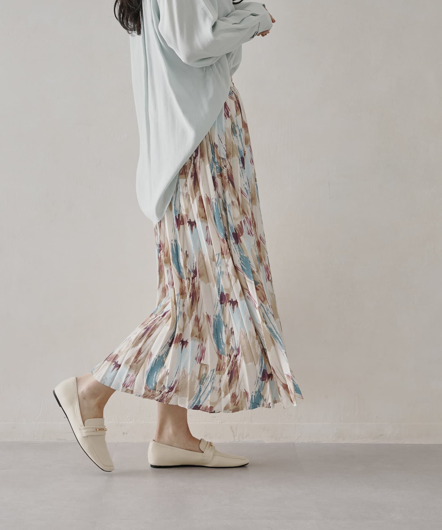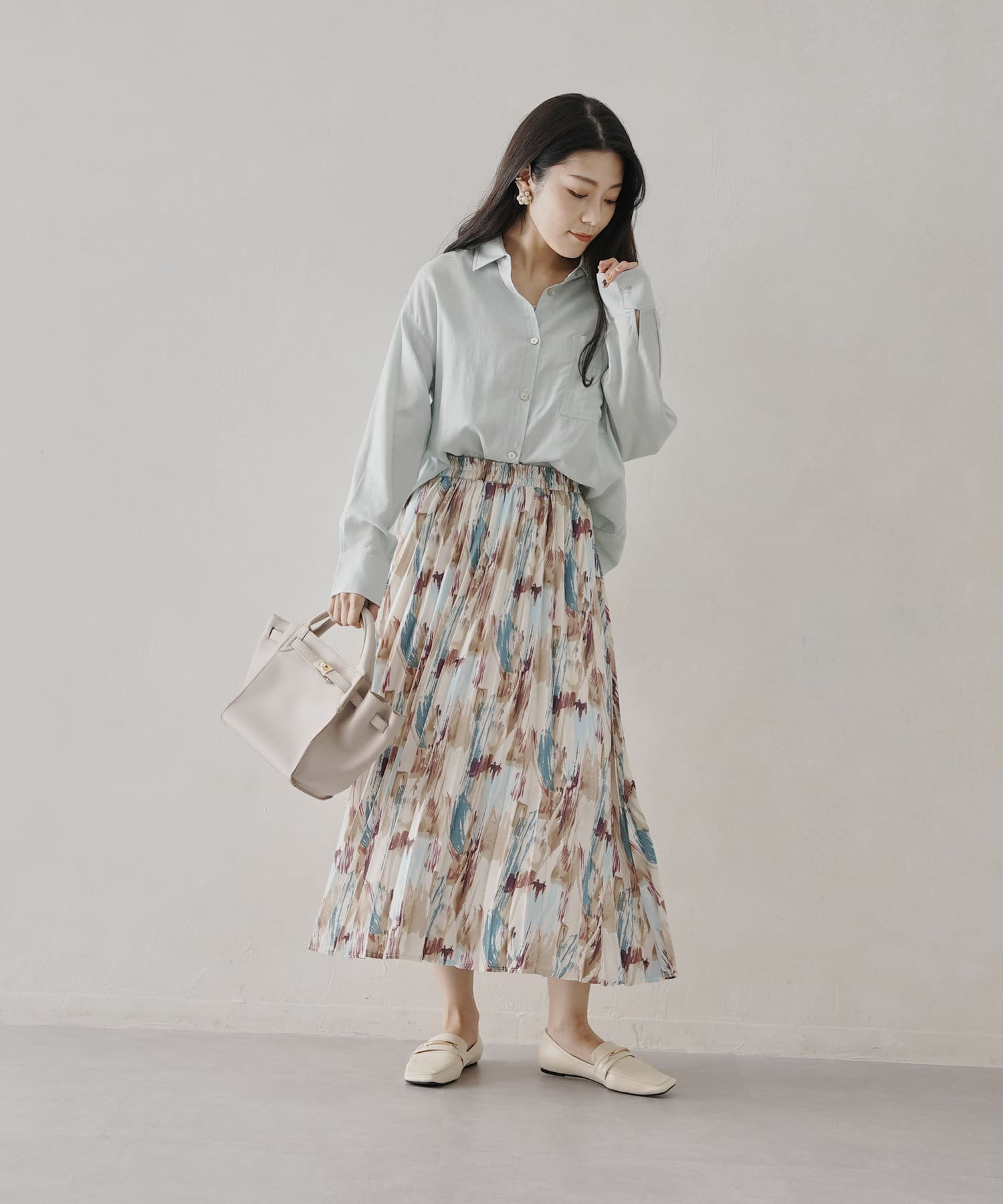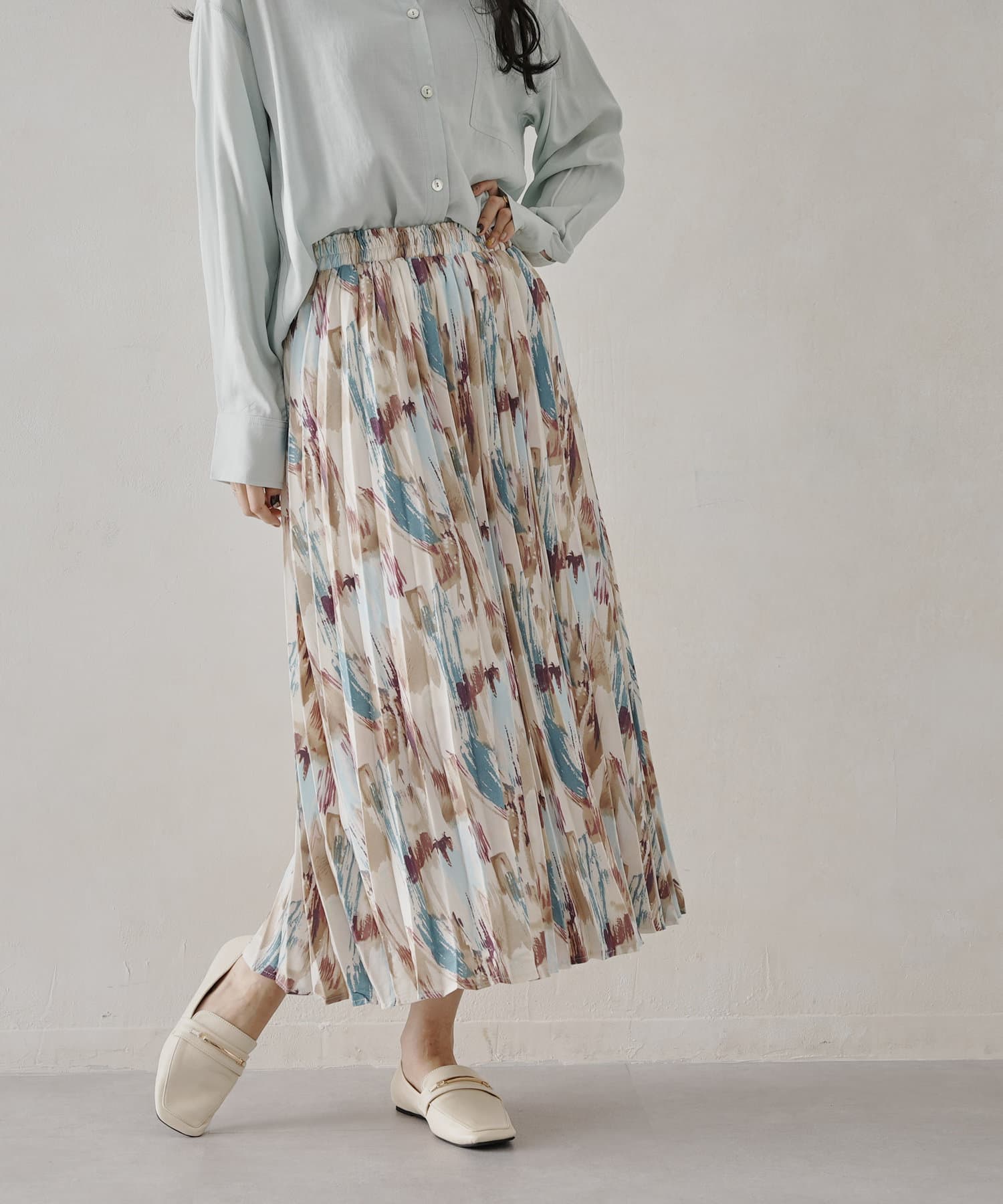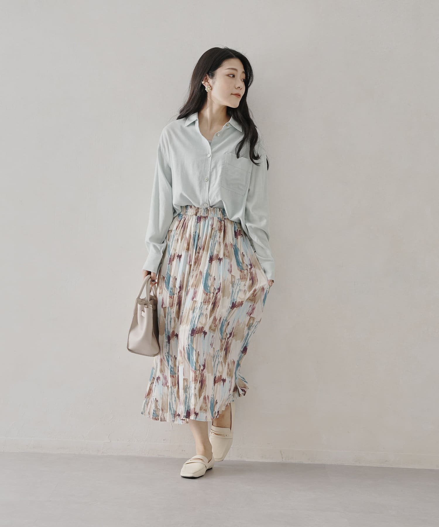 ・淡いニュアンス柄で春らしさ満載なスカート。