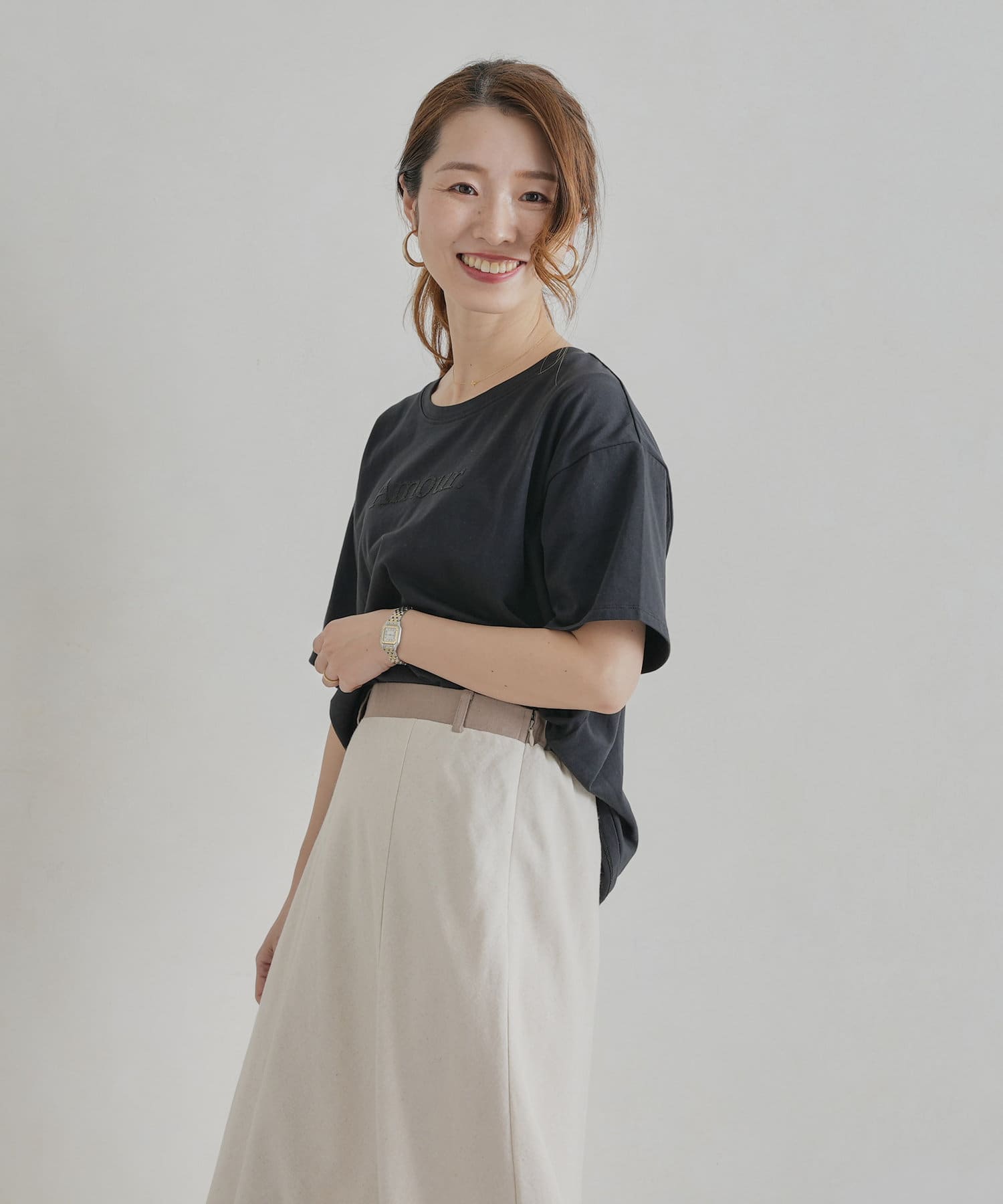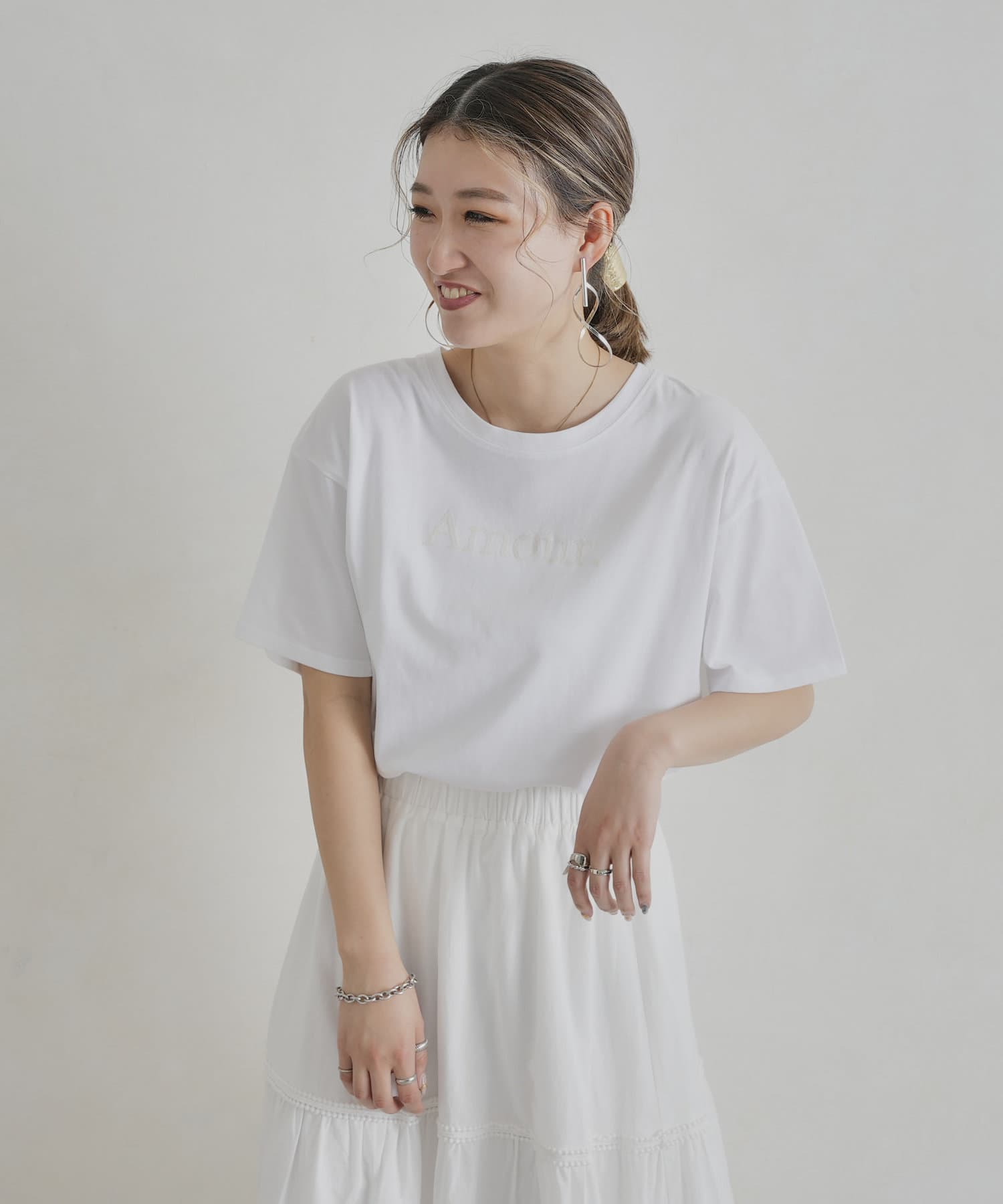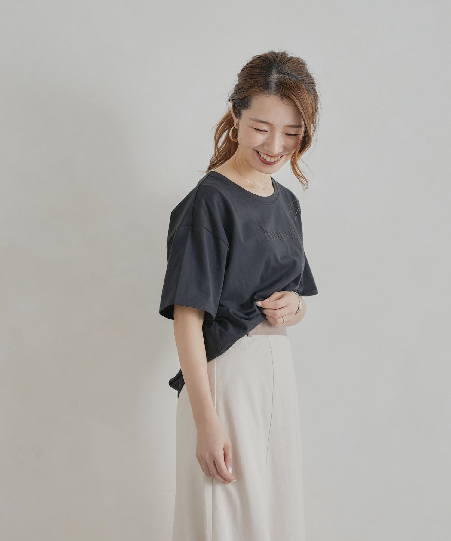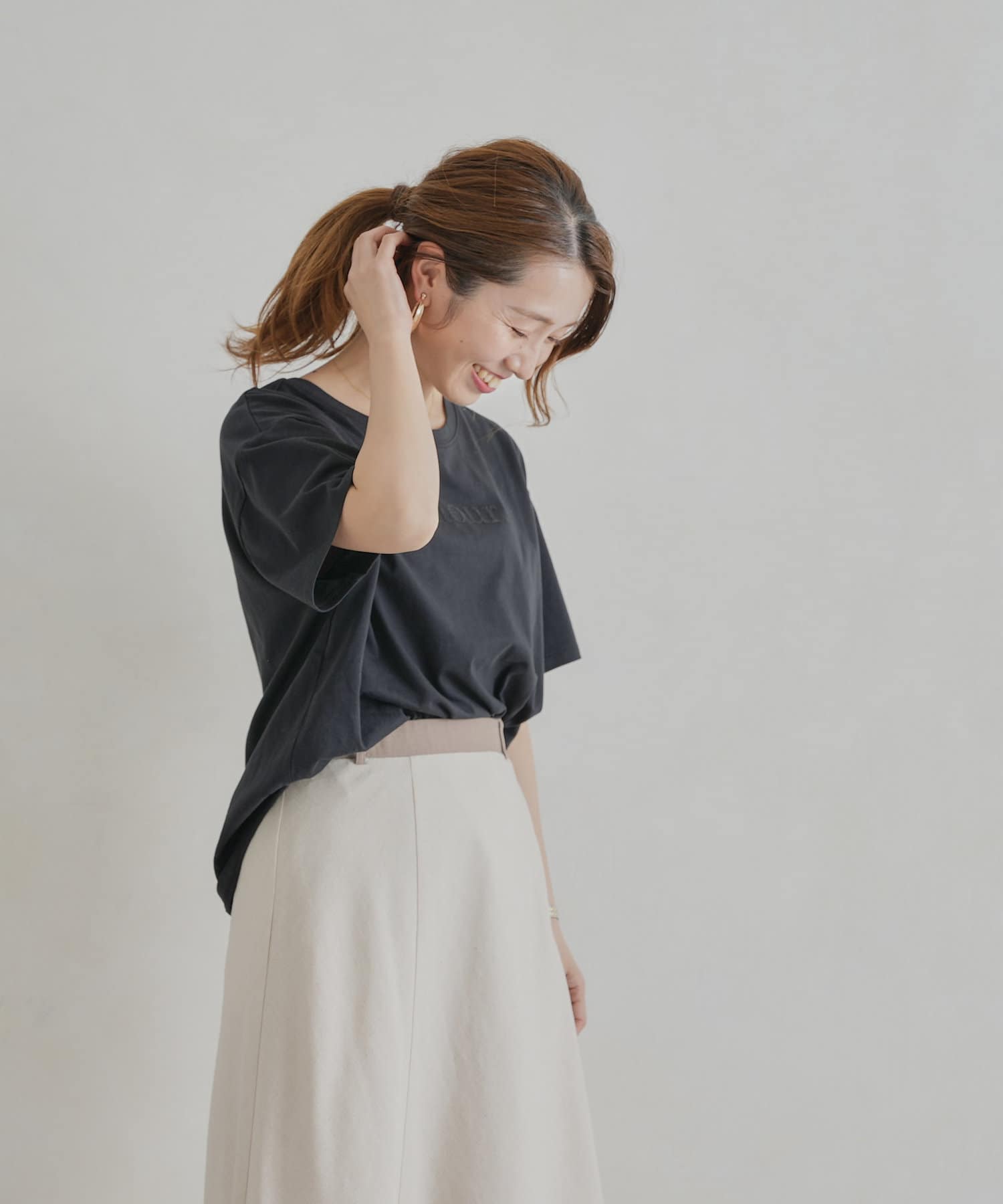 オトナ可愛く着まわせるシンプルロゴT