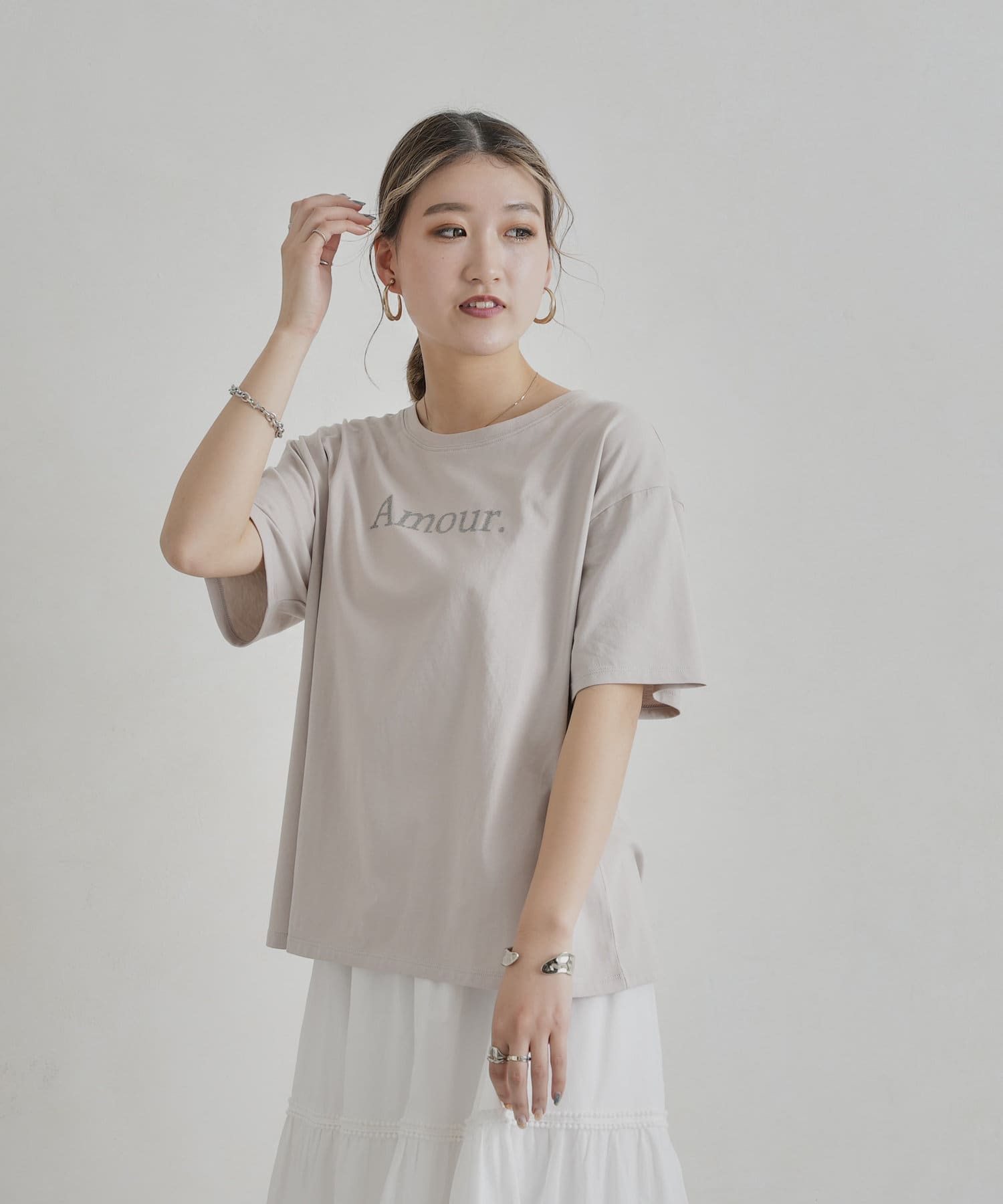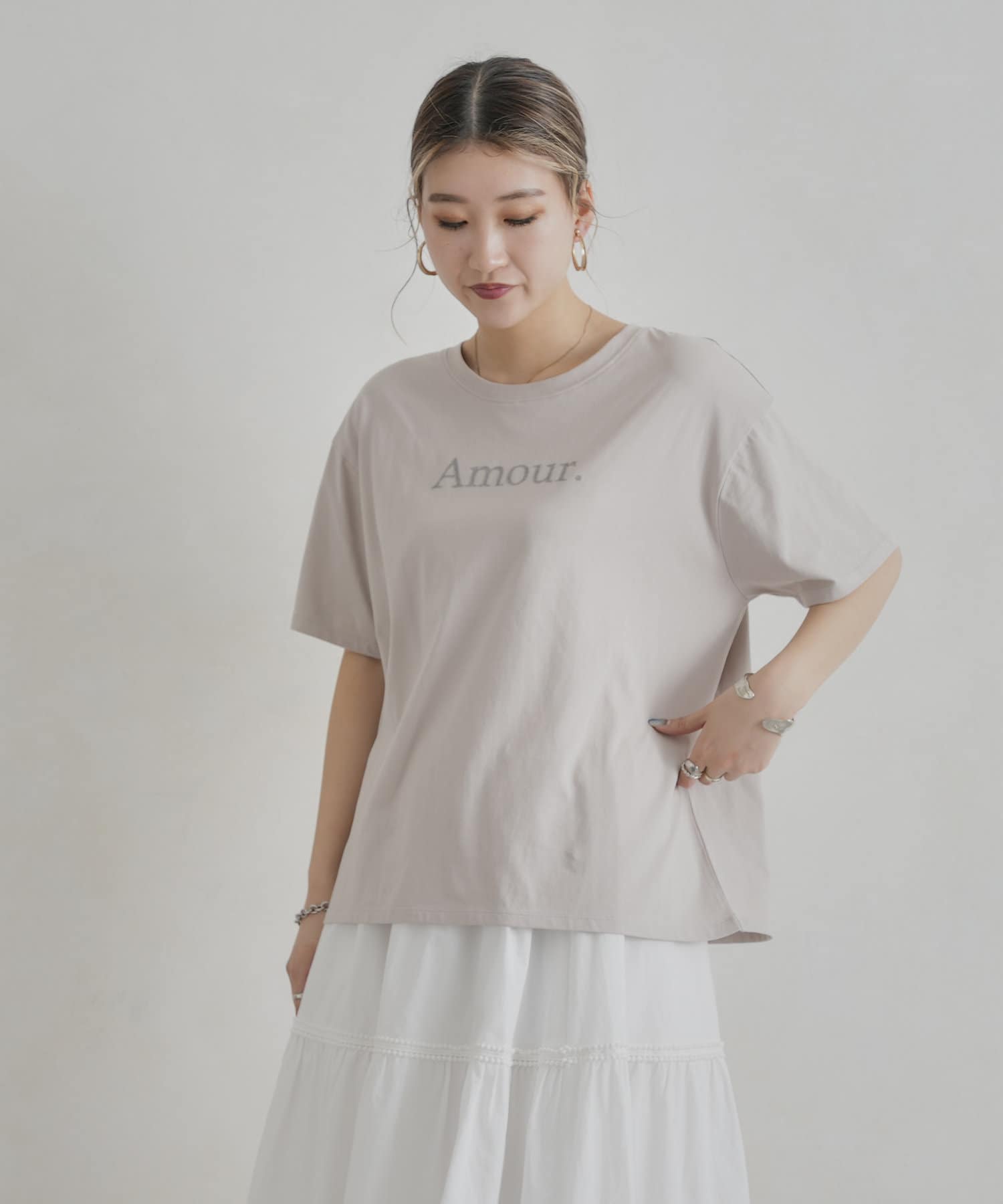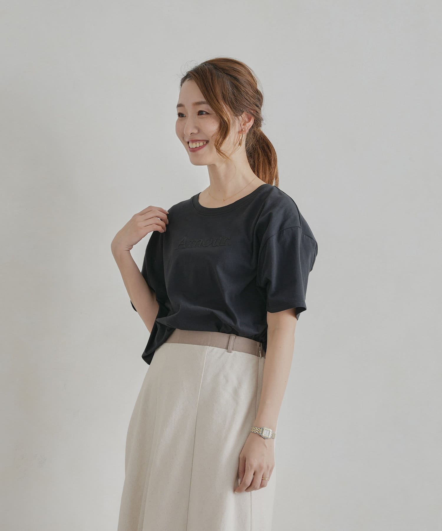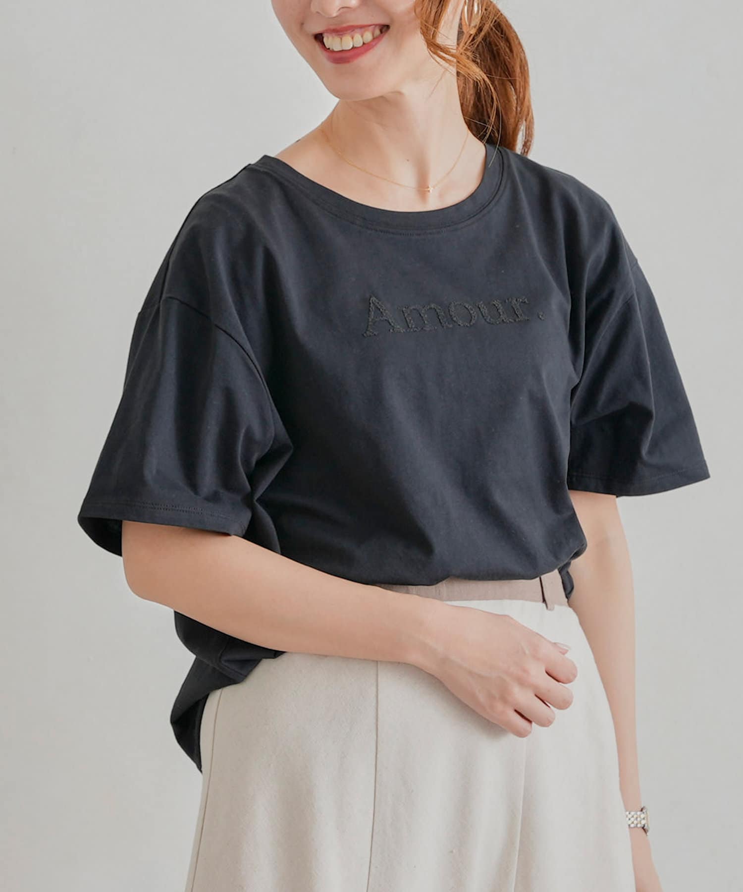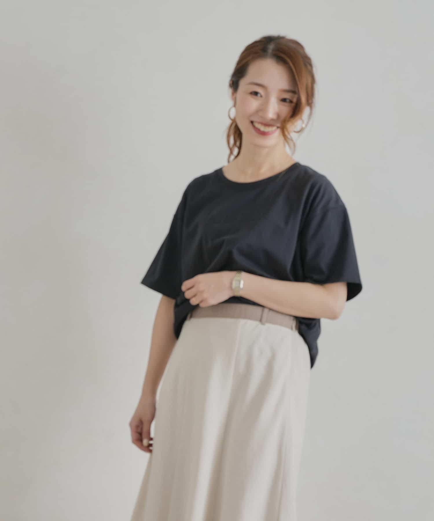オトナ可愛く着まわせるシンプルロゴT