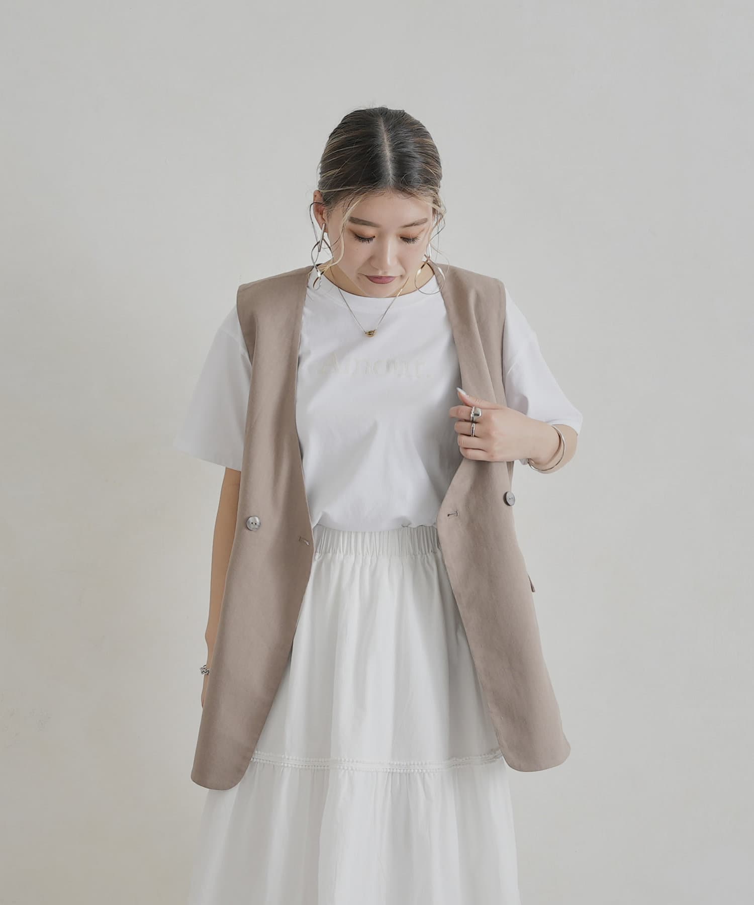 シンプルなのでジャンスカやジレとのレイヤードにもぴったりで、幅広いコーデにハマります。