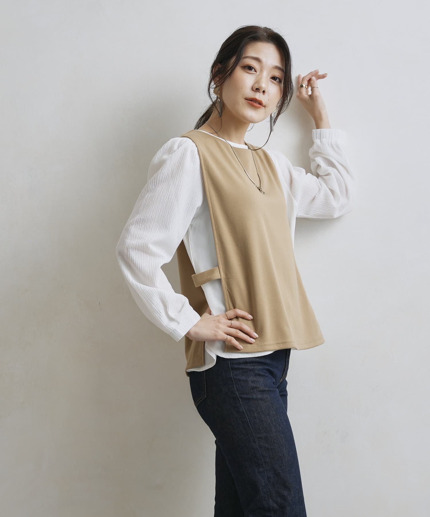 ・ブラウスとベストは単体使いもしやすいシンプルデザインです。